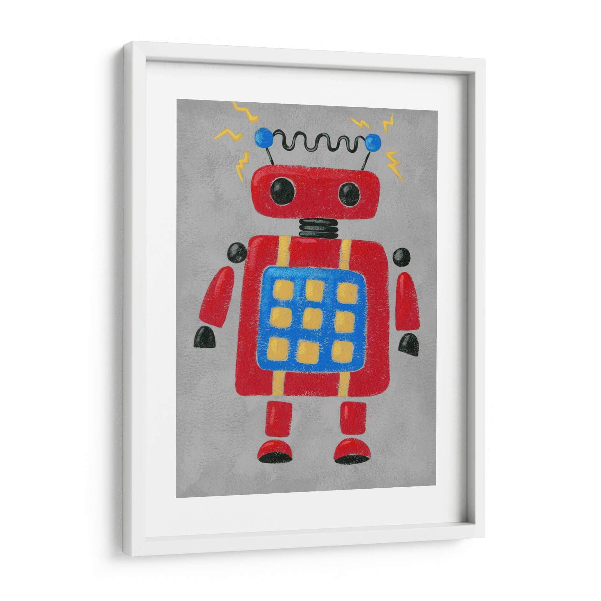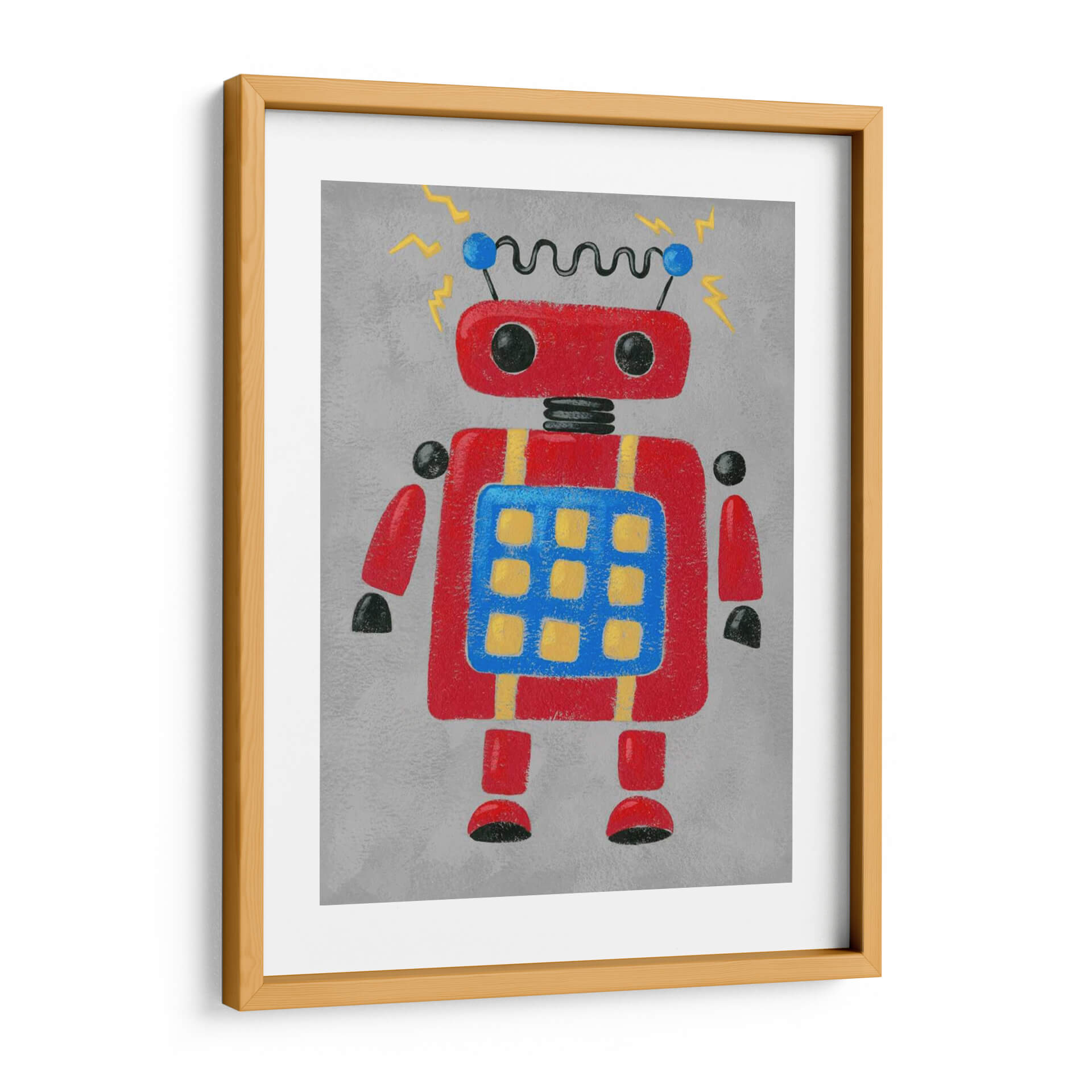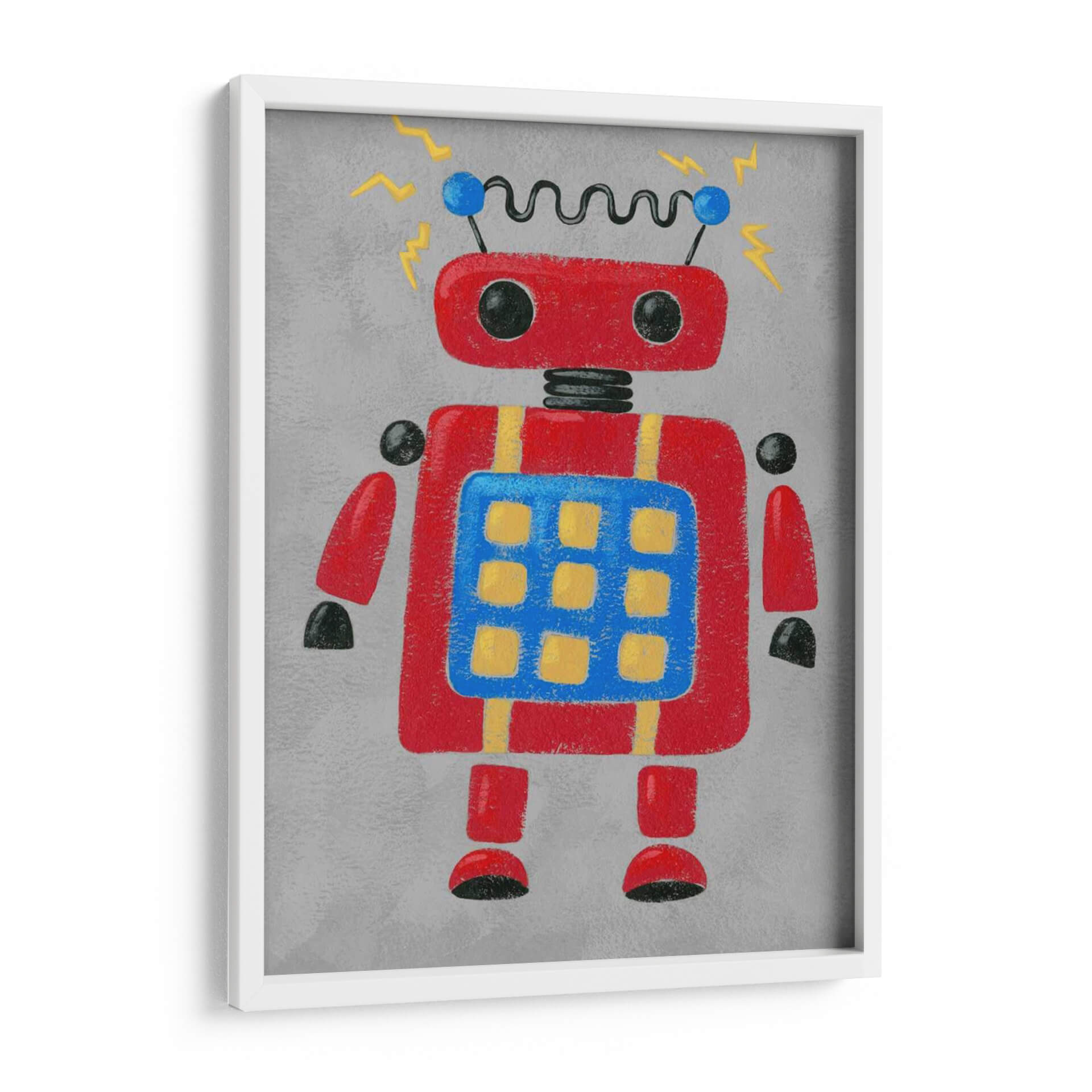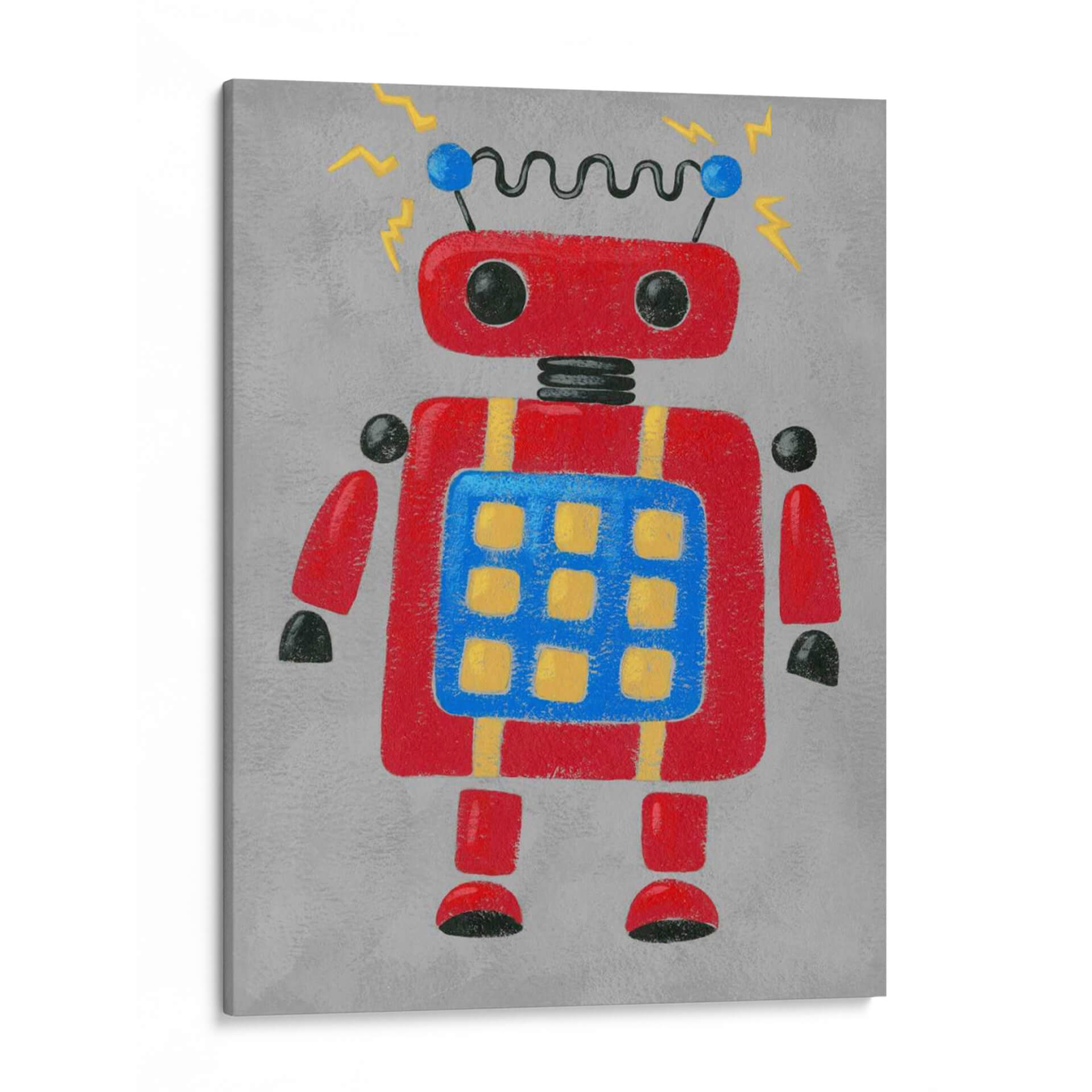 Infundir un toque de fantasía y nostalgia en su hogar con el cautivador cuadro decorativo "Llévame A Tu Líder Iv" de Chariklia Zarris. Esta vibrante obra de arte presenta un robot de estilo retro, con un cuerpo rojo audaz adornado con un panel frontal azul y amarillo, que evoca imágenes de la era dorada de la ciencia ficción y los juguetes clásicos. La composición está dominada por una paleta de colores contrastantes: el rojo enérgico del robot se equilibra con el azul y el amarillo juguetones de su panel central, todo ello sobre un fondo texturizado de color gris cemento. Pequeños relámpagos amarillos y antenas onduladas añaden un toque de dinamismo y un toque de humor, sugiriendo la personalidad juguetona del robot. El estilo general es deliberadamente simplista y encantador, reminiscente de las ilustraciones infantiles o el arte pop, lo que lo hace accesible y atractivo. Este cuadro decorativo es ideal para infundir personalidad en una sala de juegos, una oficina en casa con temática retro o incluso una guardería. Es una pieza que invita a la conversación y despierta la imaginación, perfecta para quienes buscan añadir un elemento de carácter único y divertido a su espacio.