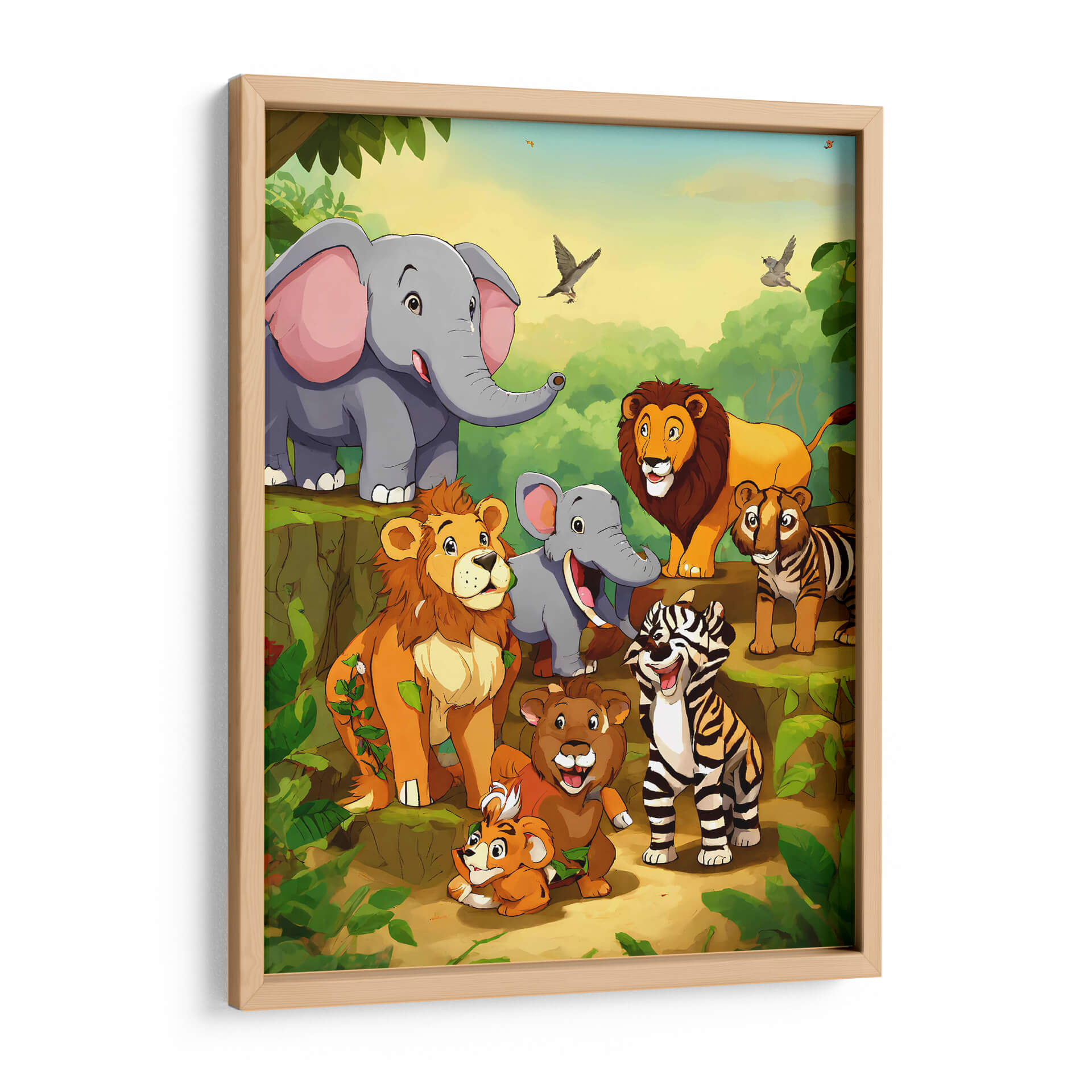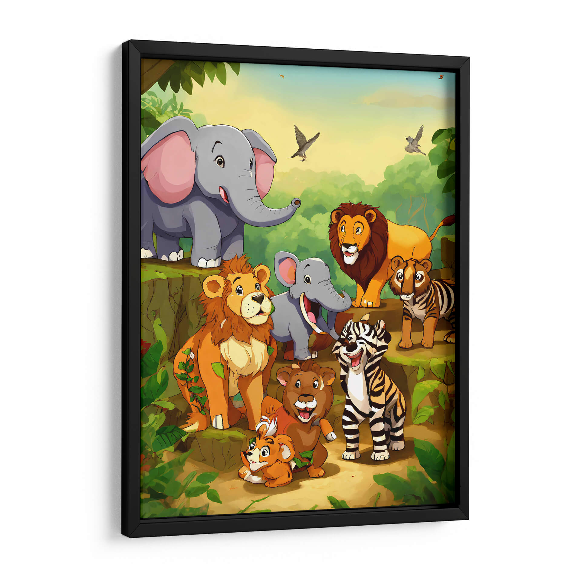 Sumérgete en la exuberante vitalidad de la selva con "Animales en la Selva", una obra de arte digital que captura la majestuosidad de la vida salvaje en un estilo vibrante y cautivador. Esta pieza presenta una encantadora colección de animales, incluyendo leones juguetones, elefantes amigables y un enérgico tigre, todos reunidos en un entorno selvático frondoso. Los colores cálidos y alegres, con predominio de verdes intensos y toques de amarillo y naranja, crean una atmósfera de alegría y armonía. La composición, llena de vida y movimiento, evoca una sensación de aventura y conexión con la naturaleza. Ideal para espacios infantiles, habitaciones temáticas o cualquier lugar que busque un toque de inocencia y exuberancia, este cuadro decorativo transformará tu hogar u oficina en un oasis de fantasía y color. La detallada ilustración digital de DEA Digital Esoteric Art invita a la contemplación y a soñar con las maravillas del reino animal, convirtiéndose en un punto focal lleno de personalidad y encanto para tu decoración.