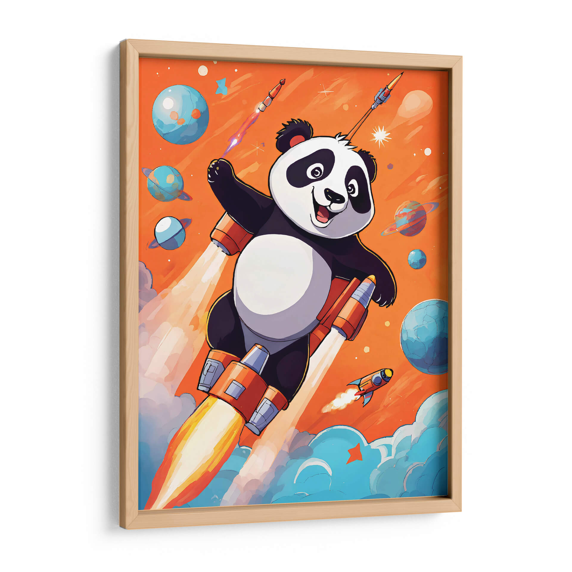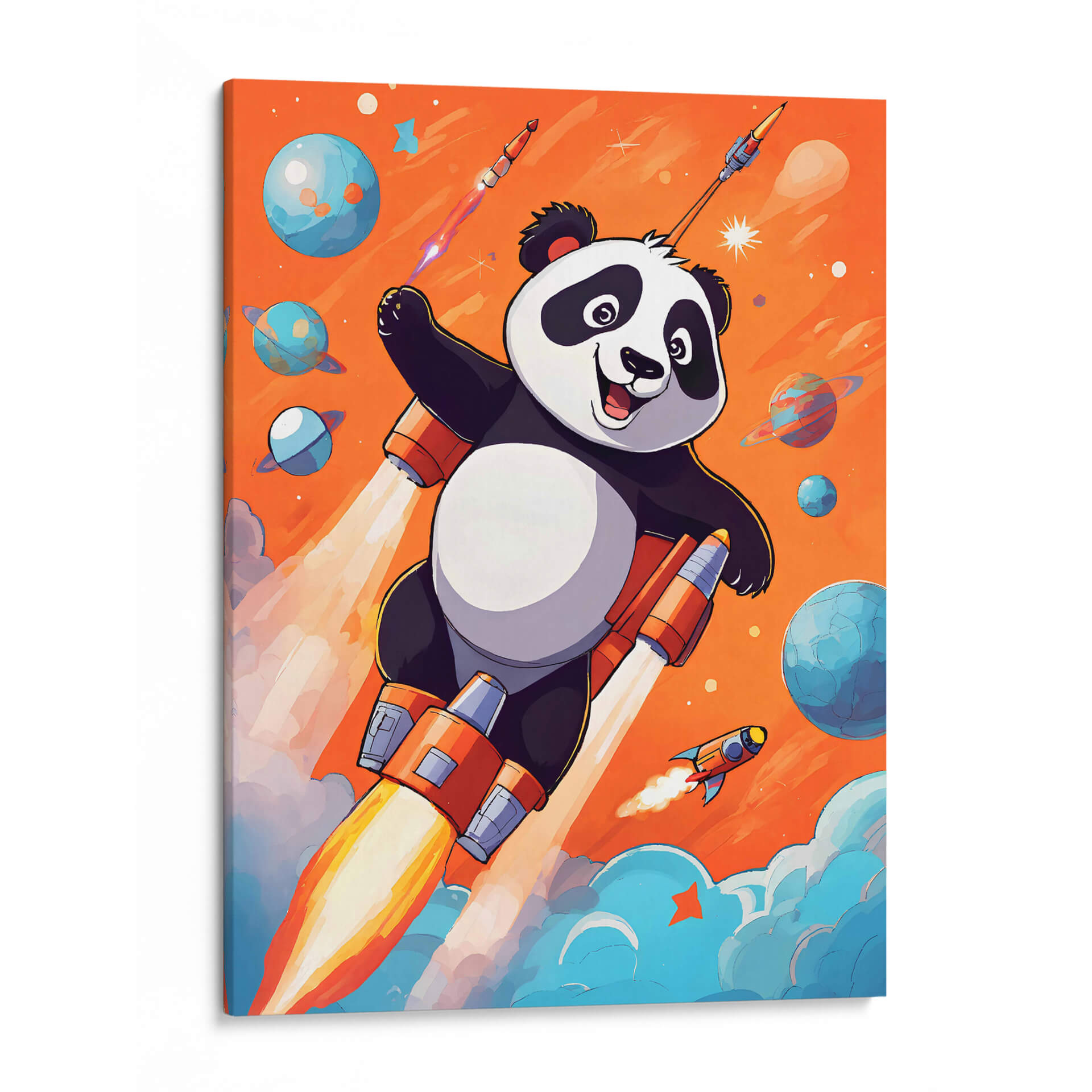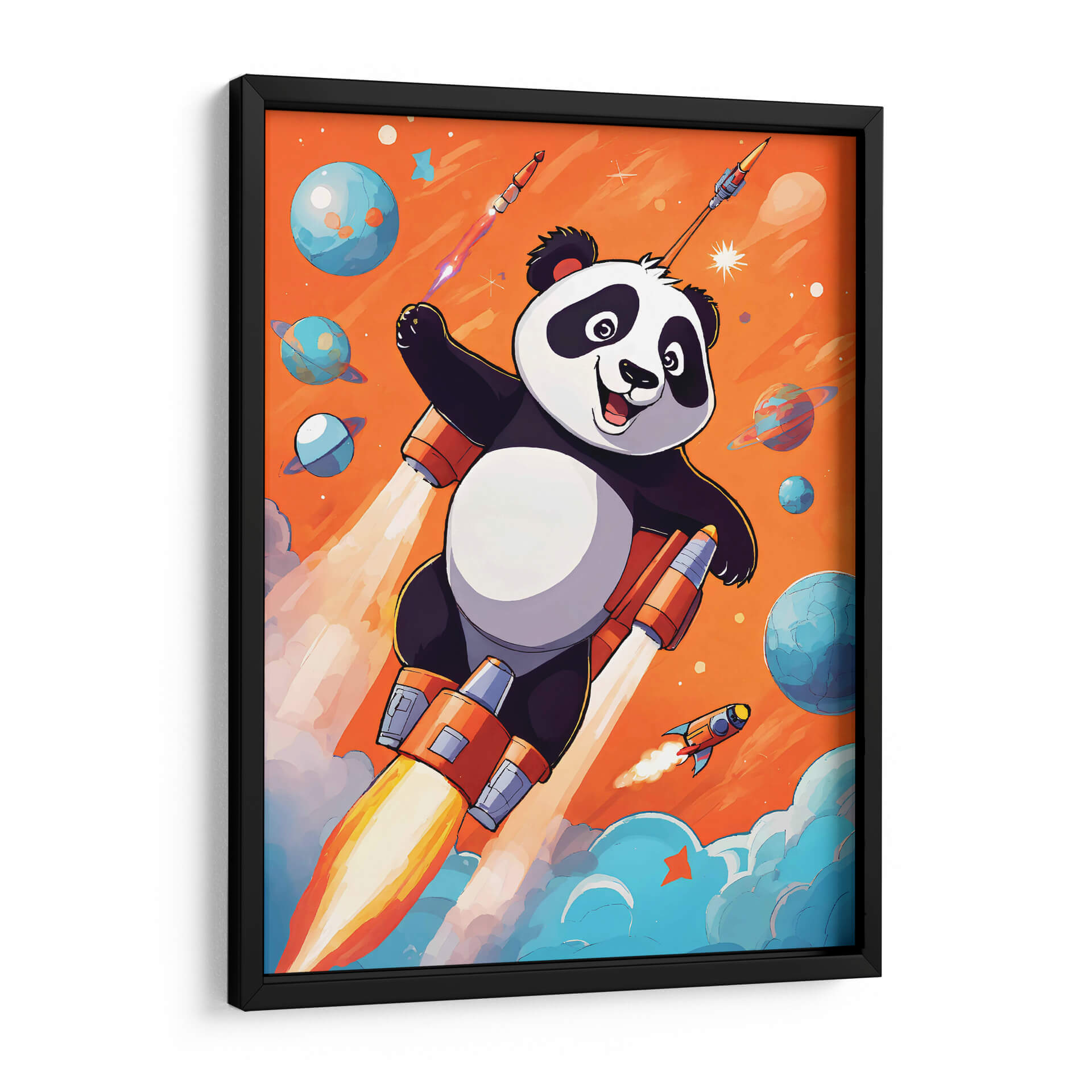 Embárcate en una aventura cósmica con nuestro cuadro decorativo 'Astropanda', una obra vibrante y llena de imaginación del artista DEA Digital Esoteric Art. Esta pieza captura la esencia de la exploración y la alegría, presentando a un tierno panda viajando a través del espacio en un cohete futurista. Los colores cálidos y enérgicos del fondo naranja se contrastan maravillosamente con los tonos fríos de los planetas y las nubes celestiales, creando una atmósfera lúdica y soñadora. El estilo de ilustración digital aporta un toque moderno y fresco, perfecto para inyectar personalidad y diversión a cualquier habitación. El panda, con su expresión optimista, irradia una sensación de aventura y descubrimiento, invitando a la contemplación de lo ilimitado. Ideal para la habitación de un niño, una sala de juegos o cualquier espacio que necesite un toque de fantasía y color. Este cuadro decorativo no solo es una pieza de arte, sino una ventana a un universo de posibilidades, fomentando la imaginación y la curiosidad. Añade un elemento único y cautivador a tu decoración con 'Astropanda', una obra que celebra la audacia y la alegría de explorar lo desconocido, convirtiendo cualquier pared en un punto de partida para nuevas aventuras.