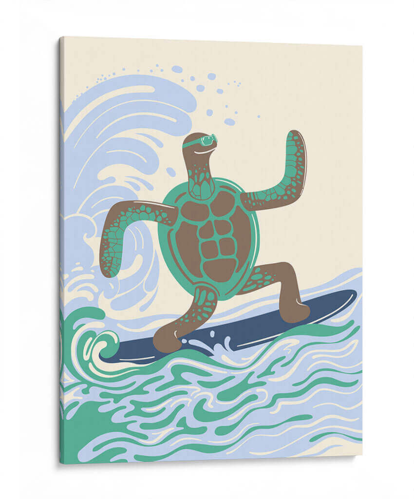Sumérgete en la alegría y la aventura con "La Tortuga Surfista" de Najesi, una obra de arte vibrante y llena de personalidad que captura la esencia del verano y la pasión por el mar. Esta pieza, con su estilo ilustrativo y colores pastel, presenta a una simpática tortuga con gafas de sol deslizándose con maestría sobre una tabla de surf, rodeada de olas estilizadas en tonos azules y verdes. La paleta de colores suaves y la composición dinámica transmiten una sensación de libertad, diversión y conexión con la naturaleza. Perfecta para añadir un toque de optimismo y estilo desenfadado a cualquier espacio, desde una sala de estar hasta una habitación infantil o un espacio de trabajo creativo. "La Tortuga Surfista" es más que una simple decoración; es una invitación a disfrutar de los pequeños placeres de la vida y a dejarse llevar por la corriente. Ideal para amantes de la vida marina, el surf o simplemente para quienes buscan una pieza de arte alegre y distintiva que ilumine su hogar u oficina, aportando una atmósfera de vacaciones perpetuas y buen rollo.