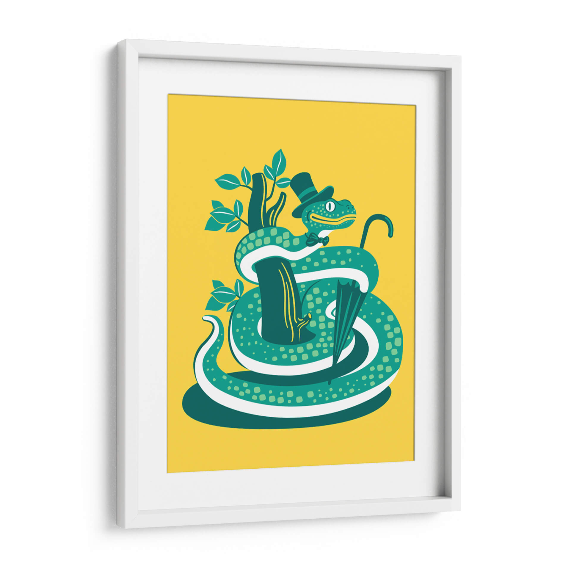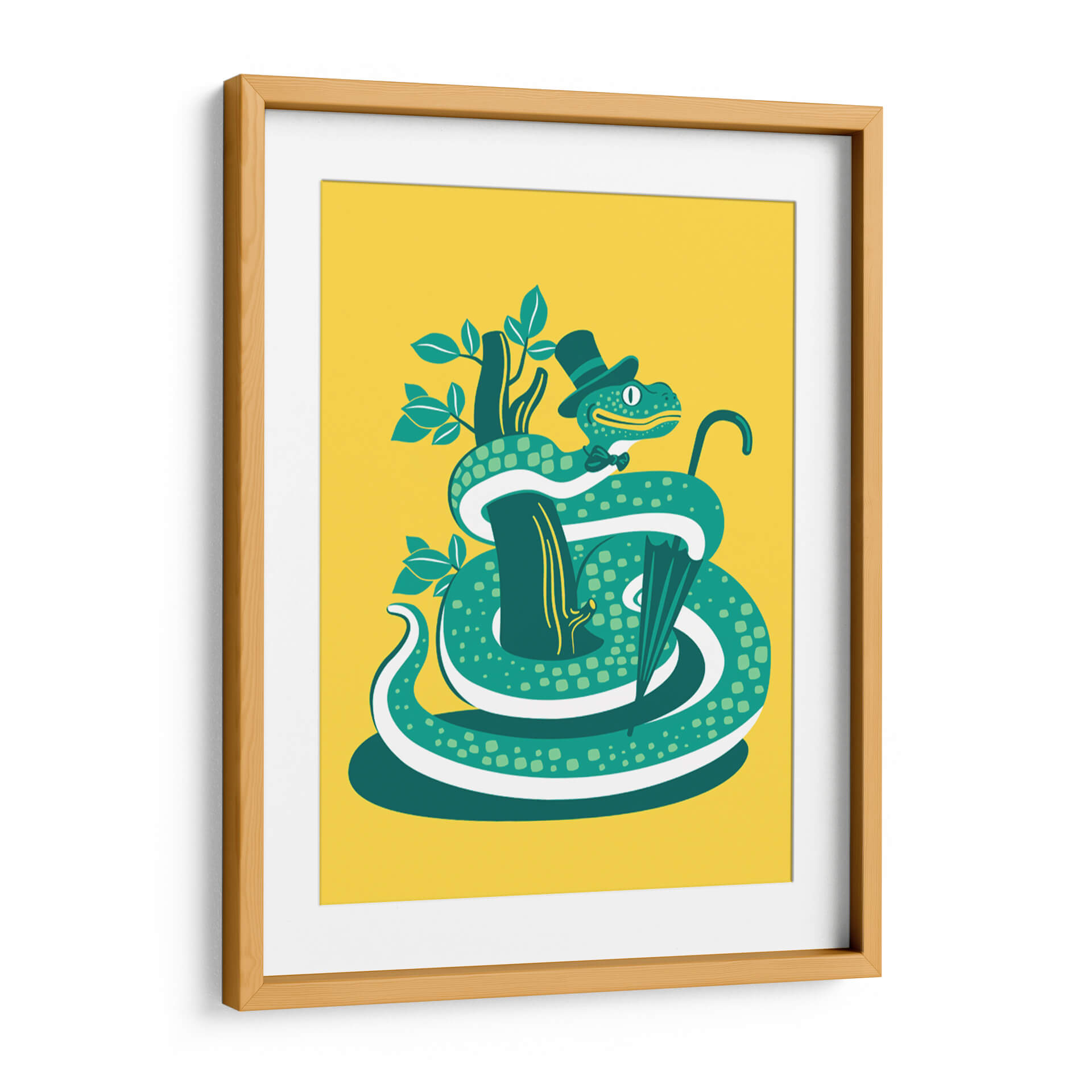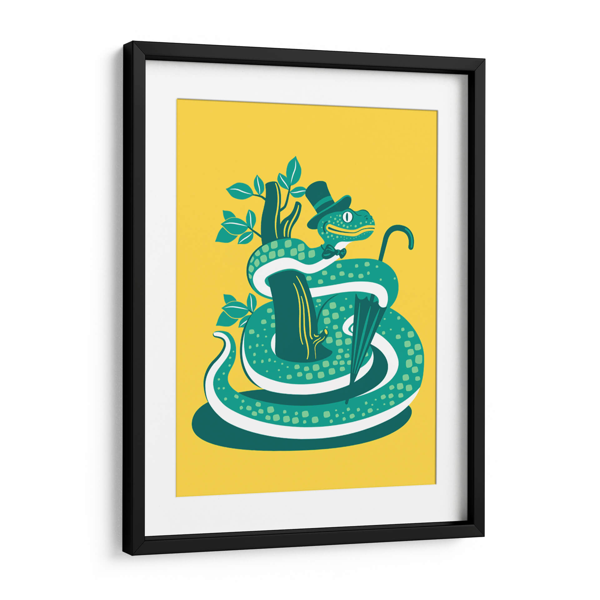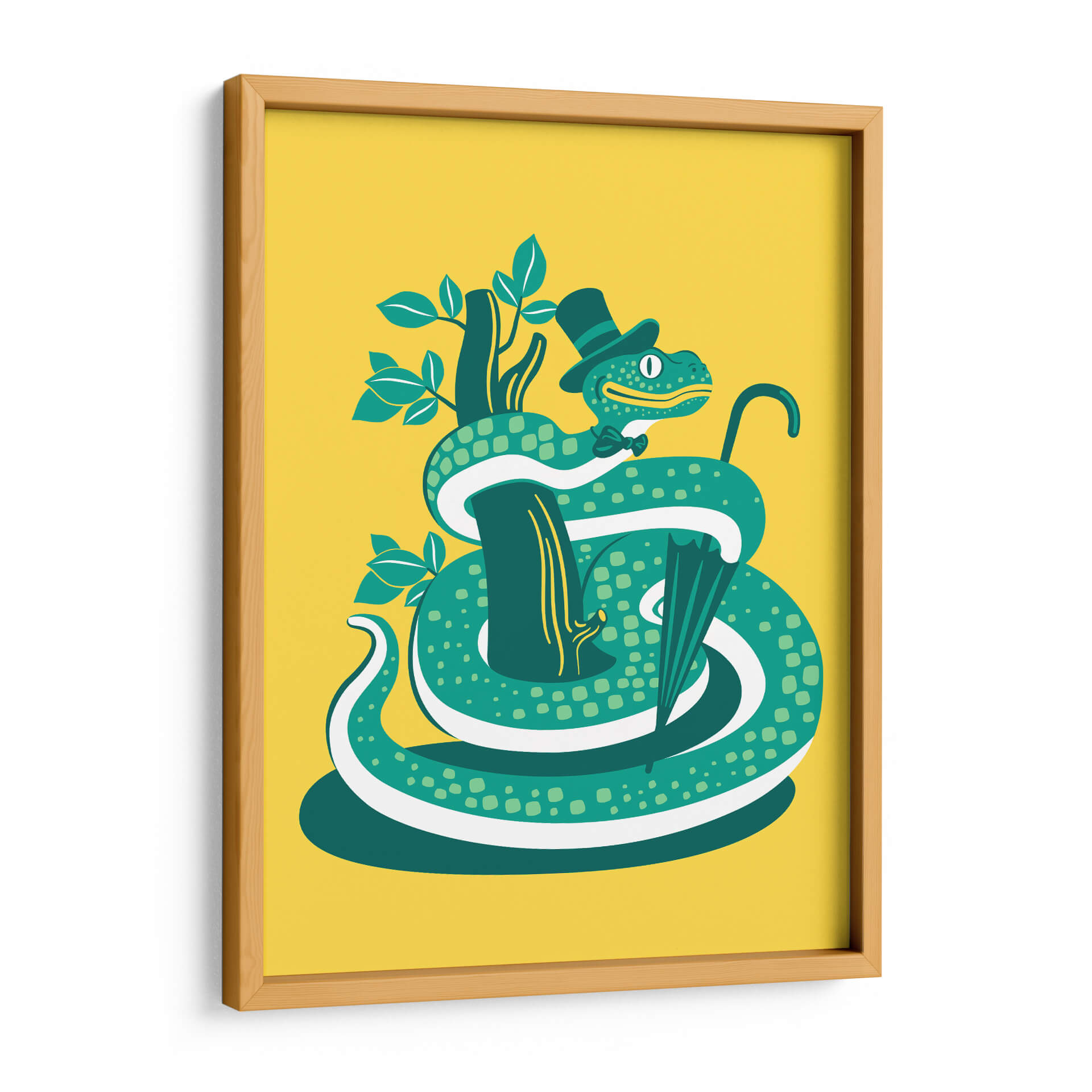 Adéntrate en el mundo whimsical de "La verde serpiente de gala", una obra maestra contemporánea del artista Najesi que irradia personalidad y estilo. Esta cautivadora pieza presenta una serpiente de un verde vibrante, enrollada con elegancia alrededor de un tronco de árbol estilizado. Lo que distingue a esta obra es el toque de sofisticación que aporta la serpiente al lucir un sombrero de copa y un pajarita, elementos que junto a un paraguas cerrado, sugieren un aire de misterio y humor. El fondo amarillo brillante crea un contraste audaz y alegre, haciendo que los tonos verdes y oscuros de la serpiente y el árbol resalten con una energía palpable. El estilo gráfico y las líneas limpias de Najesi aportan una modernidad distintiva, mientras que la composición centrada en la figura principal asegura un impacto visual inmediato. Esta obra es ideal para espacios que buscan un toque de originalidad y conversación, como una sala de estar moderna, un estudio o incluso una oficina creativa. "La verde serpiente de gala" no es solo una decoración de pared, es una declaración de intenciones, una pieza que inyectará alegría y un sentido del humor sofisticado a cualquier ambiente, invitando a la reflexión y a la sonrisa. Descubre el encanto único de este lienzo que celebra la audacia y la fantasía.