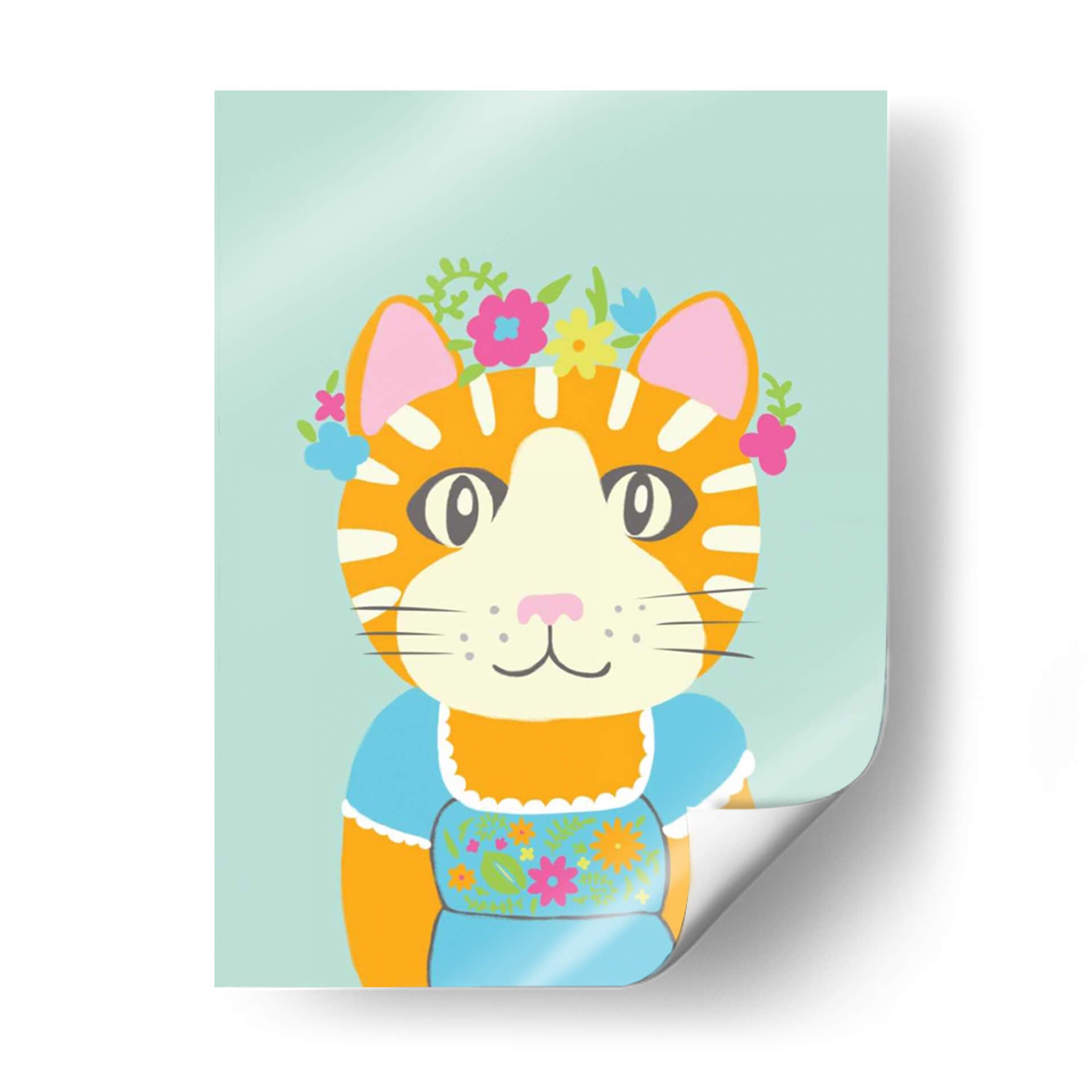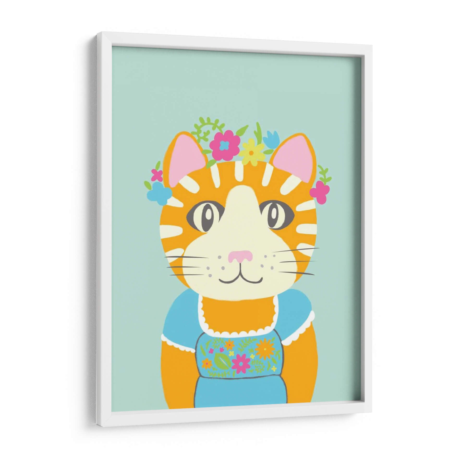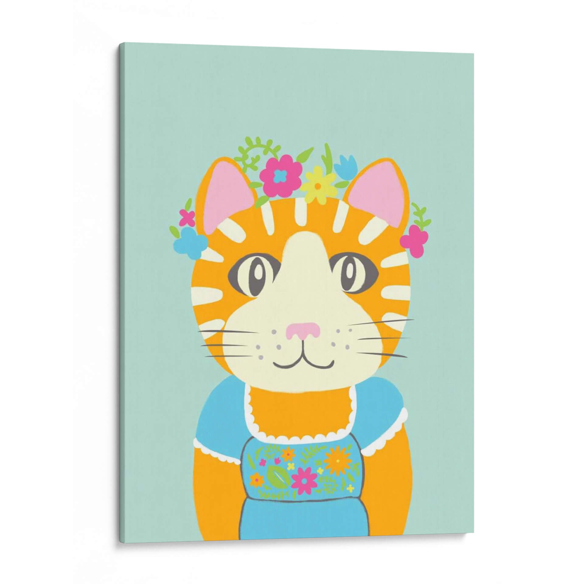 Embellece tu espacio con "Animales De Lujo Ii", una obra de arte vibrante y encantadora del artista Chariklia Zarris. Este cuadro decorativo presenta un adorable gato atigrado adornado con una corona de flores de colores y vistiendo un traje tradicional azul, capturando una esencia juguetona y elegante. La paleta de colores, dominada por tonos cálidos naranjas, el suave azul del fondo y los toques de rosa, verde y amarillo en las flores, crea una atmósfera alegre y acogedora. El estilo de la ilustración es audaz y moderno, con líneas definidas y formas simplificadas que resaltan la personalidad del personaje. La composición se centra en el rostro expresivo del gato, invitando a la conexión y a una sonrisa. "Animales De Lujo Ii" es ideal para añadir un toque de color y fantasía a cualquier habitación, desde una sala de estar contemporánea hasta un dormitorio infantil o una oficina que necesite un respiro de optimismo. Es una pieza perfecta para los amantes de los gatos y para quienes buscan un arte de pared que irradie felicidad y un encanto único, transformando cualquier rincón en un espacio lleno de vida y estilo.
