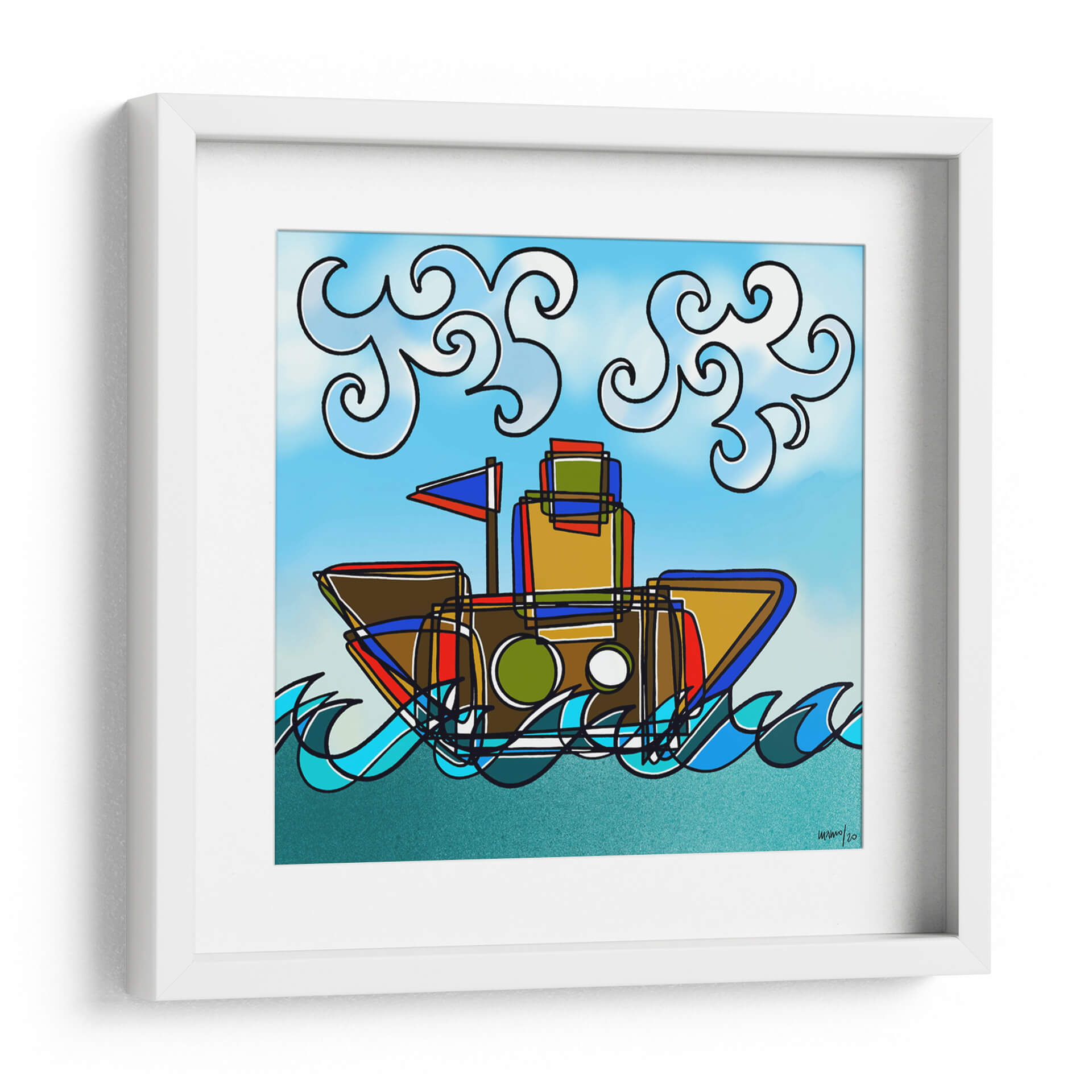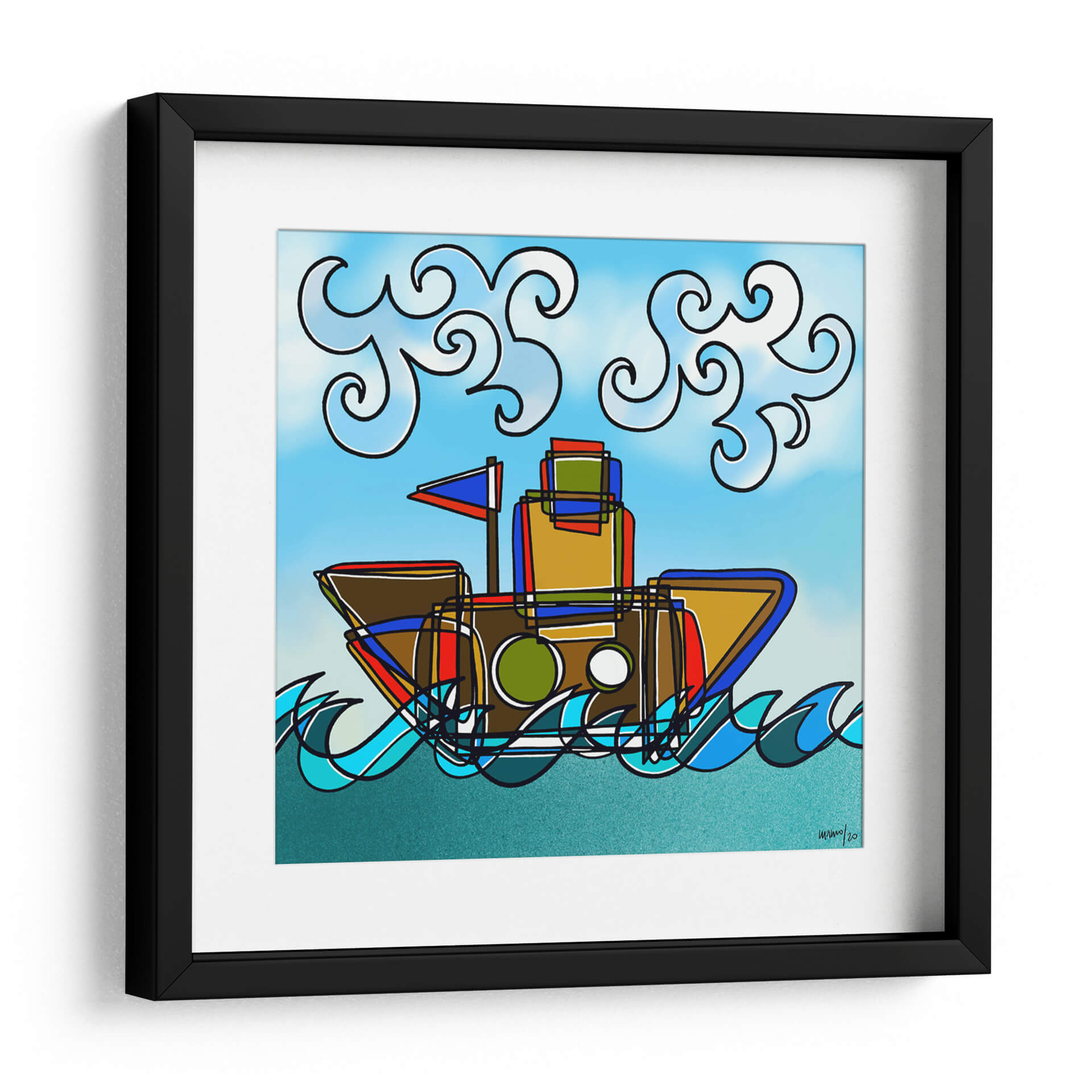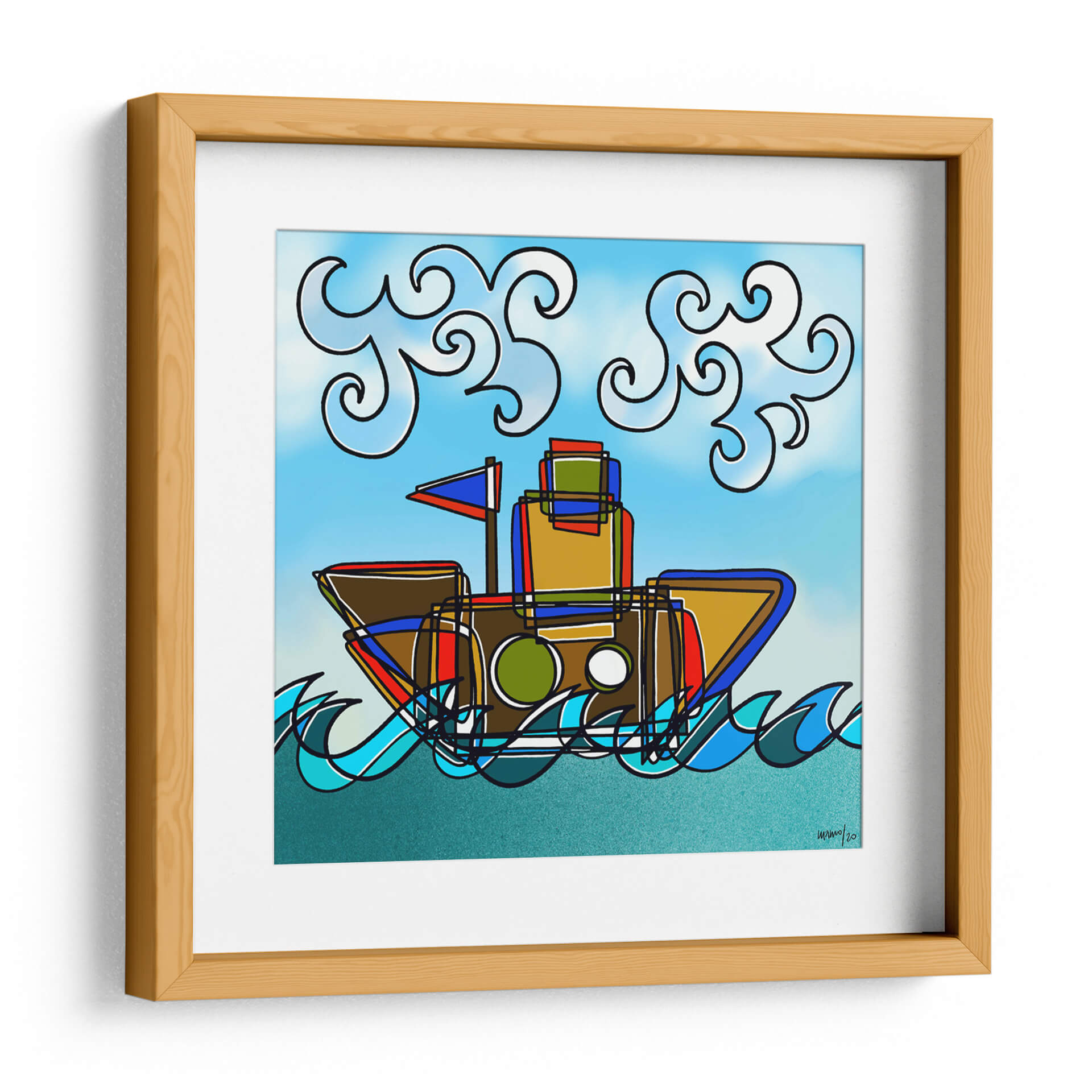 Sumérgete en la serenidad del mar con 'Barco', una obra de arte contemporáneo de Gina Villalobos. Este cautivador cuadro decorativo presenta un diseño estilizado y geométrico de un barco navegando sobre olas azules vibrantes. La paleta de colores, que combina tonos cálidos y terrosos con acentos de azul brillante y rojo, crea una atmósfera de movimiento y vitalidad. Las líneas audaces y la composición simplificada evocan un estilo moderno y juguetón, ideal para añadir un toque de personalidad a cualquier espacio. La obra transmite una sensación de aventura y tranquilidad, perfecta para inspirar tus mañanas o crear un ambiente relajante en tu hogar u oficina. Este cuadro abstracto es una pieza versátil que puede complementar una decoración minimalista, escandinava o bohemia, aportando un punto focal único. Descubre la magia de las formas y colores con esta pieza que invita a la contemplación y al ensueño. Es una excelente opción para quienes buscan arte para sala, decoración de dormitorios o un detalle especial para espacios de trabajo.