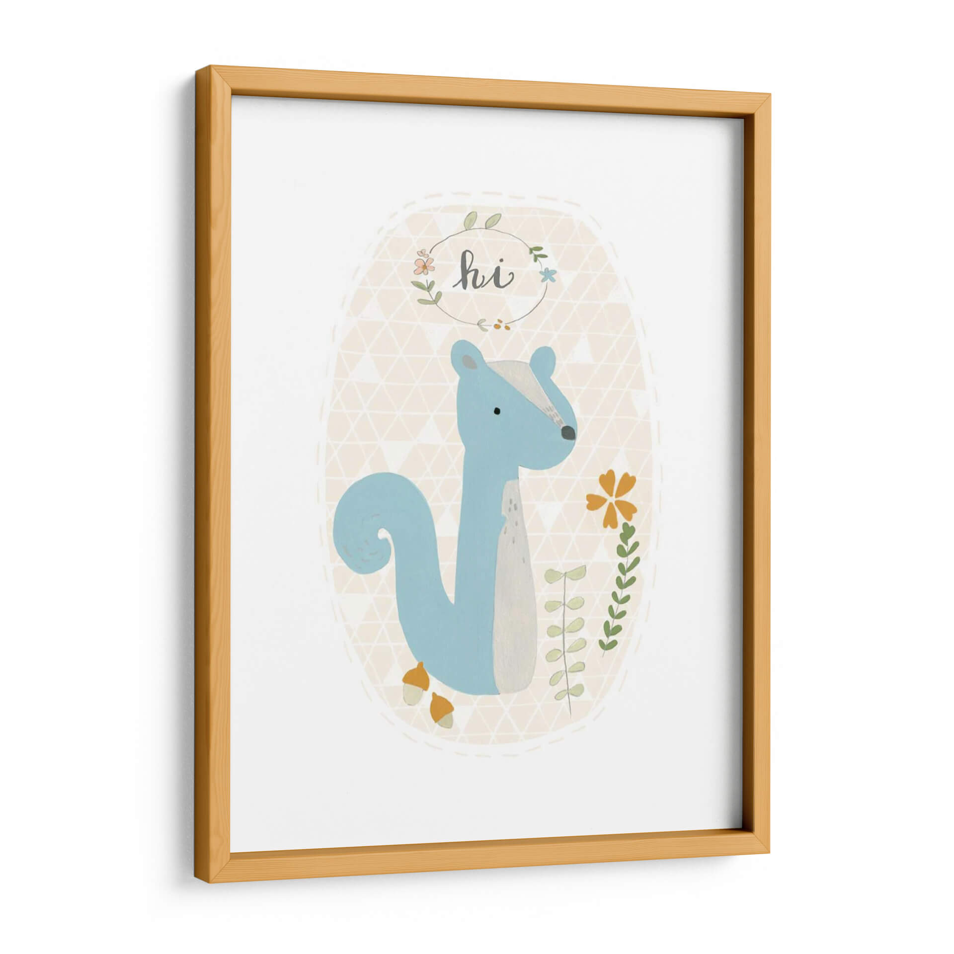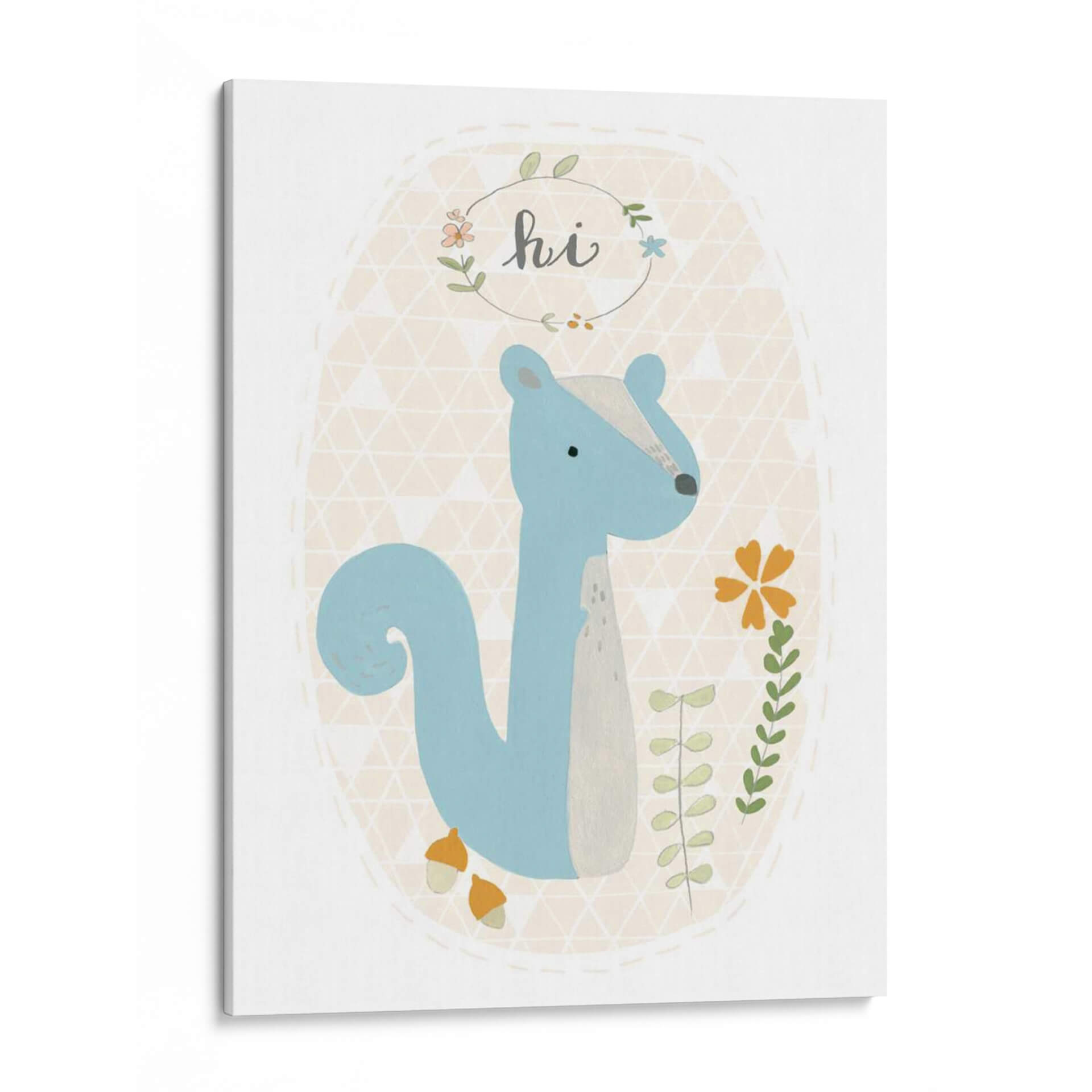 Sumérgete en el encanto singular de "Bosque Peculiar Iv", una obra de arte de June Erica Vess que captura la inocencia y la fantasía. Este cuadro decorativo presenta una adorable figura de animal en tonos pastel, adornado con un delicado marco de flores y hojas que deletrea un amigable "hi". La paleta de colores suaves, dominada por azules celestes, cremas y toques de naranja y verde, crea una atmósfera de calma y alegría, perfecta para espacios infantiles o para añadir un toque de dulzura a cualquier habitación. El fondo, con un sutil patrón geométrico de triángulos en tonos arena, aporta una textura visual interesante sin sobrecargar la composición. El estilo ilustrativo y el diseño lineal del animal transmiten una sensación de ternura y calidez, ideal para crear un ambiente acogedor y lleno de vida. Este cuadro es una invitación a la imaginación, un recordatorio de la belleza en lo simple y lo peculiar. Ideal para habitaciones infantiles, salas de juego o como un detalle encantador en un estudio o dormitorio que busca transmitir serenidad y un espíritu juguetón. "Bosque Peculiar Iv" es más que una decoración; es una pieza que evoca sonrisas y celebra la singularidad.