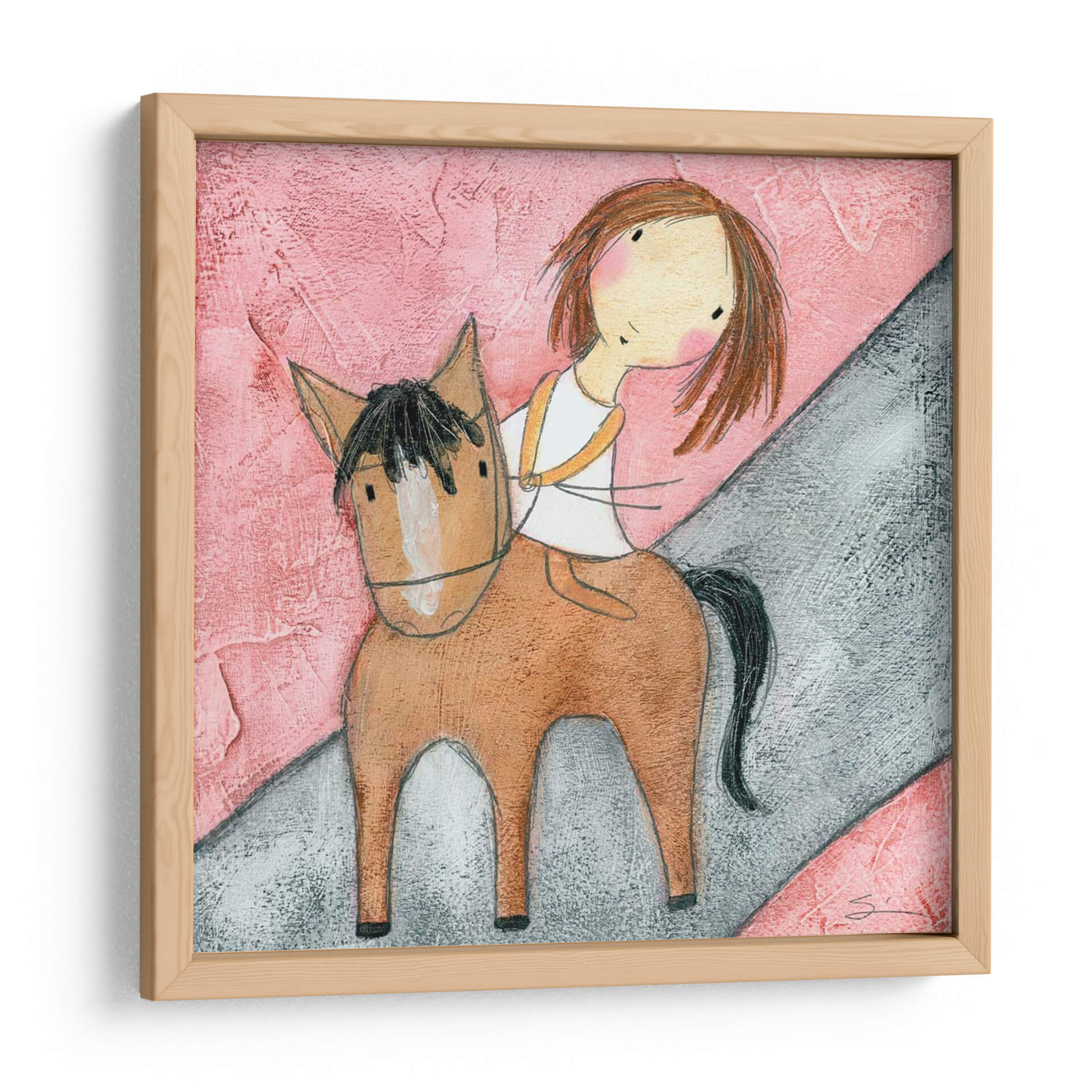 Sumérgete en un mundo de fantasía y dulzura con nuestro cuadro decorativo 'Caballo Rosado' de Carla Sonheim. Esta encantadora obra de arte captura la inocencia y la alegría a través de la figura estilizada de una niña montando un caballo con un toque de color inesperado. La paleta de colores, dominada por un rosa texturizado y contrastes grises, crea una atmósfera etérea y soñadora, perfecta para añadir un punto de calidez y originalidad a cualquier espacio. La composición, con sus líneas suaves y la expresión serena de los personajes, invita a la contemplación y evoca sentimientos de nostalgia y fantasía infantil. Ideal para dormitorios, salas de estar o incluso un rincón de lectura, este cuadro decorativo es una pieza única que aportará carácter y un toque artístico distintivo. La técnica mixta y el estilo naïf o infantil de Carla Sonheim confieren a la obra una autenticidad y un encanto que trascienden las tendencias, convirtiéndola en una adición atemporal a tu decoración. Transforma tu hogar en un refugio de imaginación y color con 'Caballo Rosado', un lienzo que cuenta historias y despierta emociones.