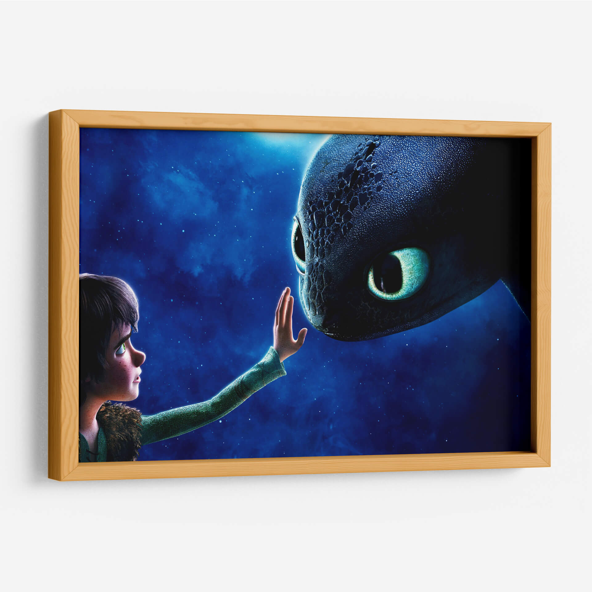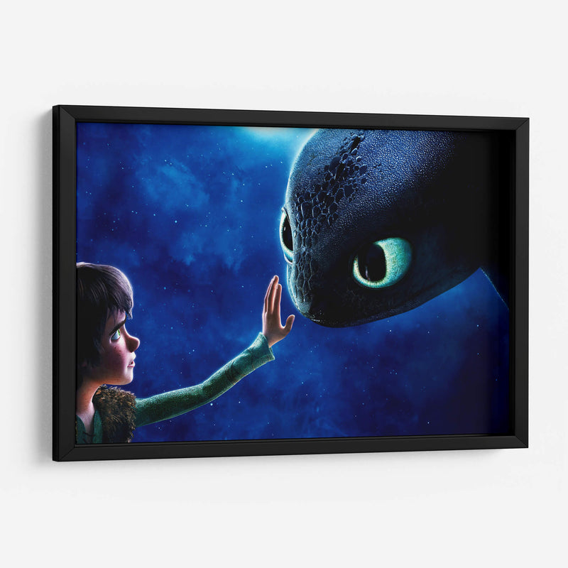 Sumérgete en un mundo de fantasía y amistad con este cautivador cuadro decorativo 'Chimuelo'. La obra maestra visual captura un momento tierno e icónico entre un joven y una criatura mística, evocando sentimientos de aventura, lealtad y descubrimiento. El vibrante fondo estrellado, teñido de profundos azules y salpicado de diminutas luces celestiales, crea una atmósfera etérea y mágica. Los intensos ojos de la criatura, llenos de curiosidad y una inteligencia sorprendente, contrastan con la inocencia y la valentía del joven que extiende su mano. La paleta de colores, dominada por los azules intensos y los tonos tierra del atuendo del personaje, junto con el brillante reflejo en los ojos, aporta profundidad y realismo a la escena. Este cuadro decorativo es perfecto para añadir un toque de encanto y narrativa a cualquier habitación, desde una sala de estar moderna hasta un dormitorio infantil o una sala de juegos. Su composición dinámica y su emotivo tema lo convierten en un punto focal ideal, inspirando conversaciones y transportando a los espectadores a un reino de imaginación. Ideal para amantes de la animación y del arte que celebra los lazos inesperados y la magia de lo desconocido. Añade esta pieza única a tu colección y deja que la fantasía ilumine tu hogar.