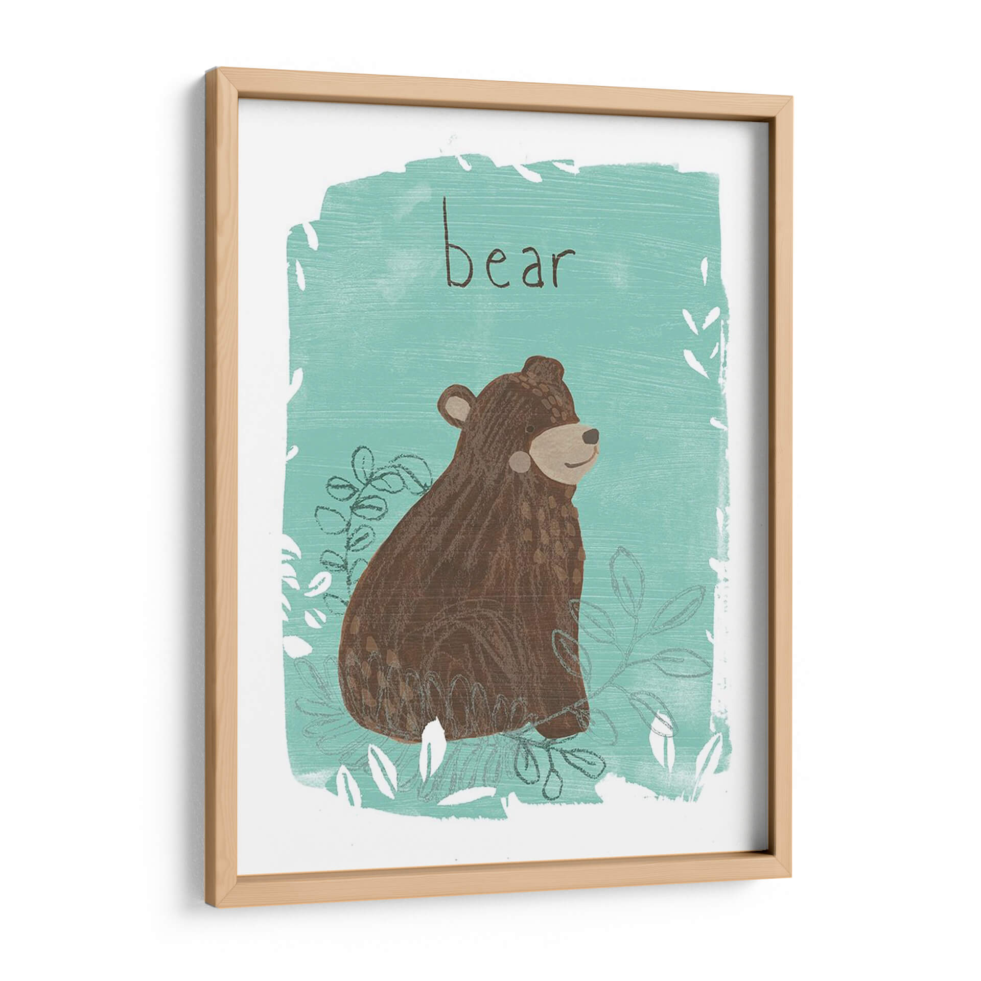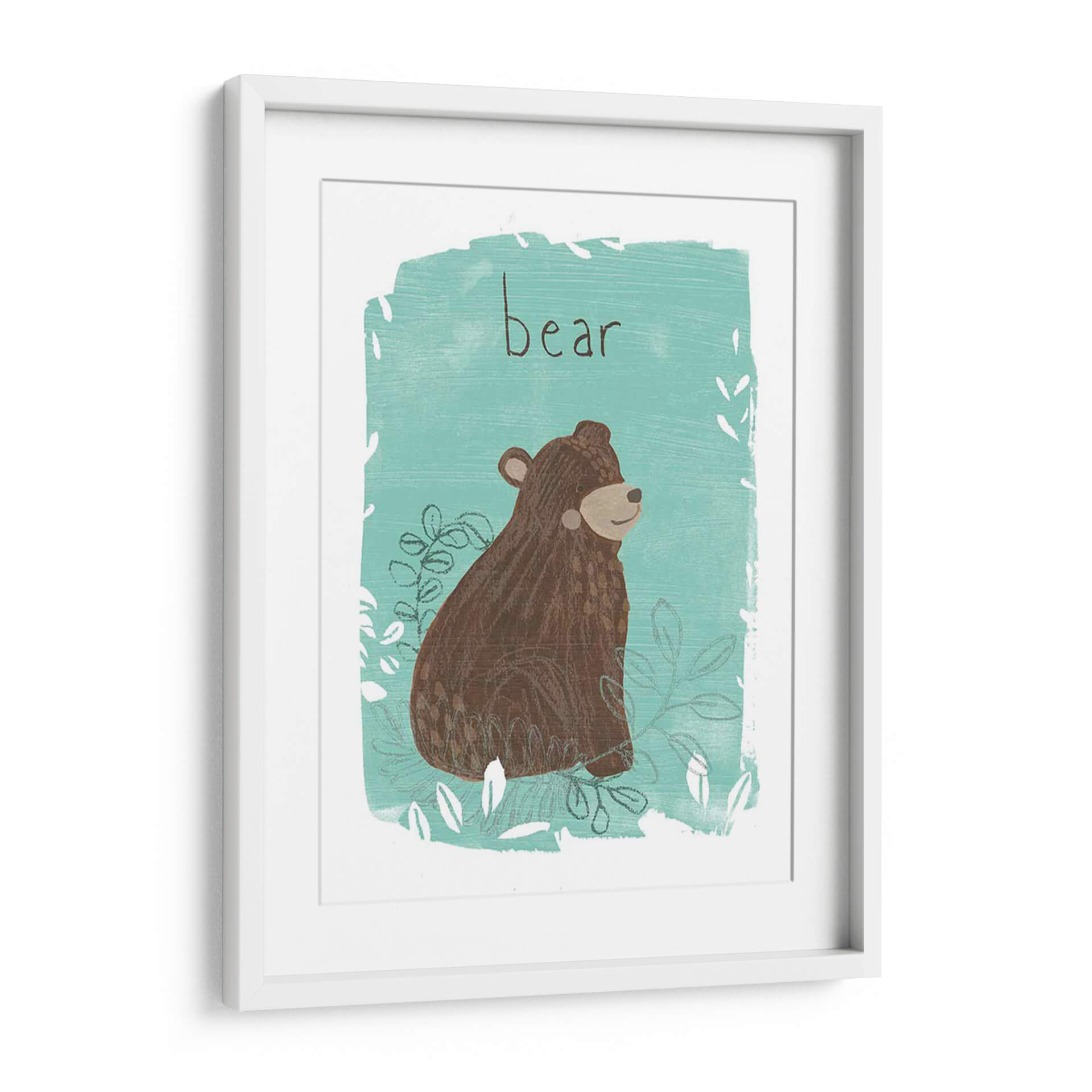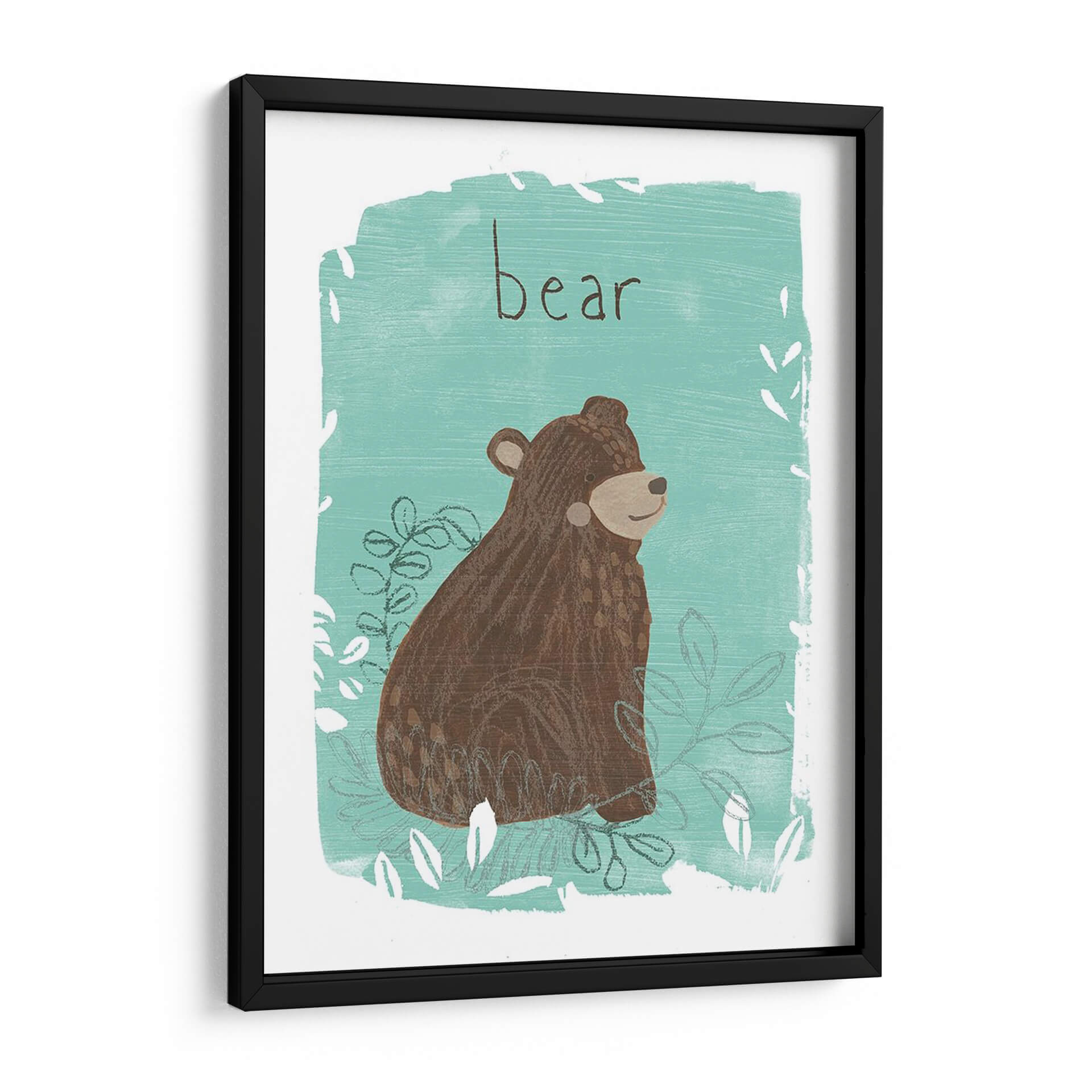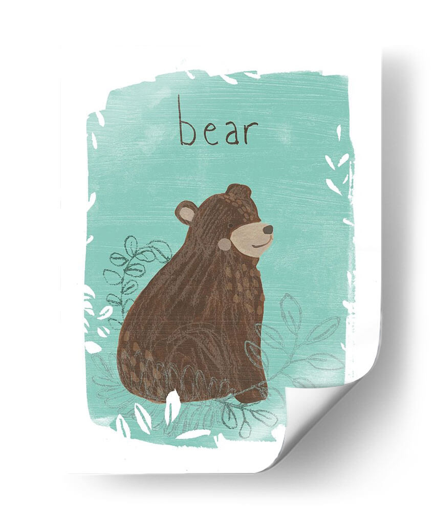 Aporta un toque de naturaleza y dulzura a tu hogar con "Critter Cameo IV", una obra de arte digital que captura la esencia juguetona de un oso en su hábitat. Esta pieza presenta un diseño encantador y estilizado de un oso marrón sentado entre hojas y ramas, todo enmarcado por un vibrante color turquesa y detalles sutiles en blanco y gris. La ilustración, con su estética de arte popular contemporáneo, evoca una sensación de calma y conexión con la vida silvestre. Los trazos visibles y la textura aplicada confieren a la obra una calidez y un carácter único, como si hubiera sido pintada a mano. El título "bear" escrito en una tipografía simple y legible añade un elemento directo y encantador. Este cuadro decorativo es perfecto para añadir un punto de interés visual en habitaciones infantiles, estudios, o cualquier espacio que busque una dosis de alegría natural. Su paleta de colores, que combina el marrón terroso del oso con el fresco turquesa, lo hace versátil para diversas decoraciones, desde la escandinava hasta la rústica moderna. "Critter Cameo IV" es más que una simple imagen; es una invitación a la serenidad y a la belleza simple de la naturaleza, transformando cualquier pared en un lienzo de expresión y encanto.