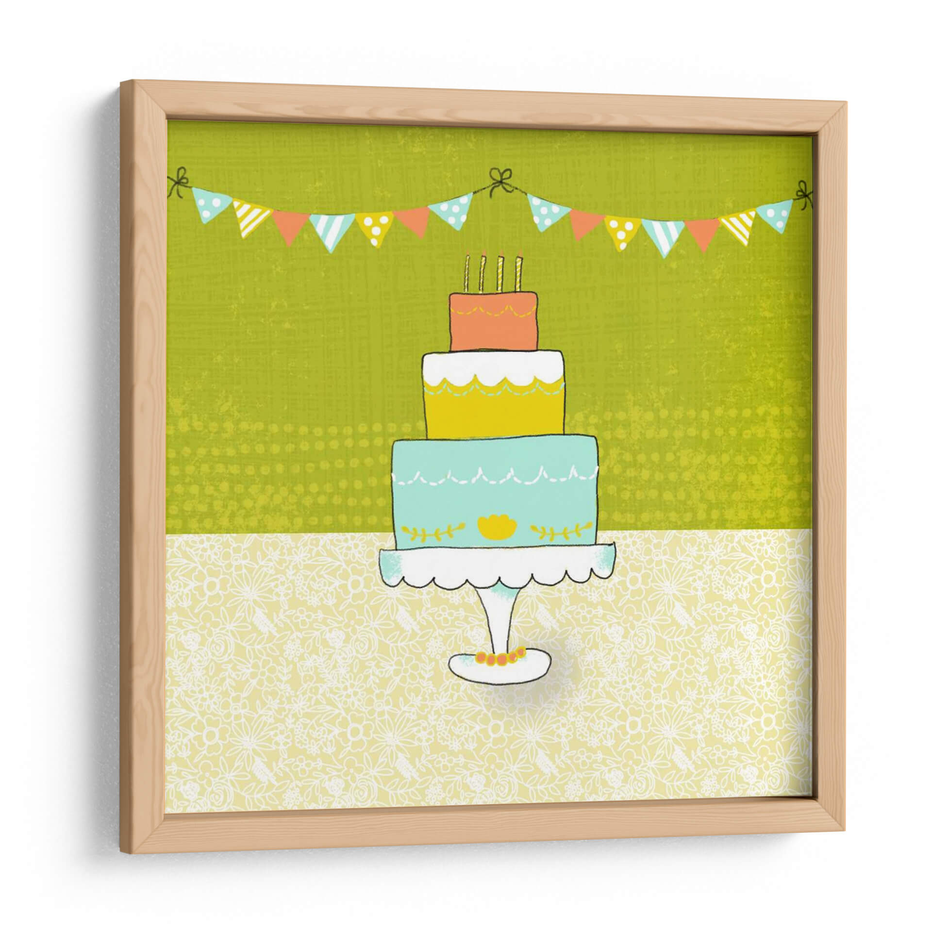 Celebra la alegría de cada momento especial con "Cumpleaños Retro II", una obra de arte vibrante y encantadora de Chariklia Zarris. Este cuadro decorativo captura la esencia festiva a través de un pastel de varias capas, adornado con velas y coronado por una guirnalda de banderines coloridos que evocan una atmósfera de celebración. La paleta de colores, dominada por un alegre verde lima en el fondo y contrastada con los tonos pastel del pastel y los banderines, crea una composición visualmente atractiva y optimista. El estilo distintivo de la artista, con un toque lúdico y retro, se manifiesta en los detalles gráficos y las texturas sutiles que dan vida a la pieza. Ideal para añadir un toque de dulzura y nostalgia a cualquier espacio, desde la sala de estar hasta una habitación infantil o una cocina. Este cuadro es perfecto para quienes buscan infundir calidez, felicidad y un sentido de celebración en su hogar. Añade un toque de color y positividad a tus paredes con esta pieza única que evoca recuerdos felices y celebra la vida.