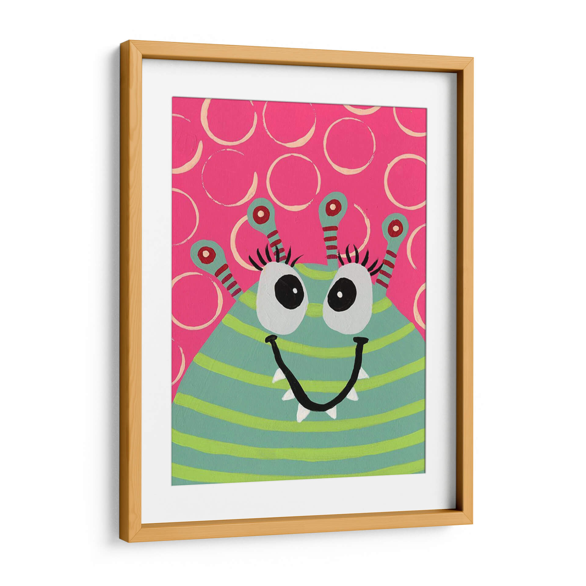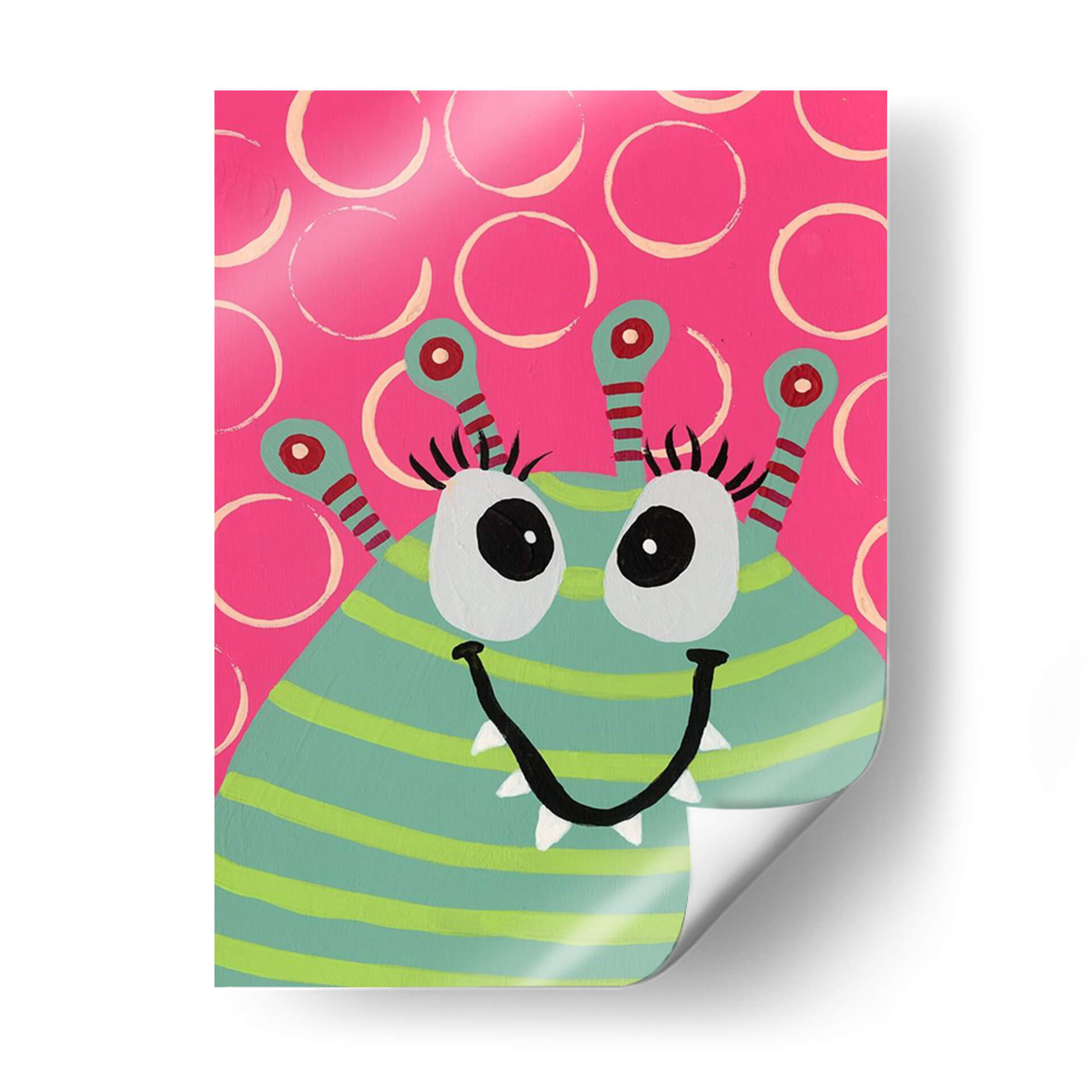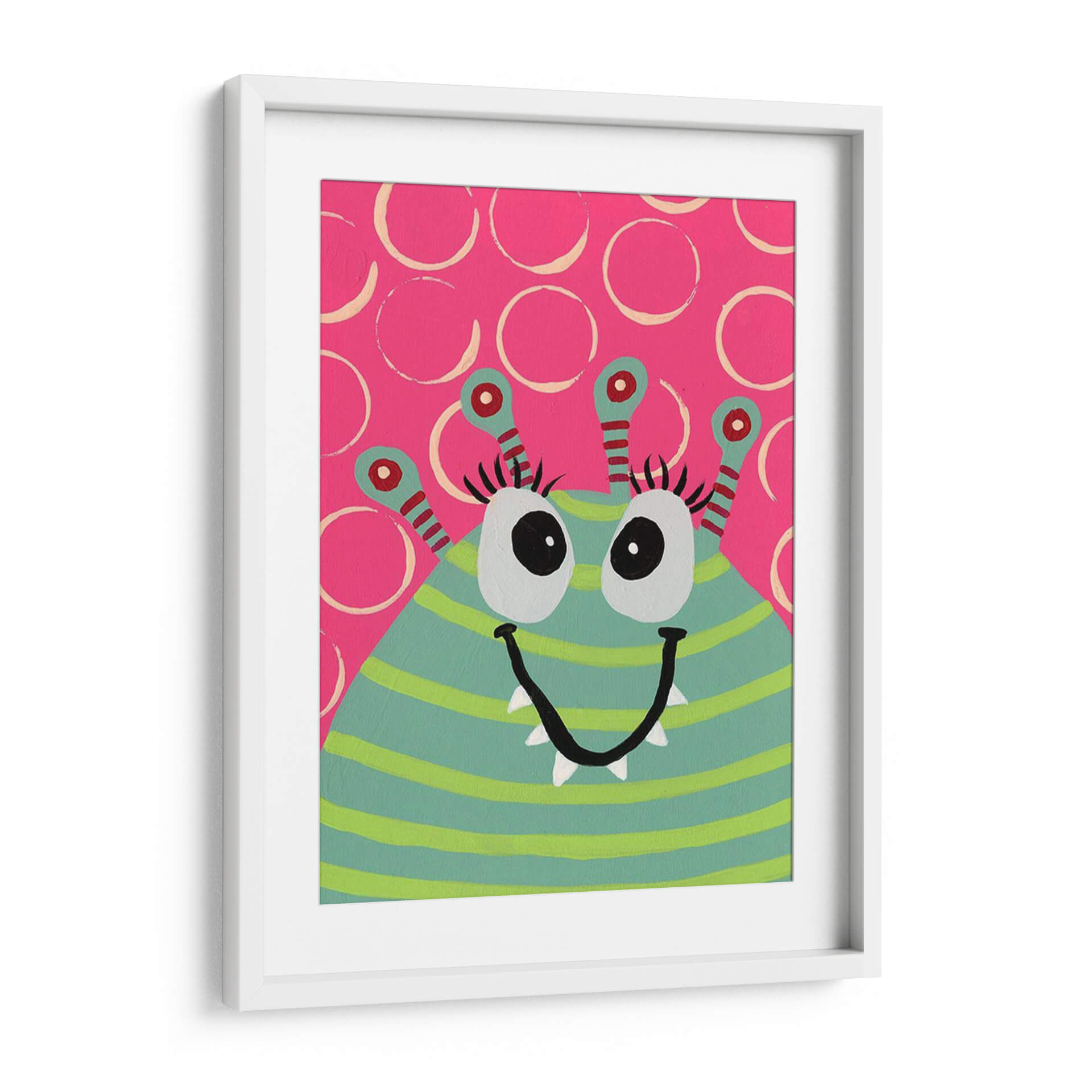 Sumérgete en un universo de alegría y color con "Felices Criaturas Vii", una obra de arte vibrante del artista Regina Moore. Esta pieza captura la esencia de la inocencia y la diversión a través de su estilo juguetón y audaz. El fondo rosa intenso, salpicado de círculos blancos, crea una base energética sobre la que emerge una criatura encantadora. Sus grandes ojos blancos con pupilas negras, pestañas largas y estilizadas, y sus antenas con detalles rojos y rayas azules y rojas, le otorgan una personalidad cautivadora. El cuerpo de la criatura, delineado con rayas horizontales en tonos verde menta y lima, junto a una sonrisa pícara adornada con dientes afilados, transmite una sensación de picardía amistosa. "Felices Criaturas Vii" es un cuadro decorativo ideal para espacios infantiles, salas de juego o cualquier rincón que necesite un toque de optimismo y fantasía. Su paleta de colores vivos y su diseño original lo convierten en un punto focal alegre y memorable, perfecto para despertar sonrisas y conversaciones. Añade un estallido de felicidad a tu decoración con esta pieza única que celebra la imaginación y la vitalidad.