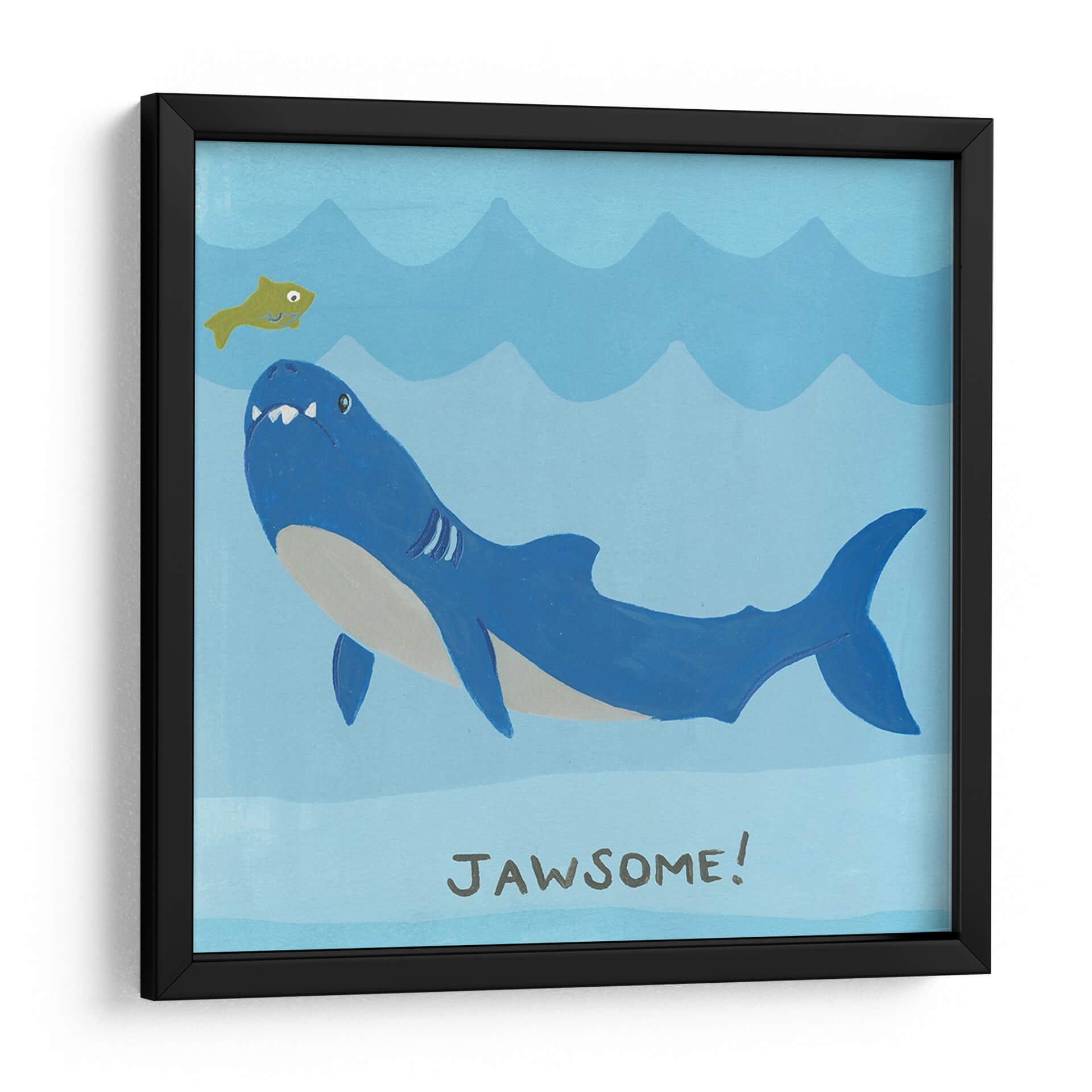 Sumérgete en la diversión submarina con "Jawesome I", una obra de arte vibrante y juguetona del artista June Erica Vess. Este cuadro decorativo captura la imagen de un simpático tiburón azul nadando junto a un pequeño pez amarillo en un mar de tonos celestes. La simplicidad de las formas y la paleta de colores alegres crean una atmósfera de aventura y sorpresa, perfecta para añadir un toque de personalidad a cualquier espacio. El estilo, que combina elementos de ilustración infantil con un toque moderno, hace que esta pieza sea ideal para habitaciones de niños, guarderías, o para aquellos que buscan una decoración mural llena de carácter y buen humor. La inscripción "JAWSOME!" añade un juego de palabras ingenioso que seguramente provocará sonrisas. Este cuadro decorativo es más que una simple imagen; es una invitación a celebrar la belleza del océano y sus criaturas con un diseño contemporáneo y encantador. Ideal para oficinas, salas de estar o cualquier lugar donde desees infundir un espíritu lúdico y un toque de color azul refrescante.