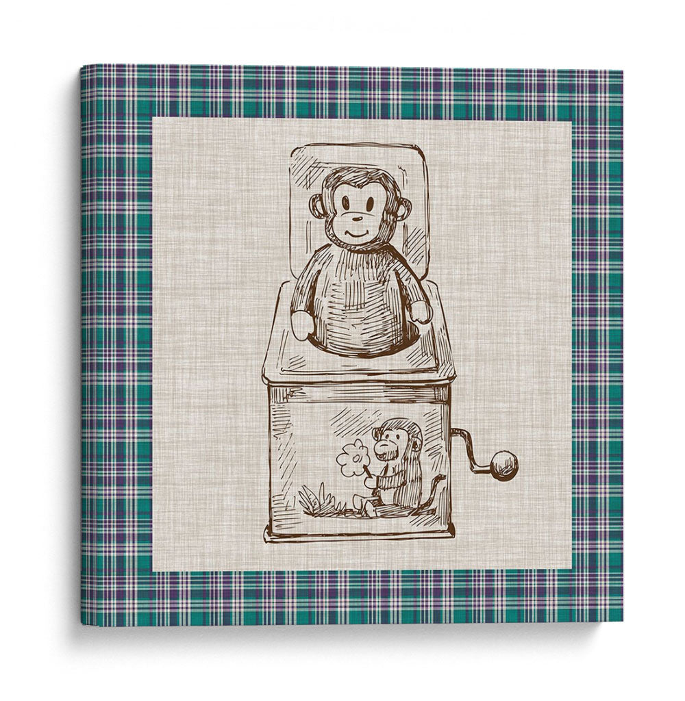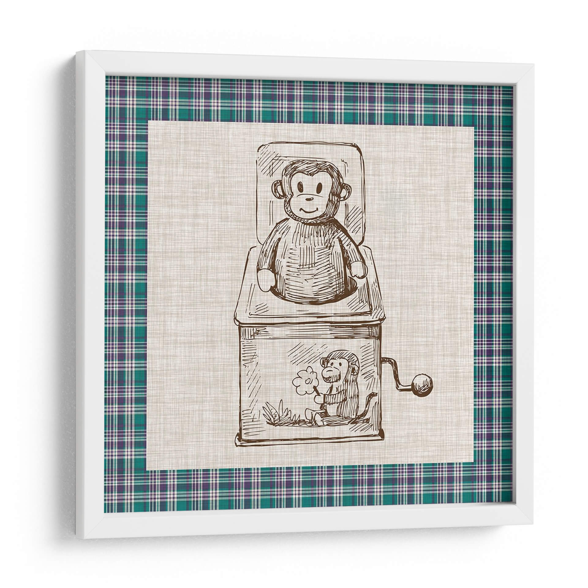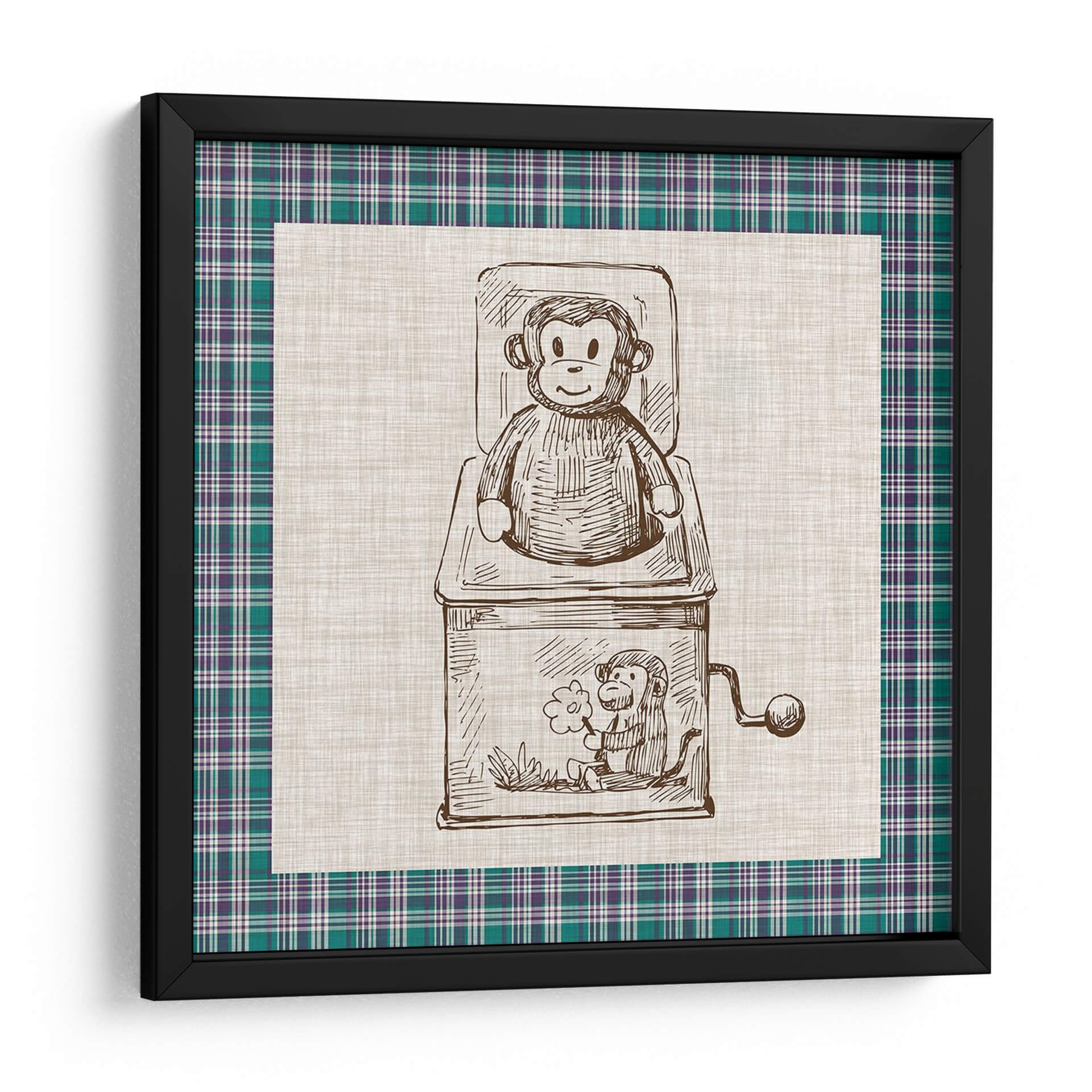 Revive la nostalgia y la alegría de la infancia con "Juguetes Retro I", una encantadora obra de arte digital de Vision Studio. Este cuadro decorativo presenta un adorable mono salta-príncipe en su icónica caja, dibujado con un estilo de boceto a mano alzada en tonos sepia que evoca recuerdos de tiempos pasados. El diseño se enmarca en un sutil lienzo de textura natural, acentuado por un borde de tartán en tonos verdes y púrpuras, añadiendo un toque clásico y acogedor. La simplicidad y el encanto de esta pieza la convierten en una adición perfecta para cualquier espacio que busque infundir un ambiente juguetón y sentimental. Ideal para habitaciones infantiles, salas de juego o cualquier rincón que necesite un toque de calidez y carácter retro. Su estilo vintage y su temática de juguete clásico atraen a quienes buscan una decoración única y llena de personalidad.