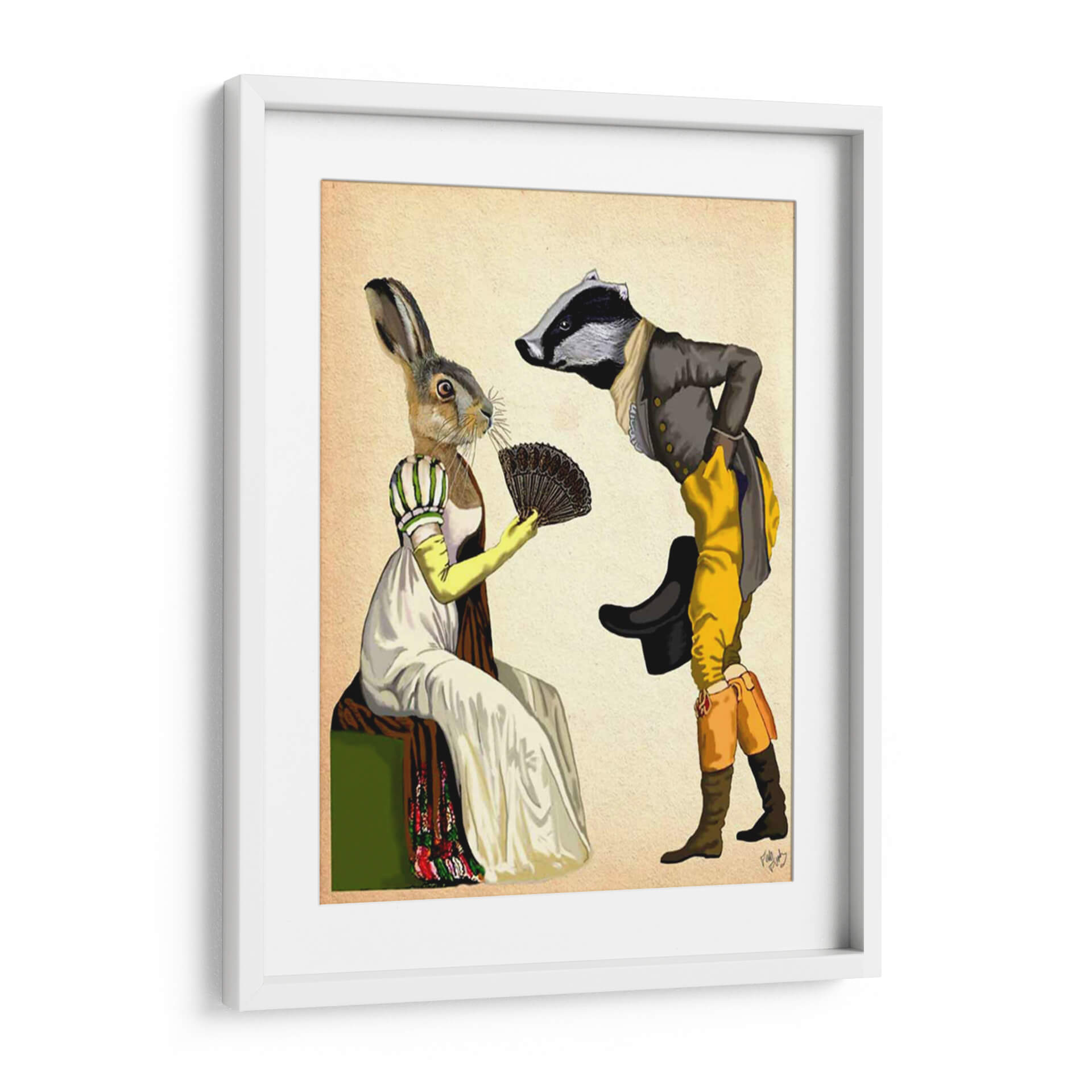 Adéntrate en un mundo de encanto y fantasía con el cuadro decorativo "Mirada De Amor" del artista Fab Funky. Esta obra maestra visualmente cautivadora presenta una intrigante composición de animales antropomórficos ataviados con vestimenta de época, evocando una escena de corte o un encuentro romántico del siglo XVIII. La paleta de colores, dominada por tonos cálidos y neutros con sutiles toques de amarillo y verde, crea una atmósfera nostálgica y elegante. El detallado diseño de los personajes, un conejo con un abanico y un tejón en pose galante, añade un elemento de humor y sofisticación. Este cuadro decorativo es perfecto para quienes buscan añadir un toque de originalidad y conversación a su hogar u oficina. Ideal para salones, estudios o dormitorios que busquen una pieza de arte única que inspire sonrisas y admiración. "Mirada De Amor" no es solo una decoración, es una invitación a un mundo de imaginación y estilo.
