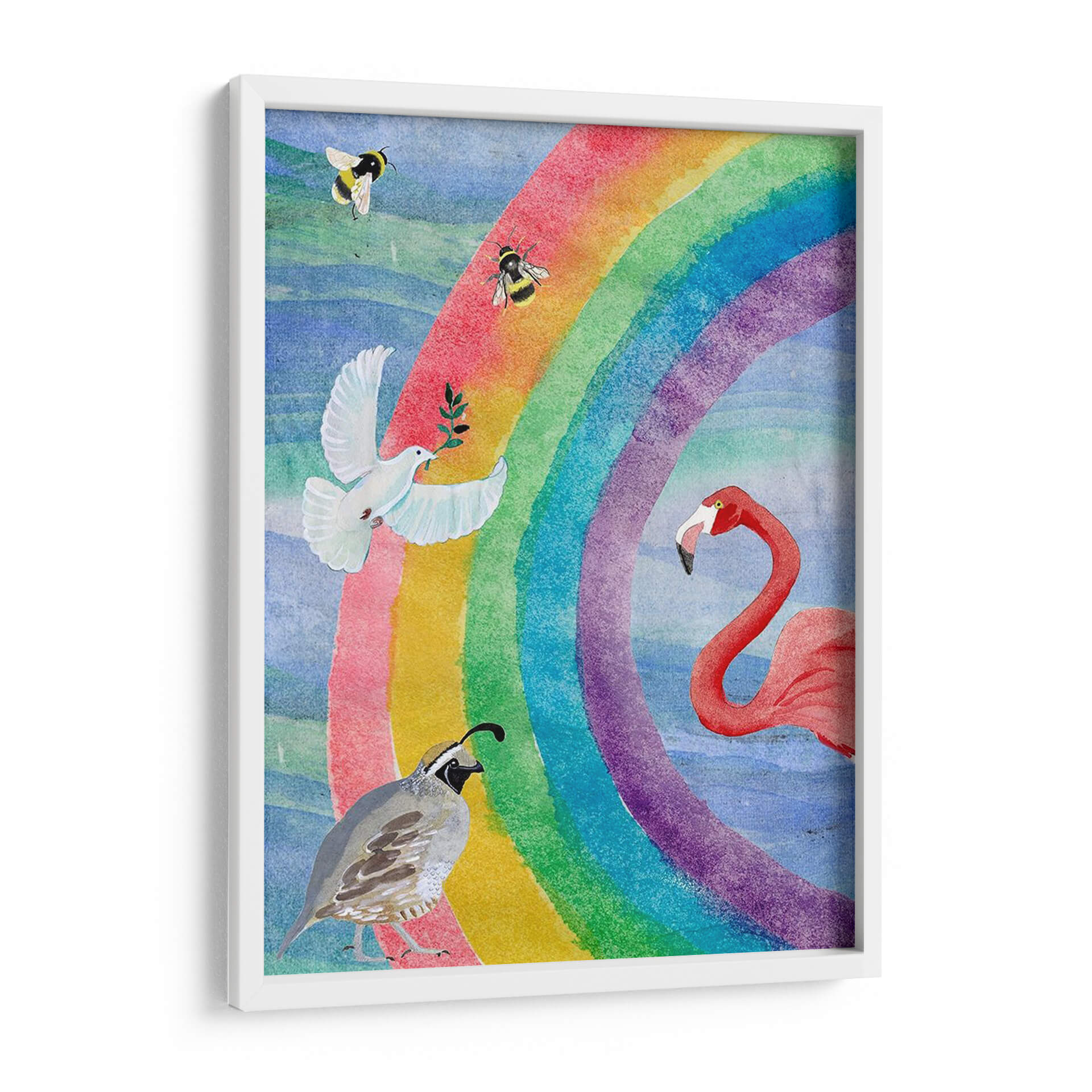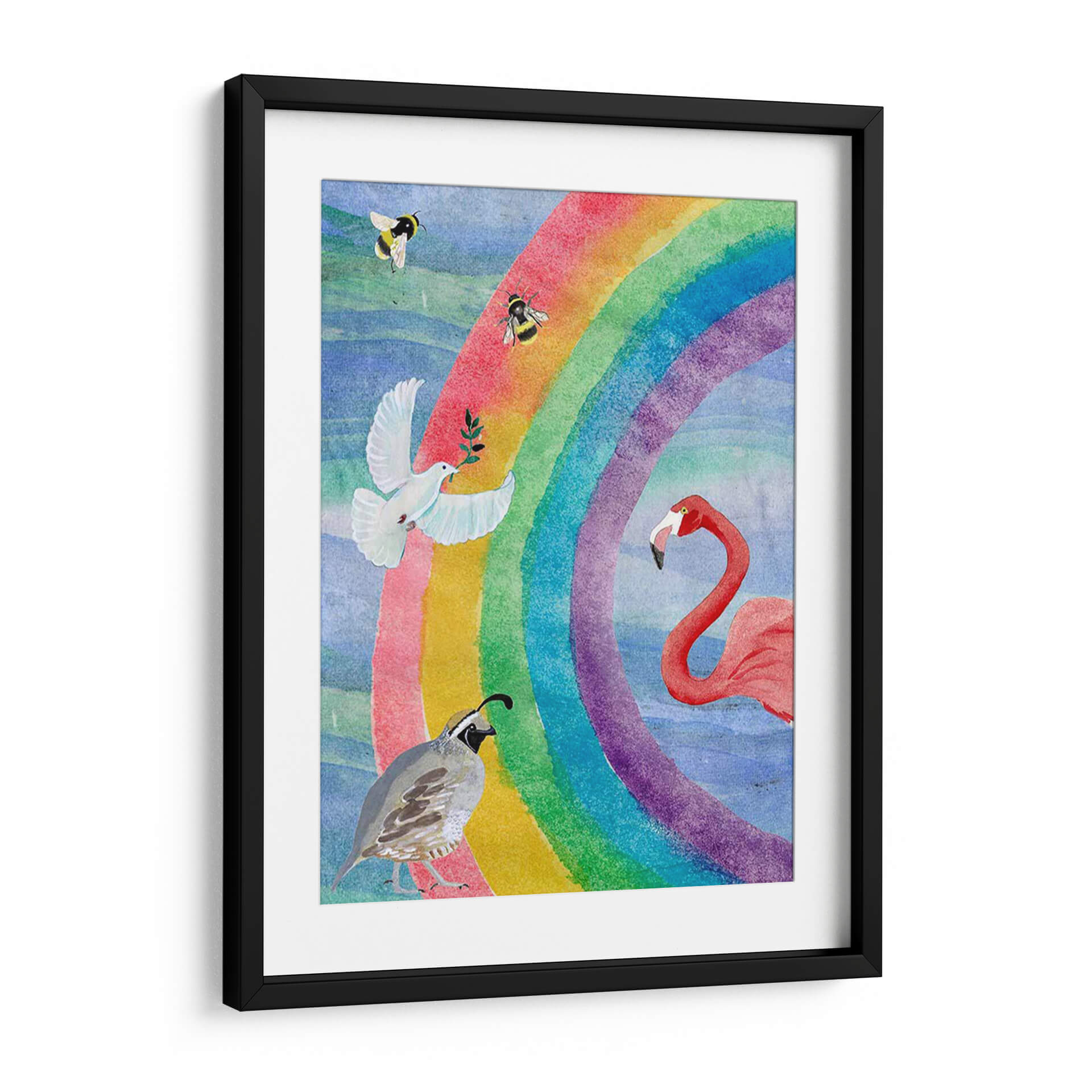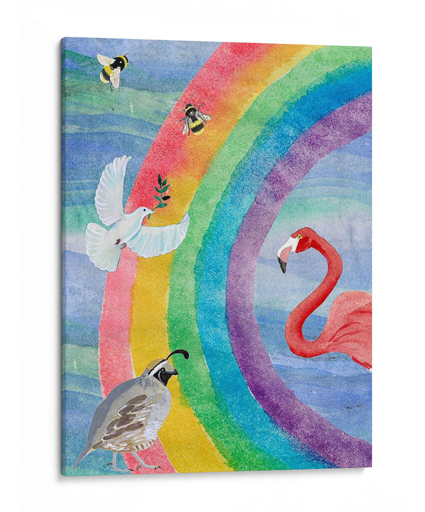 Sumérgete en la serenidad y la esperanza con "Noahs Ark I", una cautivadora obra de arte de Alicia Ludwig. Este cuadro decorativo representa un vibrante arcoíris que sirve de puente entre un cielo acuático de tonos azules y verdes, evocando una sensación de calma y renovación. En primer plano, un codorniz posa con elegancia, mientras una paloma blanca, símbolo de paz, surca el aire portando una rama de olivo. El dúo dinámico de abejas añade un toque de vitalidad y el flamenco rosado, con su silueta estilizada, aporta un matiz exótico y sofisticado. La paleta de colores es una celebración de la vida, con tonos pastel que se funden armoniosamente para crear una atmósfera onírica y tranquilizadora. El estilo, que combina elementos figurativos con una pincelada suelta y expresiva, confiere a la pieza una sensibilidad contemporánea. "Noahs Ark I" es más que una simple decoración de pared; es una invitación a la reflexión sobre la armonía de la naturaleza y la promesa de un nuevo comienzo. Ideal para dormitorios, salas de estar o cualquier espacio que busque un toque de color optimista y un mensaje inspirador. Este cuadro aportará luz y significado a tu hogar.