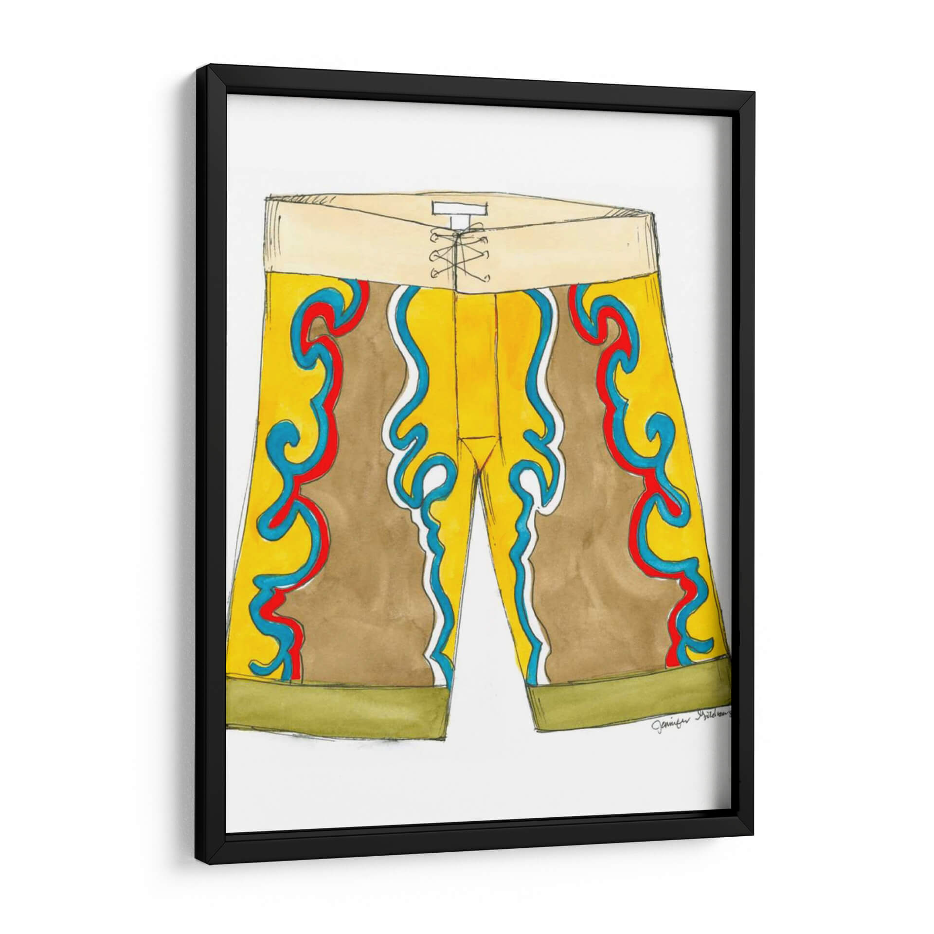 Sumérgete en la nostalgia veraniega con este vibrante cuadro decorativo de unos pantalones cortos de surf. La obra captura la esencia despreocupada y audaz de la cultura playera, utilizando una paleta de colores cálidos y alegres. Los tonos amarillos intensos dominan la pieza, evocando la calidez del sol y la arena, mientras que los detalles en marrón aportan una textura terrenal y orgánica. Los intrincados patrones curvos en azul y rojo añaden un toque de energía y movimiento, sugiriendo las olas del mar o la fluidez del diseño de la prenda. La composición se centra en la prenda icónica, presentada con un estilo que recuerda a las ilustraciones vintage, pero con un toque contemporáneo. Este cuadro decorativo es perfecto para infundir una atmósfera de relajación y aventura en cualquier espacio. Ideal para decorar una sala de estar, un dormitorio o incluso un espacio de oficina que necesite un toque de color y personalidad. Su diseño único lo convierte en un punto focal que invita a la conversación y evoca recuerdos de días soleados y brisa marina. Añade un toque de estilo retro y juvenil a tu decoración con esta pieza artística que celebra la libertad y el espíritu del surf.