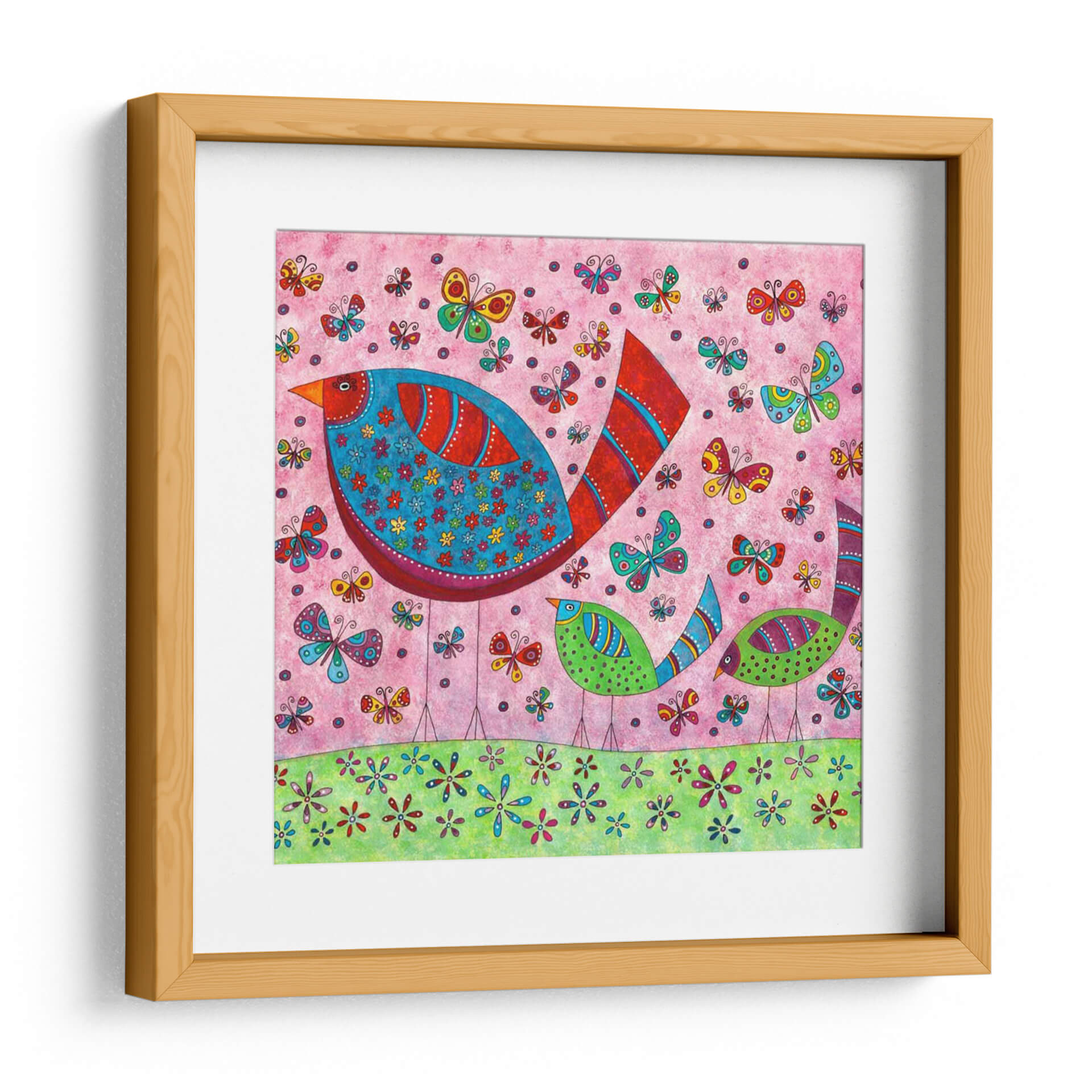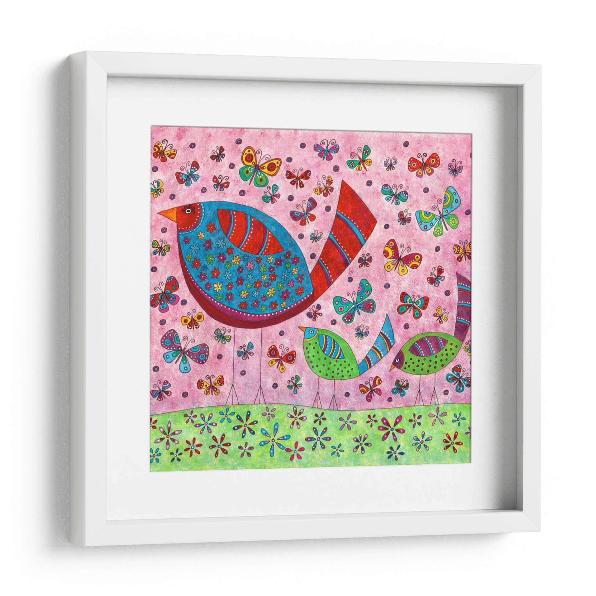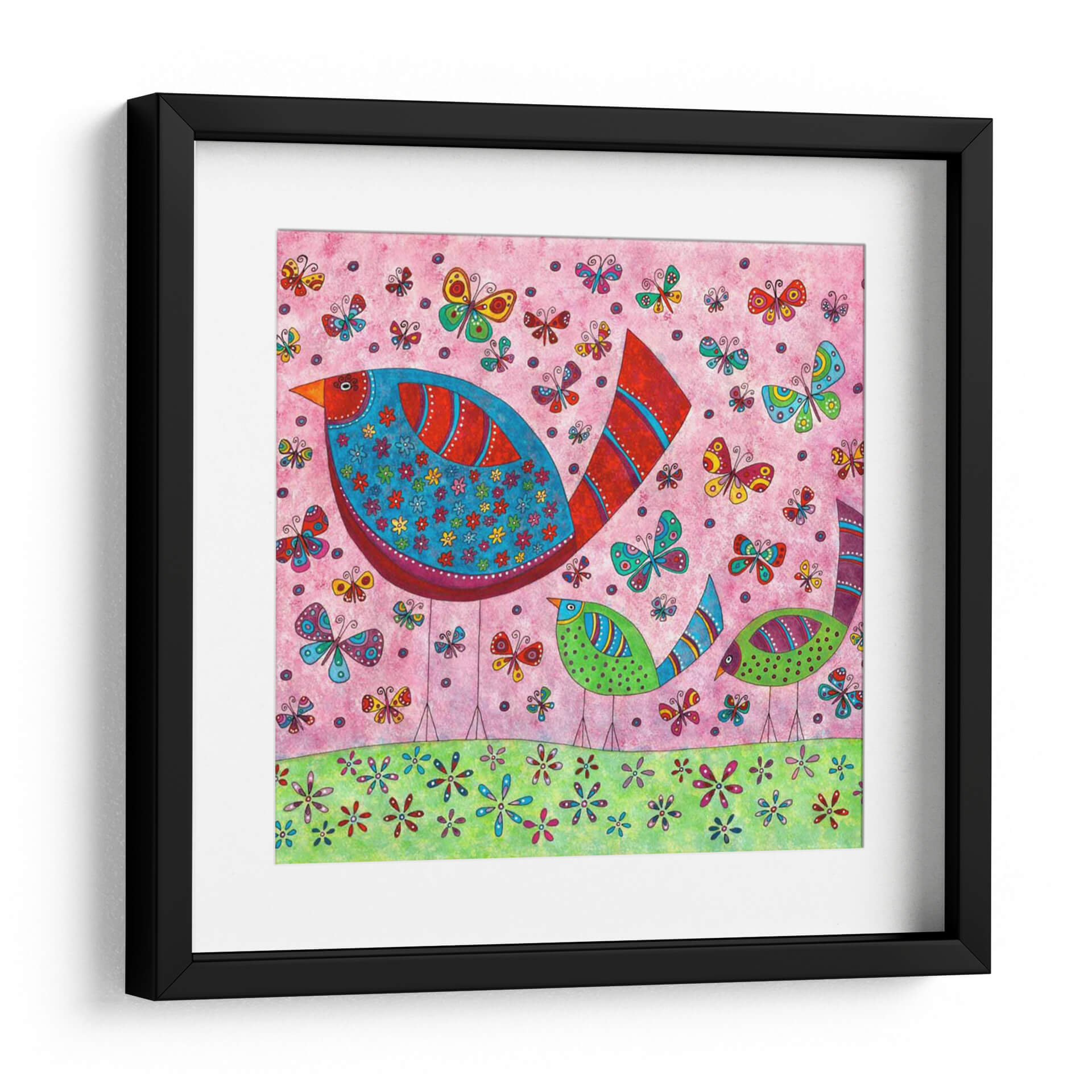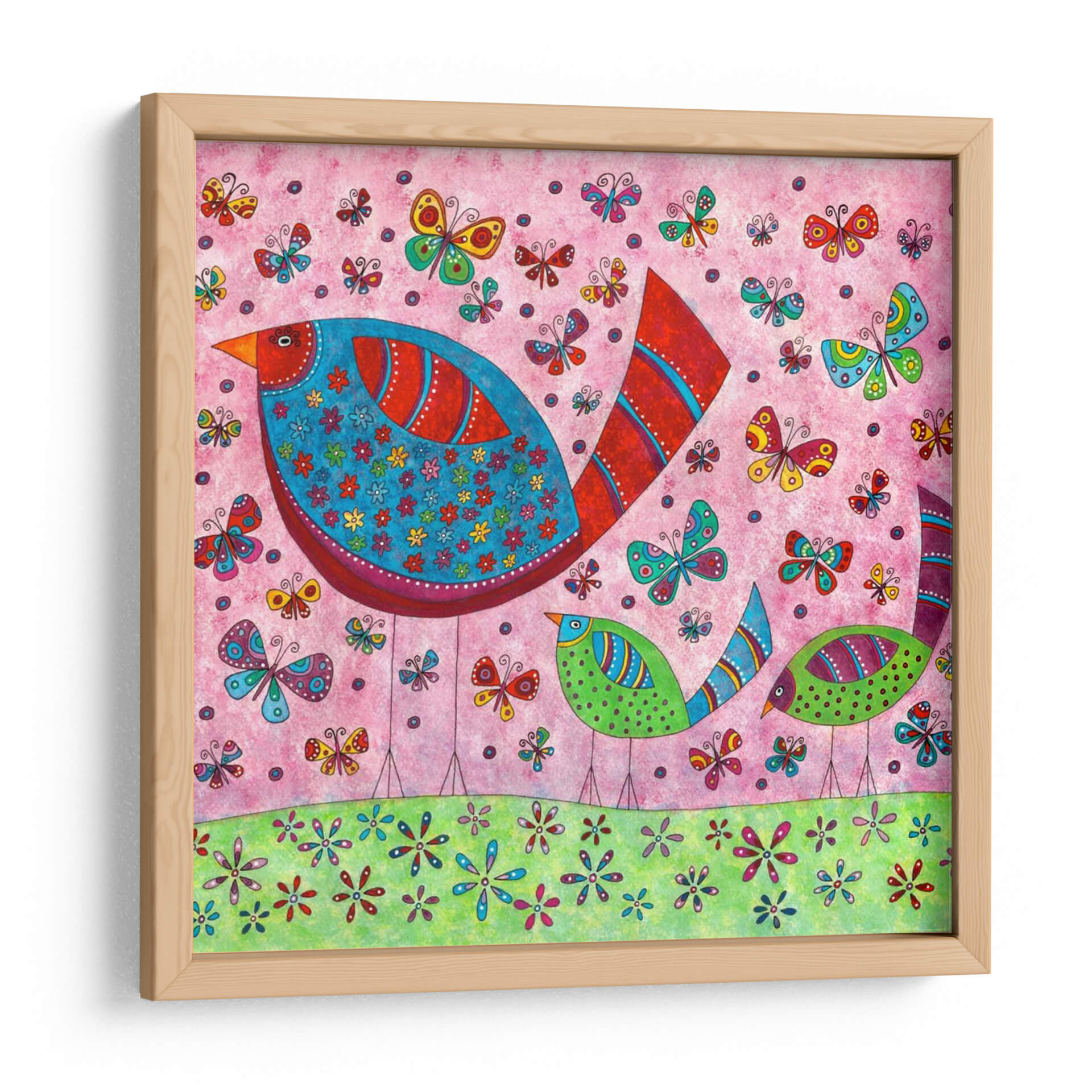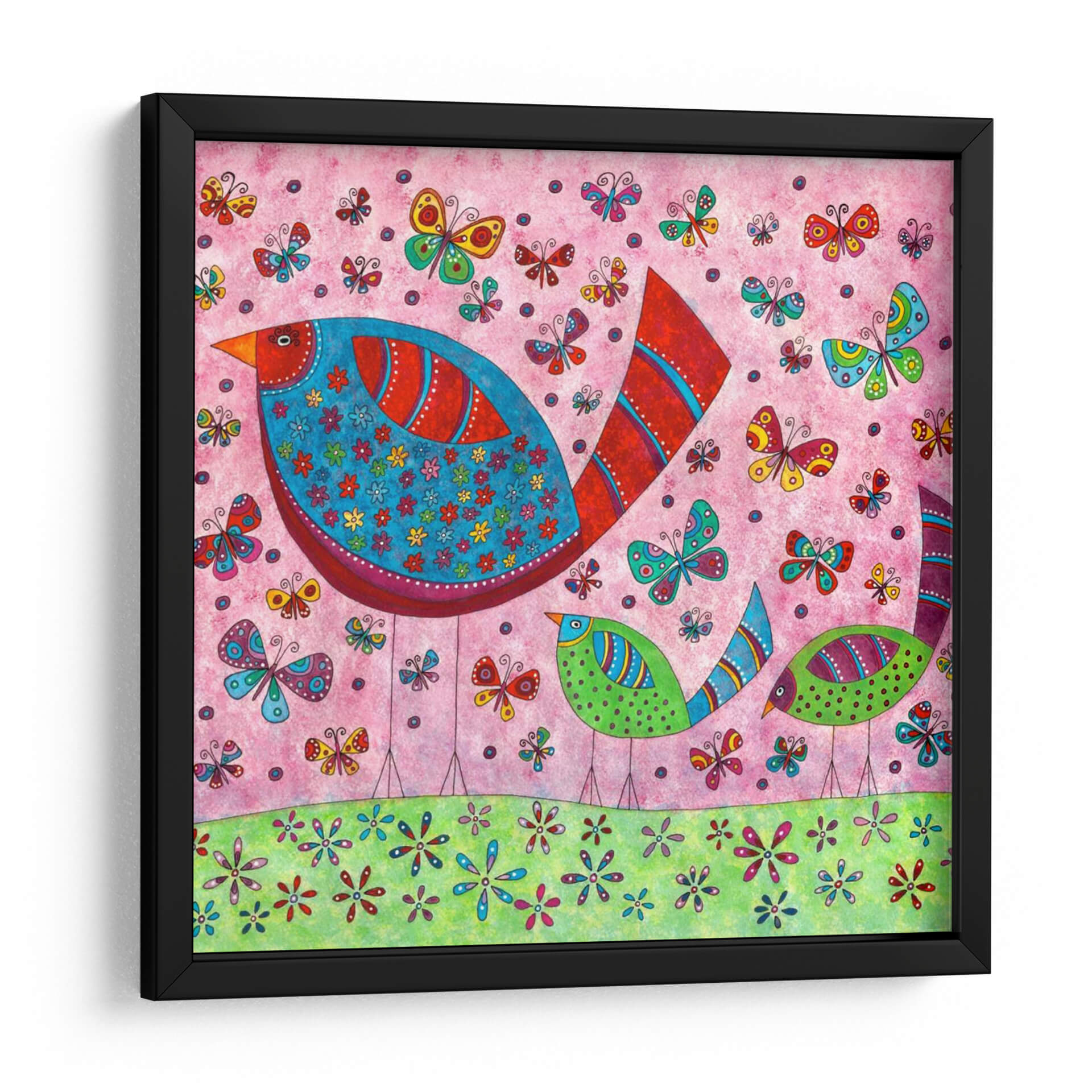 Sumérgete en un mundo de fantasía y color con 'Paseo de Pájaros', una obra de arte cautivadora que celebra la alegría de la naturaleza y la imaginación. Este cuadro decorativo, con su vibrante paleta de rosas, azules, verdes y acentos de rojo y amarillo, evoca una sensación de calidez y vitalidad. La composición presenta a tres pájaros estilizados, cada uno con un diseño único y detallado, rodeados por un enjambre de mariposas de múltiples colores. El fondo, de un rosa suave salpicado de pequeños puntos, crea una atmósfera etérea y juguetona. La obra se desarrolla sobre un campo de flores estilizadas y coloridas, añadiendo una capa de textura y vida. El estilo, que recuerda al arte naíf o folk con toques de ilustración infantil, invita a la sonrisa y a la contemplación. 'Paseo de Pájaros' es ideal para añadir un punto focal de alegría y originalidad a cualquier espacio, ya sea una sala de estar moderna, un dormitorio infantil o una oficina que necesite un toque de optimismo y creatividad. Transforma tu hogar en un refugio de ensueño con este encantador cuadro decorativo.