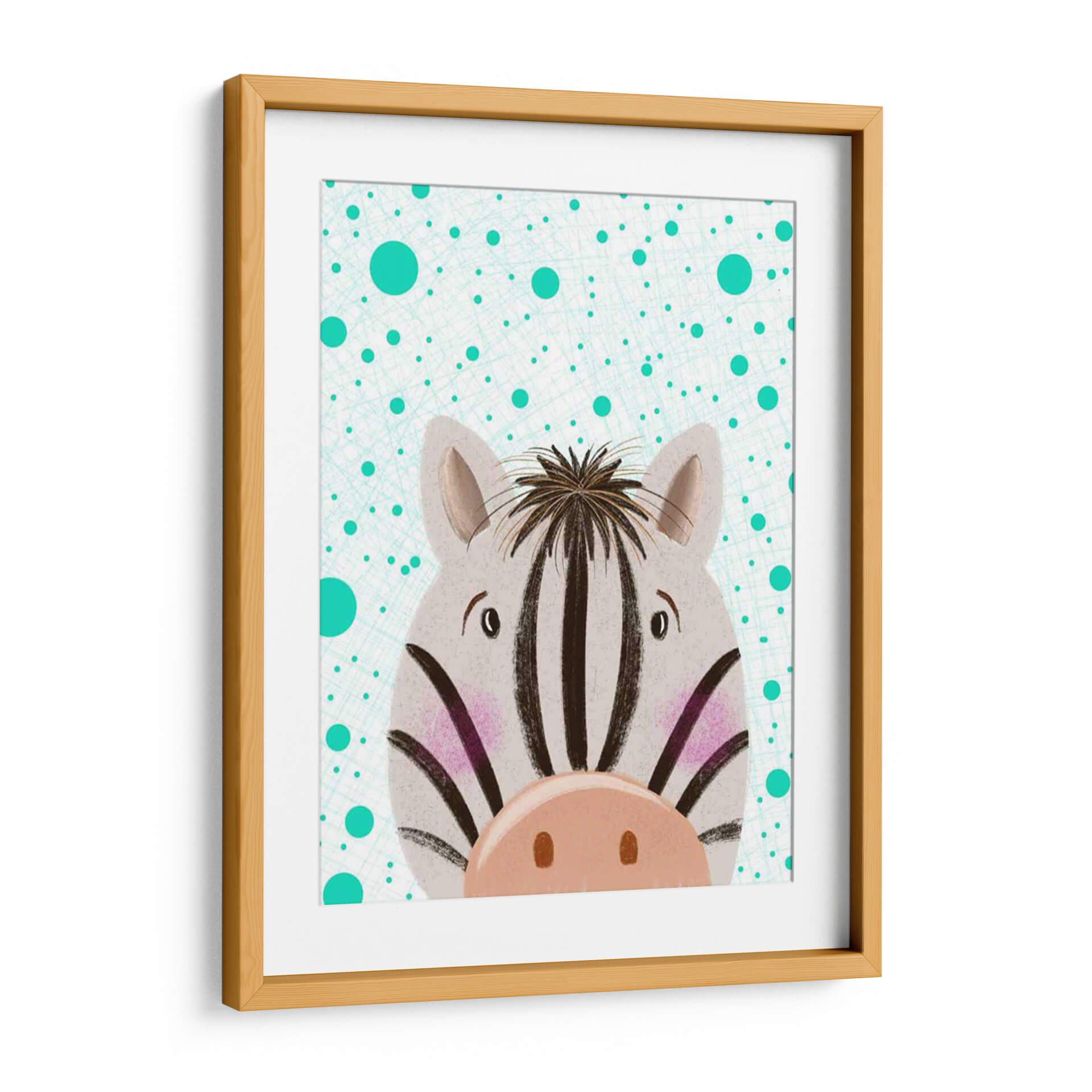 Dale un toque de ternura y estilo a tu hogar con "Peeky Boo V", una obra de arte original de Regina Moore. Este encantador cuadro decorativo presenta un adorable primer plano de una cebra, con sus característicos trazos en blanco y negro acentuados por un suave rubor rosado en sus mejillas. El fondo, salpicado de círculos y finas líneas en un vibrante tono turquesa sobre un suave celeste, añade un toque juguetón y moderno a la composición. La mirada curiosa y simpática de la cebra invita a la alegría y la inocencia, convirtiéndola en una pieza ideal para habitaciones infantiles, guarderías o cualquier espacio que busque transmitir calidez y diversión. El estilo artístico, con pinceladas sutiles y una paleta de colores cuidadosamente seleccionada, ofrece un equilibrio perfecto entre lo infantil y lo sofisticado. "Peeky Boo V" no es solo un cuadro, es una ventana a la imaginación, perfecta para crear un ambiente acogedor y lleno de personalidad.
