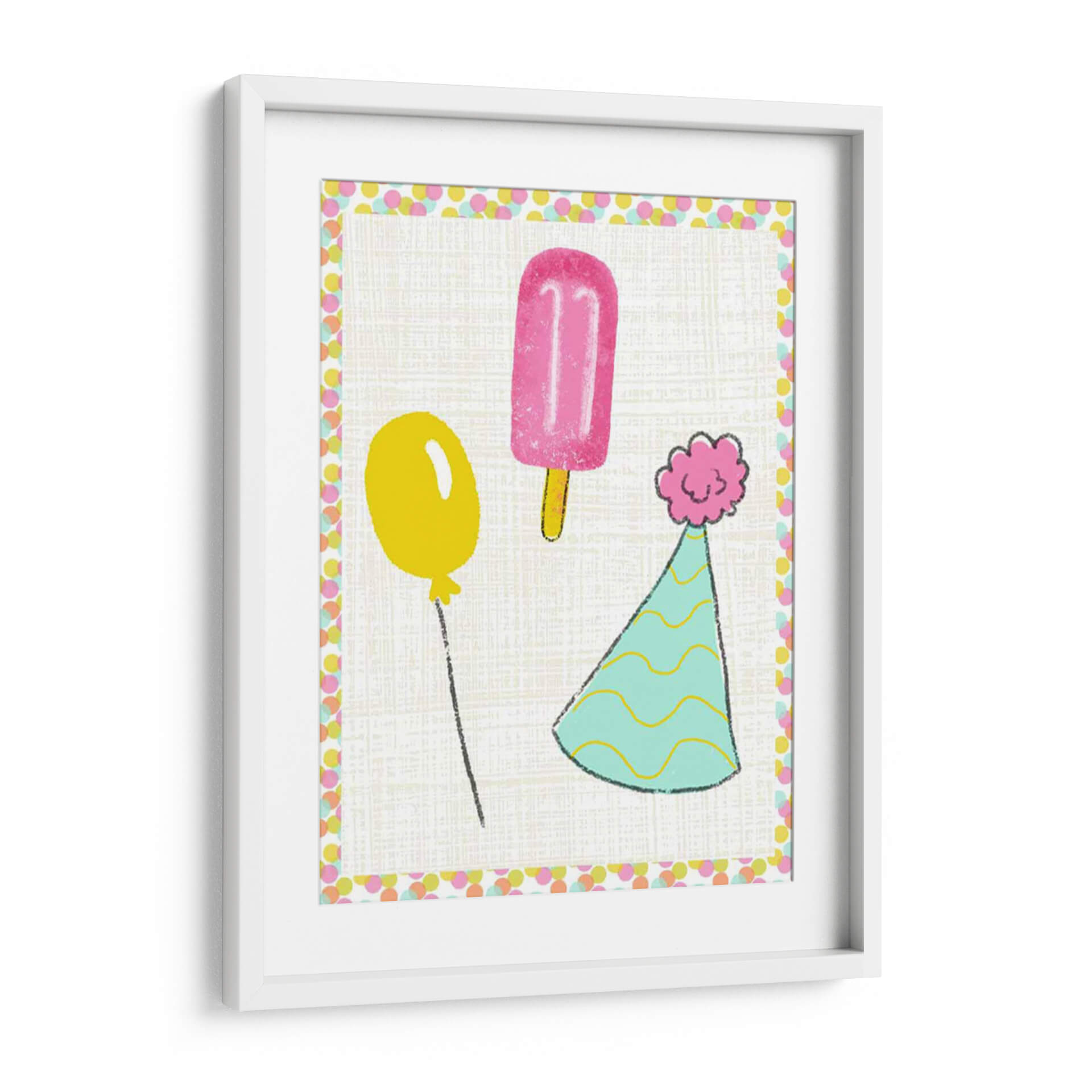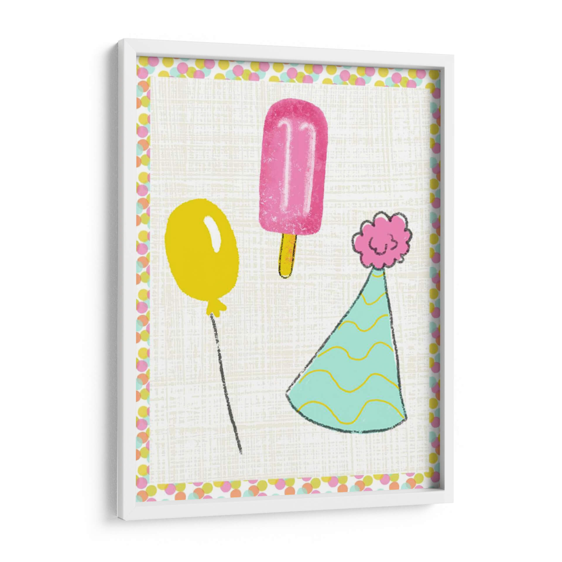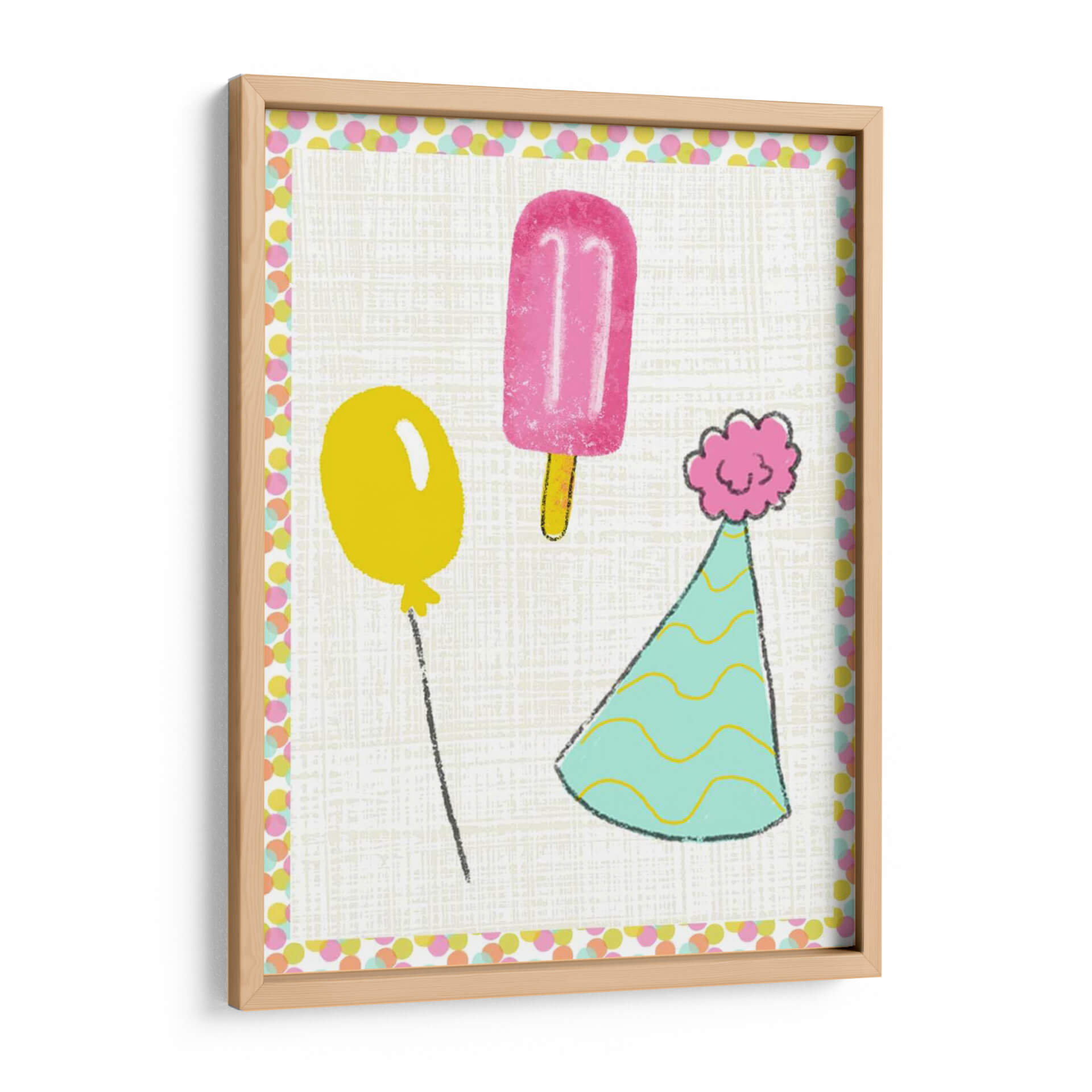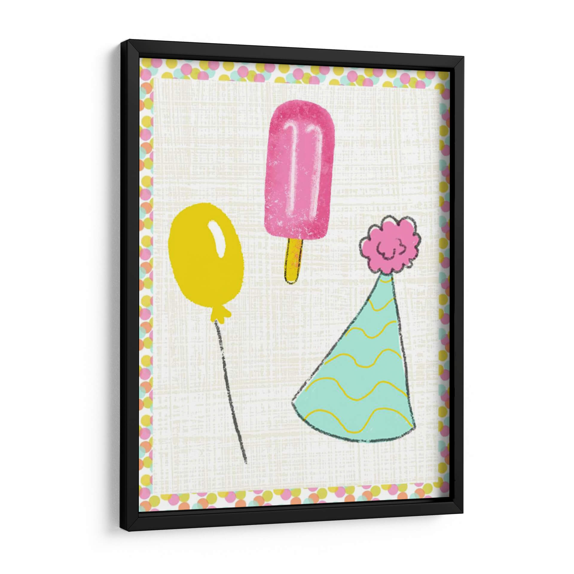 Celebra la alegría y la diversión con "Pop Fiesta I", una obra de arte vibrante y alegre del artista Chariklia Zarris. Este cuadro decorativo captura la esencia de una celebración con sus elementos icónicos: un helado de polo rosa, un globo amarillo flotante y un gorro de fiesta turquesa adornado con un pompón rosa. La paleta de colores es juguetona y brillante, dominada por tonos pastel y toques de amarillo, rosa y turquesa, creando una atmósfera de pura felicidad y optimismo. El estilo de la obra es deliberadamente simple y con un toque infantil, evocando nostalgia y momentos de inocencia. La composición presenta estos elementos festivos de manera equilibrada sobre un fondo texturizado de color crema, enmarcado por un borde decorativo de confeti multicolor, que añade un toque extra de dinamismo y color. "Pop Fiesta I" es la pieza perfecta para inyectar energía positiva y un espíritu lúdico a cualquier espacio. Ideal para la habitación de un niño, una sala de juegos, una cocina moderna o incluso como un punto focal inesperado en una oficina, este cuadro decorativo es una invitación a sonreír y a recordar los momentos más dulces de la vida. Añade un toque de carácter y diversión a tu decoración con esta pieza única.