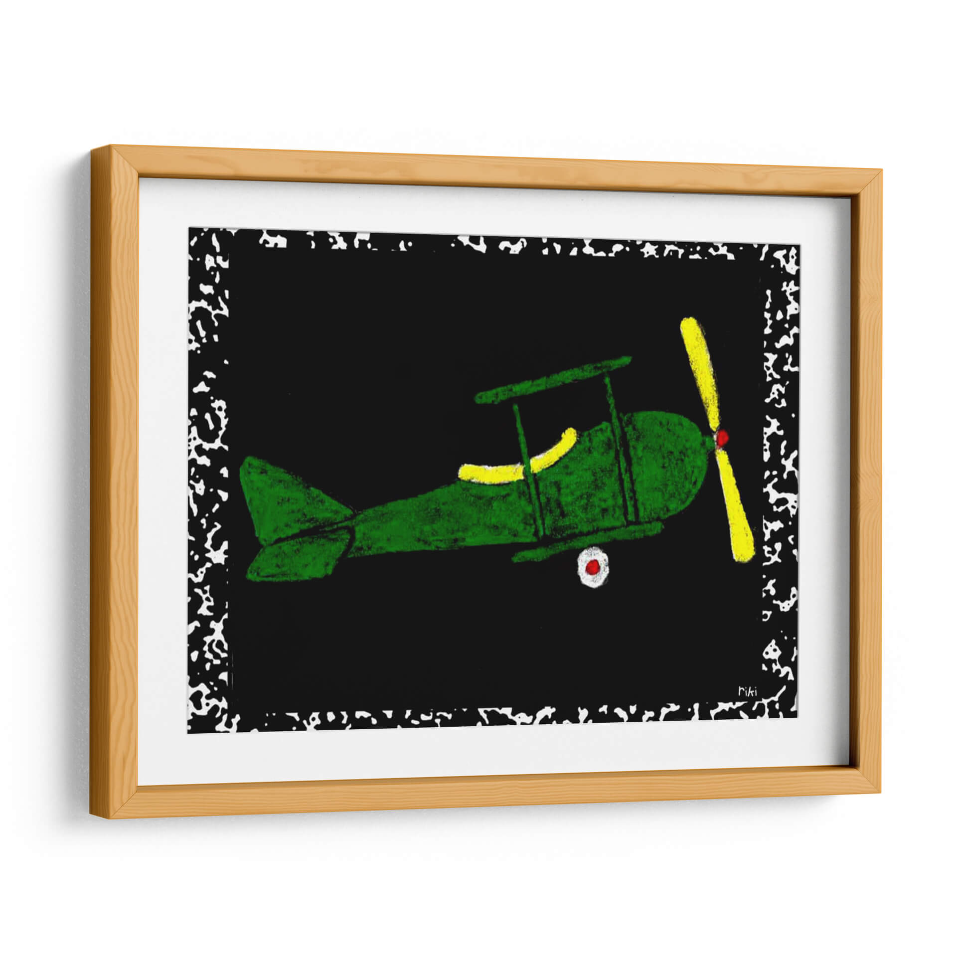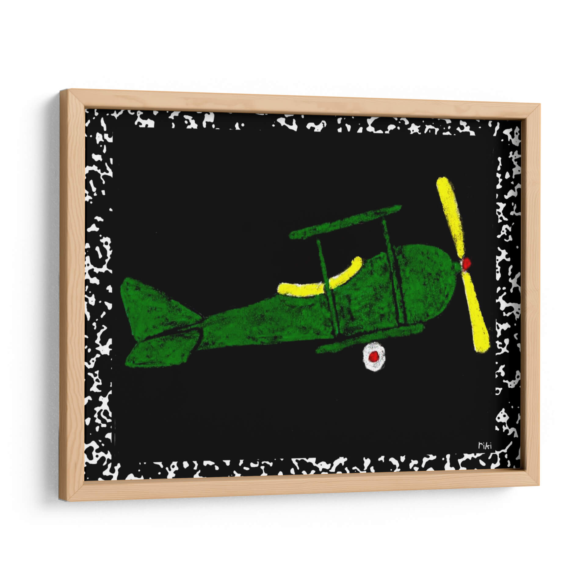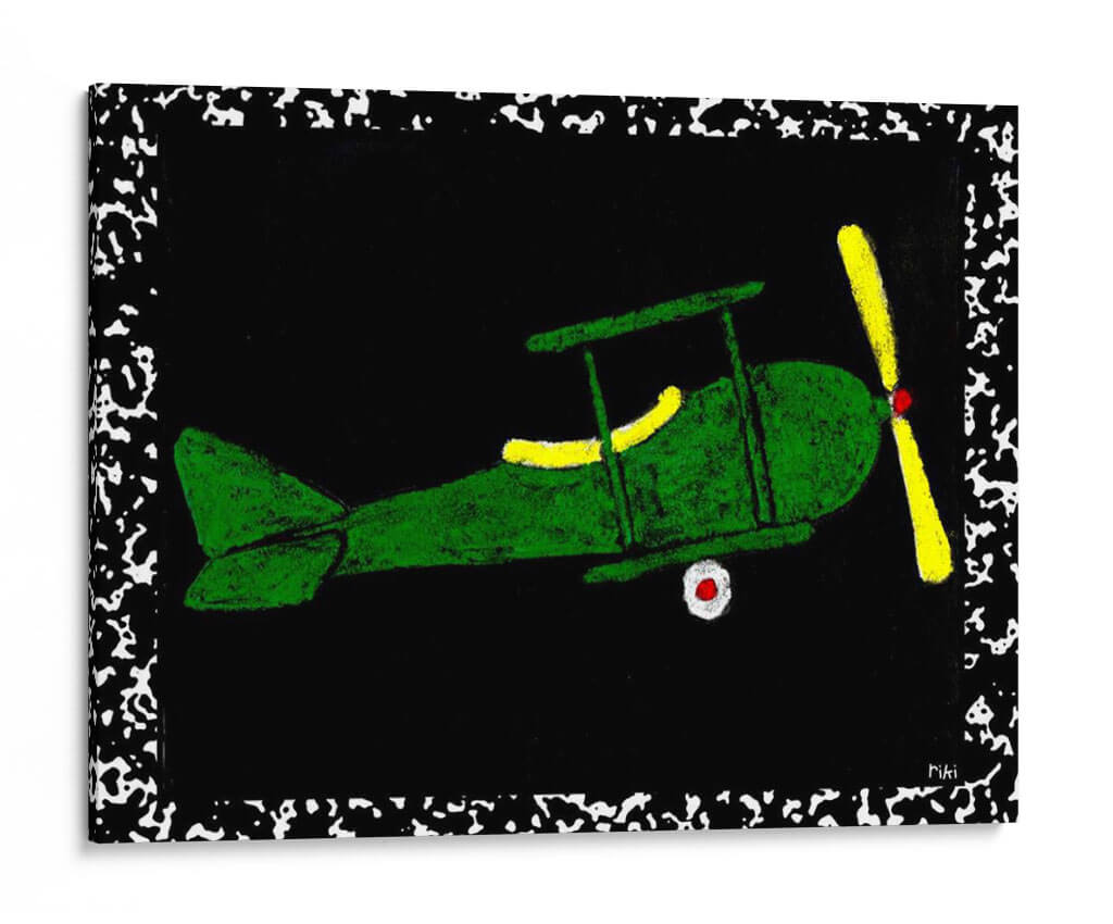 Sumérgete en el mundo de la aviación con 'Receso III', una obra de arte vibrante y llena de nostalgia. Este cuadro decorativo presenta un biplano verde brillante con detalles en amarillo y rojo, posicionado contra un fondo negro contrastante. La composición evoca una sensación de aventura y juego, recordando los dibujos infantiles o un estudio inicial de la aeronáutica. El estilo, que recuerda a la técnica de pasteles o ceras, aporta una textura visual única y un encanto artesanal. Los colores audaces y el tema lúdico hacen de esta pieza una adición perfecta para habitaciones infantiles, estudios creativos o cualquier espacio que busque un toque de originalidad y diversión. Imagina cómo este cuadro puede infundir energía y carácter a tu pared, sirviendo como un punto focal alegre y distintivo. 'Receso III' es más que una simple decoración; es una invitación a soñar con cielos abiertos y hazañas aéreas, ideal para quienes aprecian el arte con un toque de fantasía y simplicidad encantadora. Transforma tu hogar u oficina con esta pieza única que celebra la maravilla de volar.