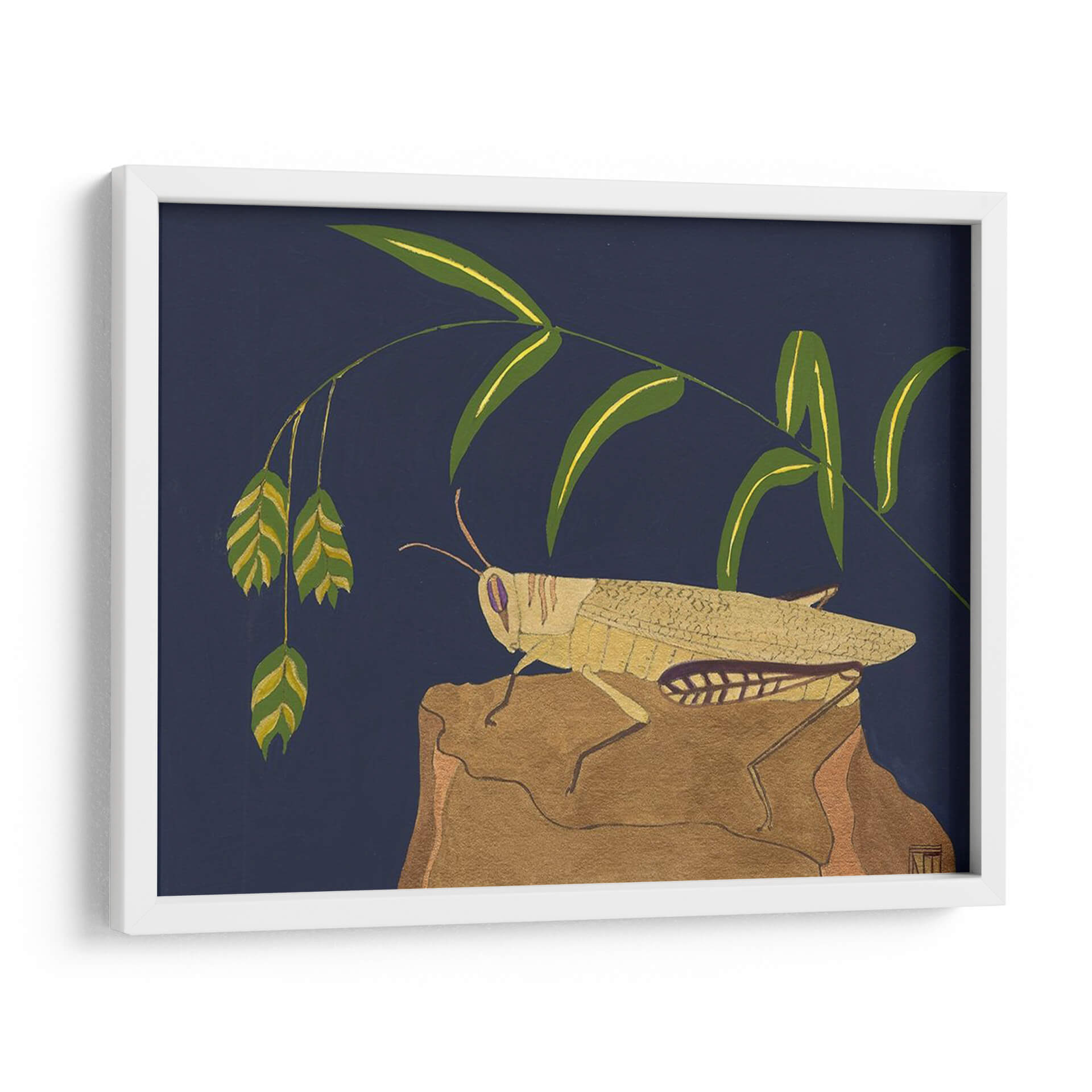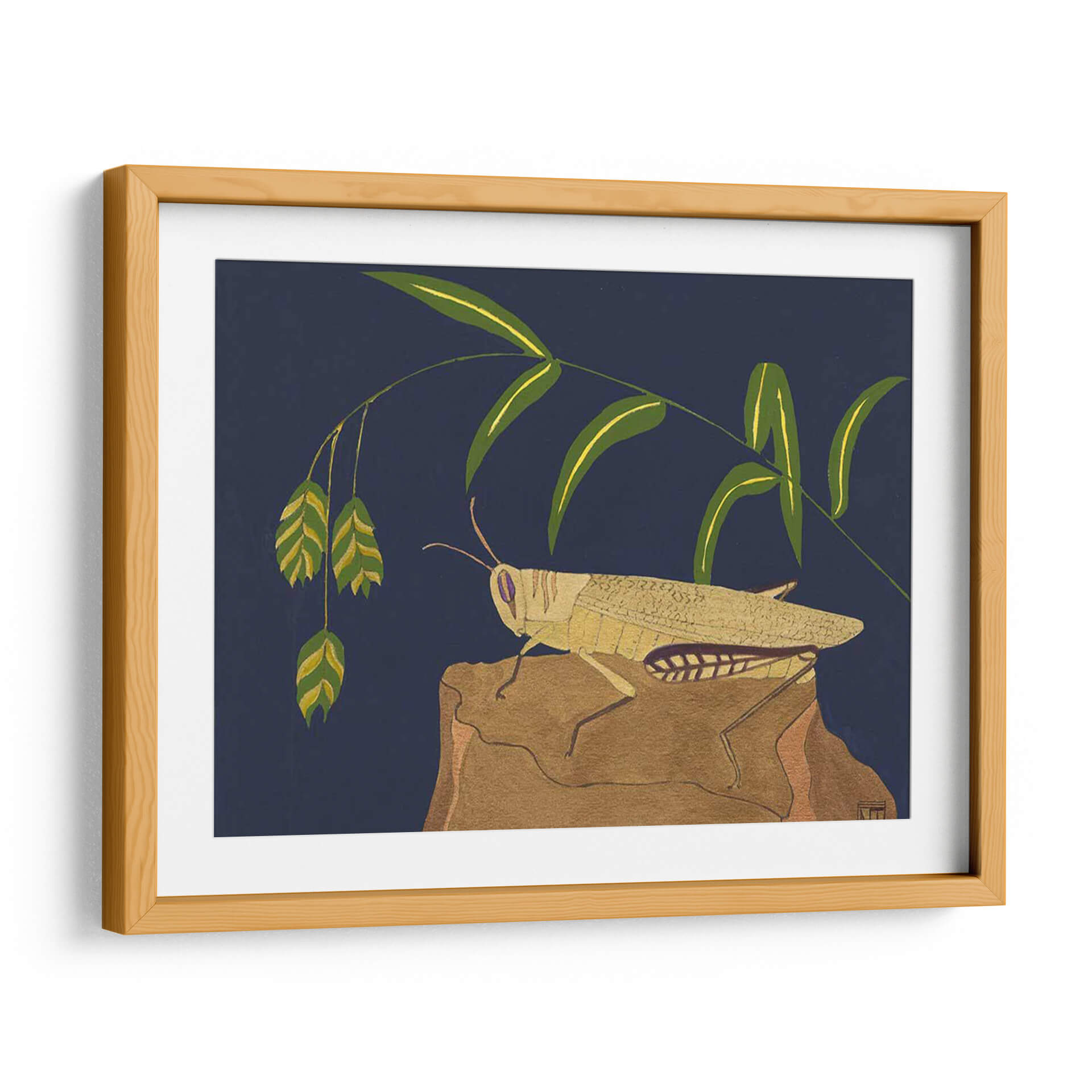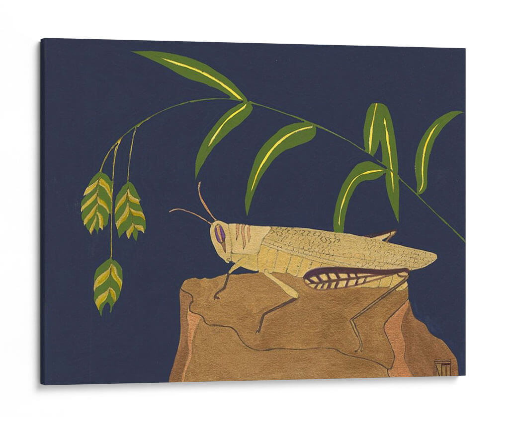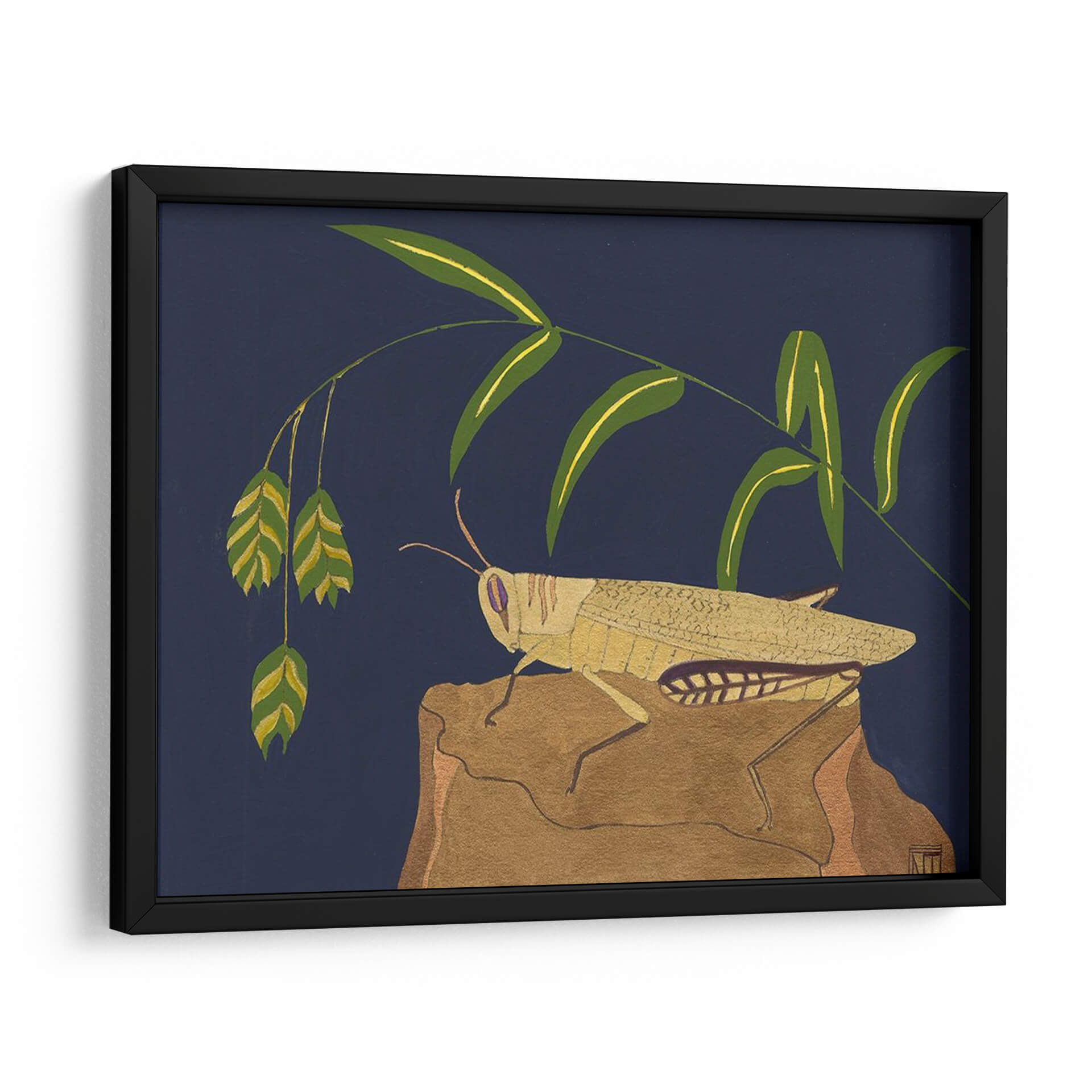 Captura la esencia de la naturaleza con este cautivador cuadro decorativo que presenta un detallado saltamontes posado sobre una roca rústica. La obra, titulada 'Saltamontes Ornamental II' por la artista Nina Tenser, fusiona un estilo realista con toques de arte decorativo, creando una pieza visualmente impactante. La paleta de colores se centra en tonos tierra cálidos para la roca y el insecto, contrastando con un profundo fondo azul marino que resalta la delicadeza de las hojas verdes y amarillas que cuelgan de una rama. Esta obra de arte evoca una sensación de calma y conexión con el mundo natural, ideal para añadir un toque de sofisticación serena a cualquier espacio. Su composición equilibrada y el detallado enfoque en la figura del saltamontes lo convierten en un punto focal intrigante para salas de estar, estudios o incluso oficinas que buscan una atmósfera de tranquilidad y contemplación. Este cuadro decorativo es una excelente opción para los amantes de la naturaleza y del arte que aprecian la belleza en los detalles sutiles y la elegancia atemporal de las representaciones orgánicas, añadiendo un toque de vida y color a la decoración de tu hogar u oficina.