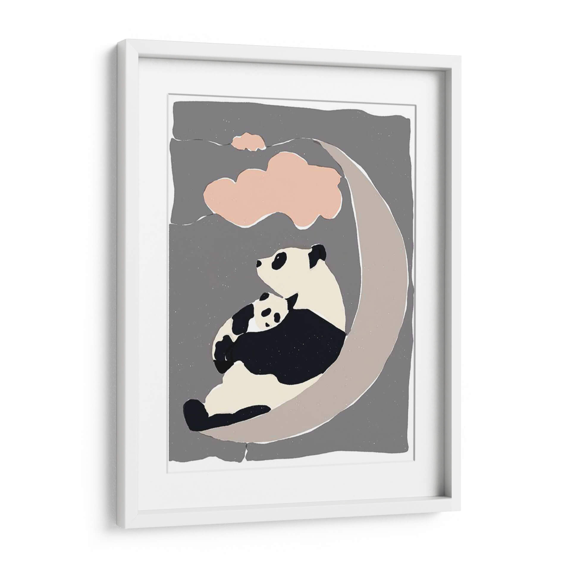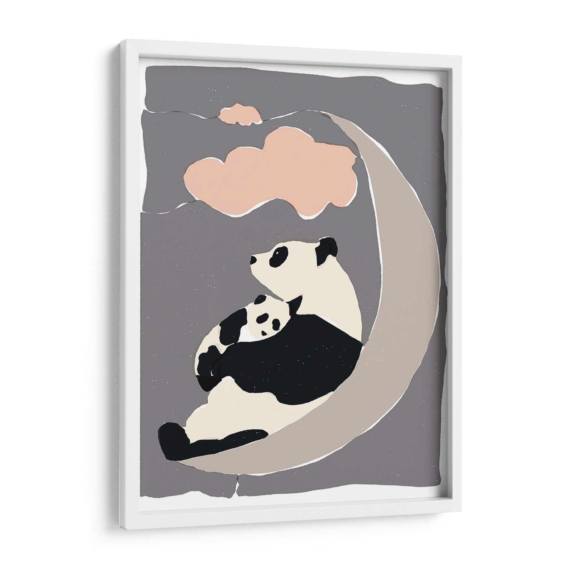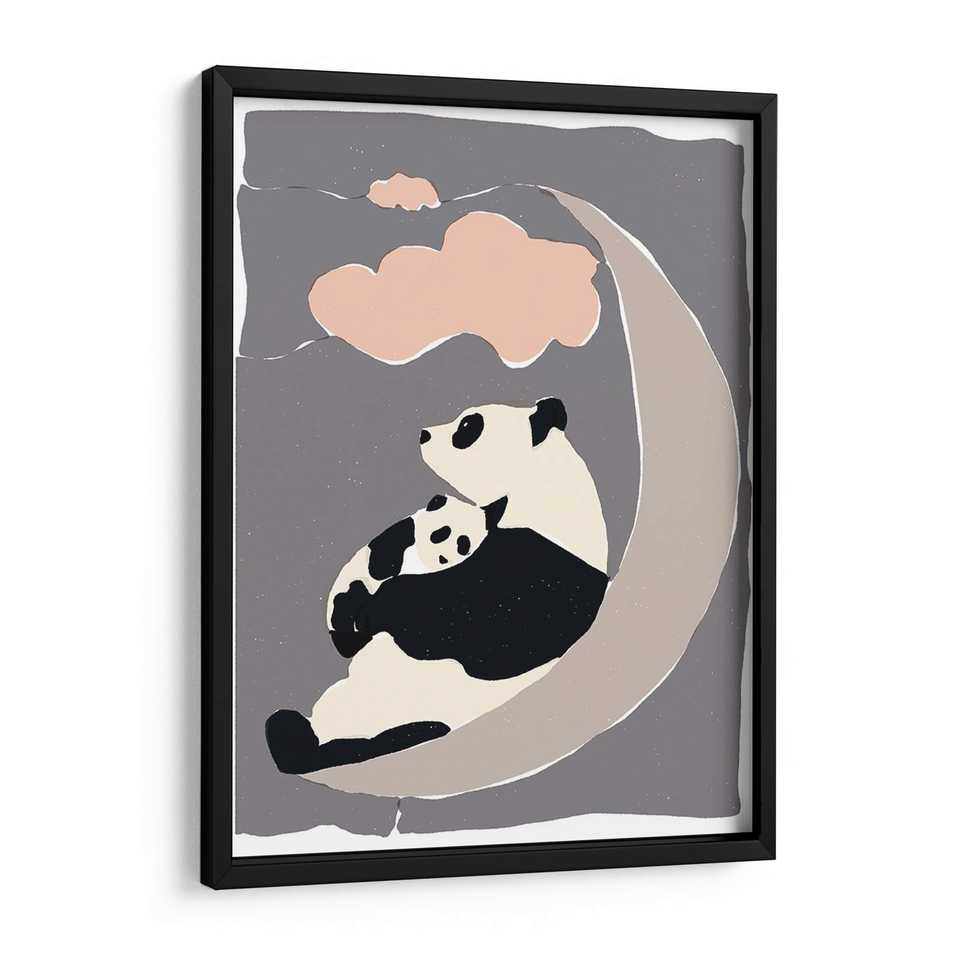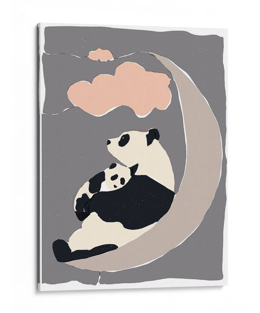 Sumérgete en la ternura y la serenidad con "Soñadores Yo", una obra de arte digital del artista Rob Delamater. Este cuadro decorativo captura un momento íntimo de dos pandas acurrucados en una luna creciente, bajo un cielo estrellado salpicado de nubes rosadas y grises. La paleta de colores, dominada por tonos grises suaves, beige, blanco, negro y toques de rosa pálido, crea una atmósfera de calma y ensueño, perfecta para cualquier espacio que busque un refugio de paz. La composición, con líneas limpias y un estilo gráfico contemporáneo, resalta la conexión y el afecto entre madre e hijo panda. Es una pieza ideal para dormitorios, cuartos infantiles o cualquier rincón del hogar donde se desee infundir una sensación de seguridad y dulzura. Este cuadro decorativo no solo embellece tu pared, sino que también evoca sentimientos de amor incondicional y tranquilidad, convirtiéndose en un punto focal emotivo en tu decoración.