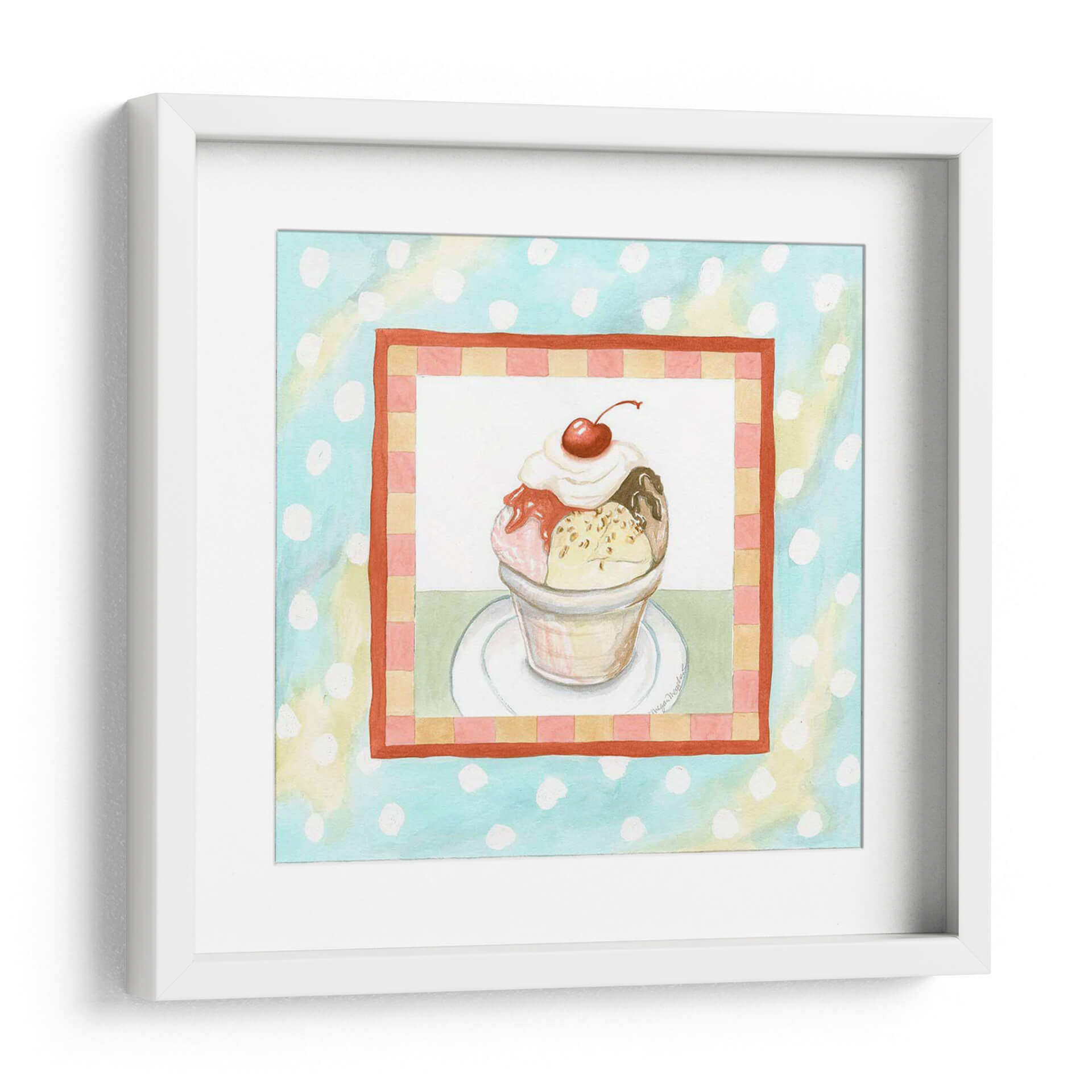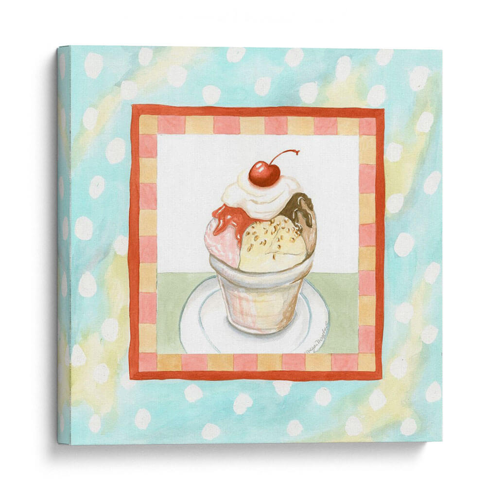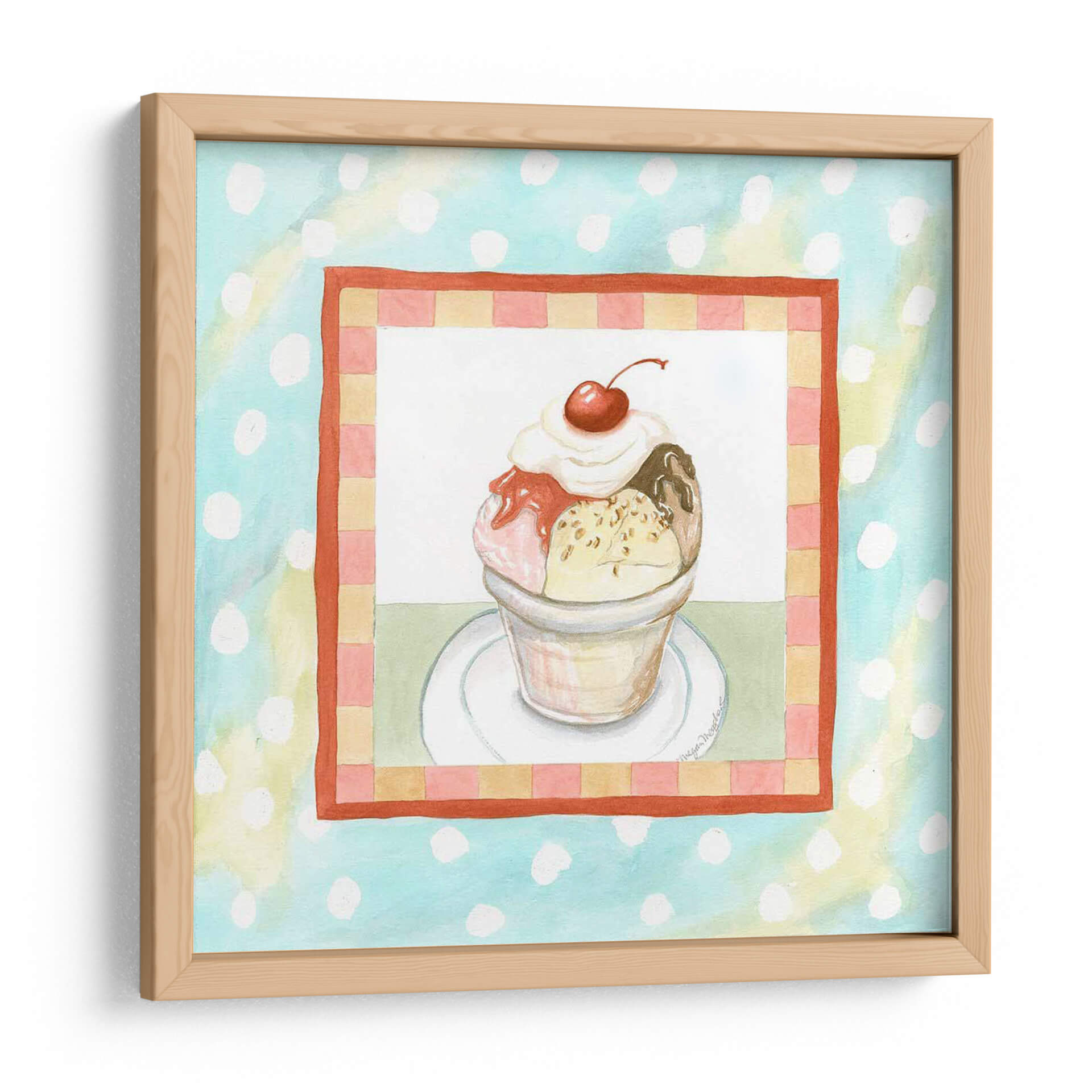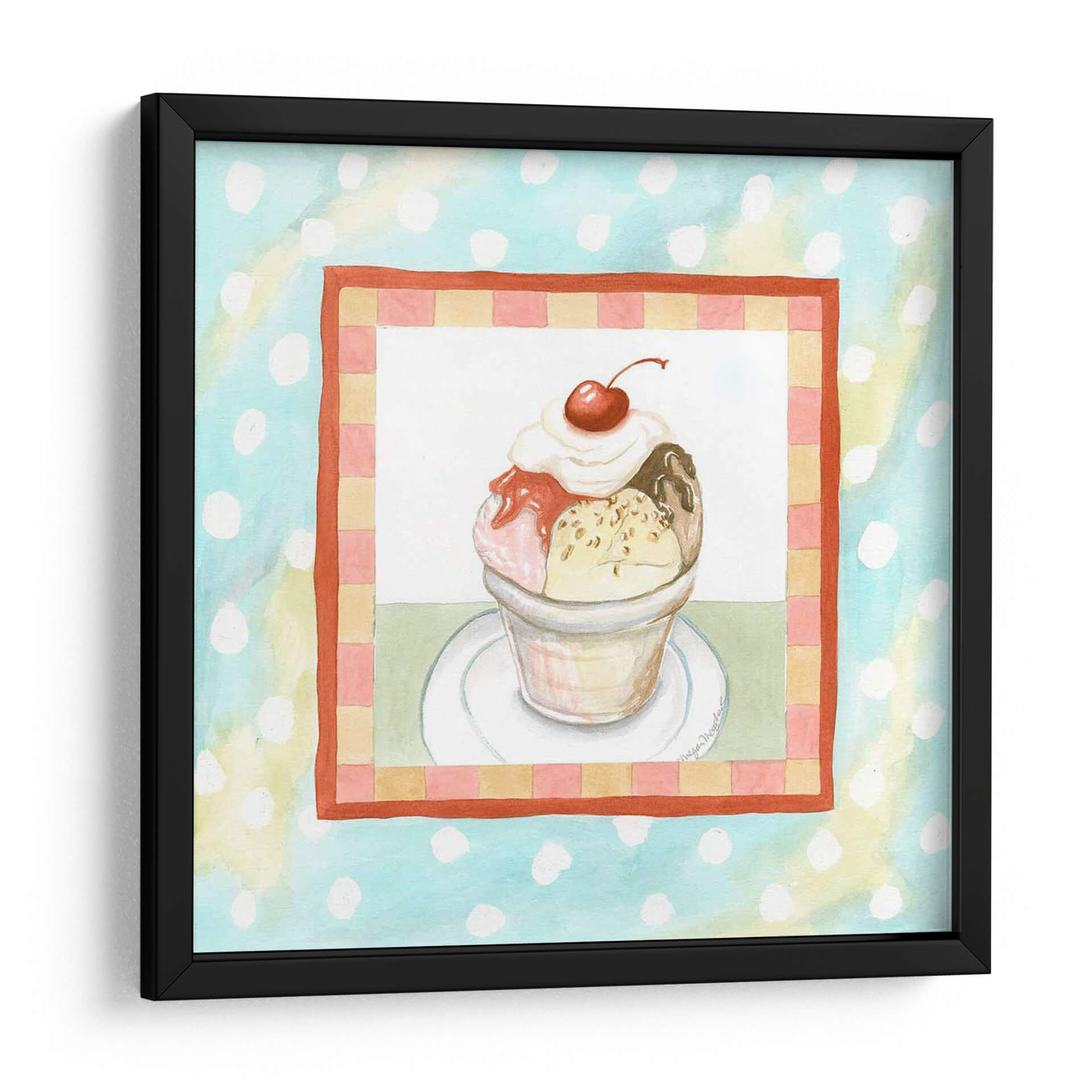 Sumérgete en la dulzura nostálgica con "Sundae de Helado", una encantadora obra de arte de Megan Meagher que captura la esencia de un capricho clásico. Esta pieza evoca una sensación de alegría infantil y placer sencillo. Los colores pastel, predominantemente azules celestes salpicados de blanco y acentos cálidos en tonos melocotón y terracota, crean un ambiente juguetón y acogedor. El enfoque detallado en el sundae, con sus capas de helado de diferentes sabores coronado por una cereza brillante, invita a la contemplación y al deleite visual. El estilo pictórico, que recuerda a la acuarela, aporta una delicadeza única, mientras que la composición centrada en el postre lo convierte en un punto focal irresistible. "Sundae de Helado" es ideal para añadir un toque de color y personalidad a cocinas, comedores o cualquier espacio donde se busque un ambiente ligero y divertido. Es una pieza perfecta para quienes aprecian el arte pop con un toque sentimental o buscan una decoración de pared única que alegre el día. Transforma tu hogar con esta deliciosa representación de un placer atemporal.