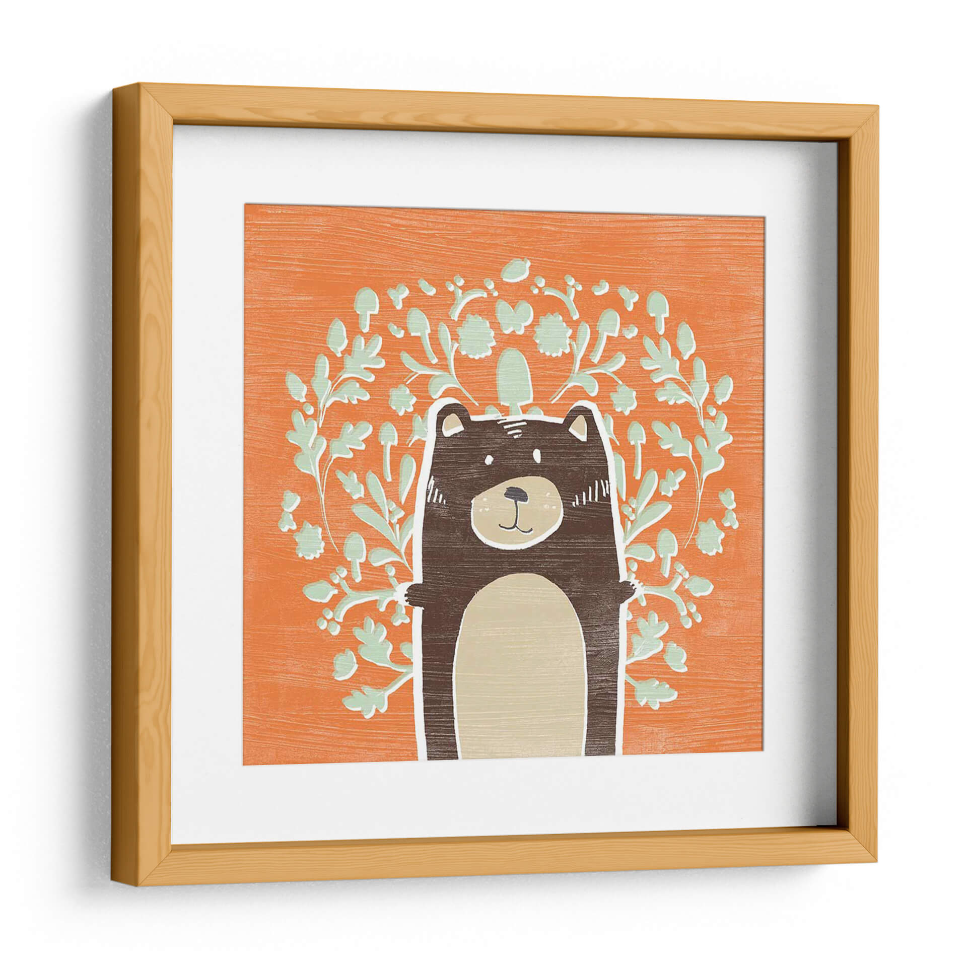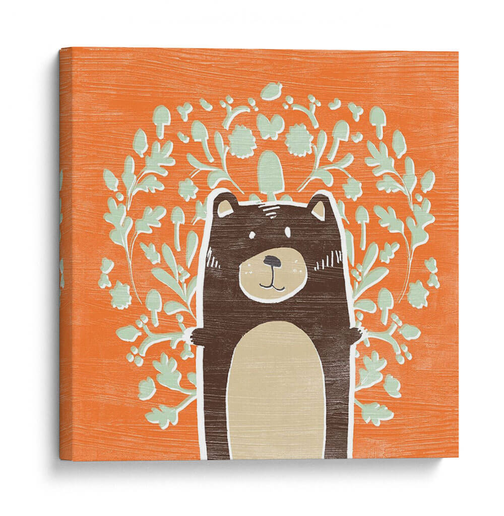 Adéntrate en el encantador mundo de "Woodland Cutie I", una obra de arte digital que irradia calidez y simplicidad. Esta pieza presenta un adorable oso de bosque rodeado por un delicado patrón de hojas y hongos en tonos menta sobre un vibrante fondo naranja texturizado. La composición simétrica y el estilo ilustrativo invitan a la ternura y a una sensación de paz hogareña. Los colores cálidos y terrosos, combinados con los suaves acentos menta, crean una atmósfera acogedora y amigable, perfecta para espacios que buscan un toque de naturaleza y dulzura. Ideal para la habitación de un niño, una guardería, o cualquier rincón de tu hogar donde desees infundir alegría y un aire de cuento. Este cuadro decorativo no solo embellece tu pared, sino que también evoca sentimientos de inocencia y conexión con la naturaleza. Su diseño encantador lo convierte en un punto focal único, aportando carácter y una sonrisa a tu decoración. Añade esta pieza a tu colección y deja que su magia campestre ilumine tu vida.