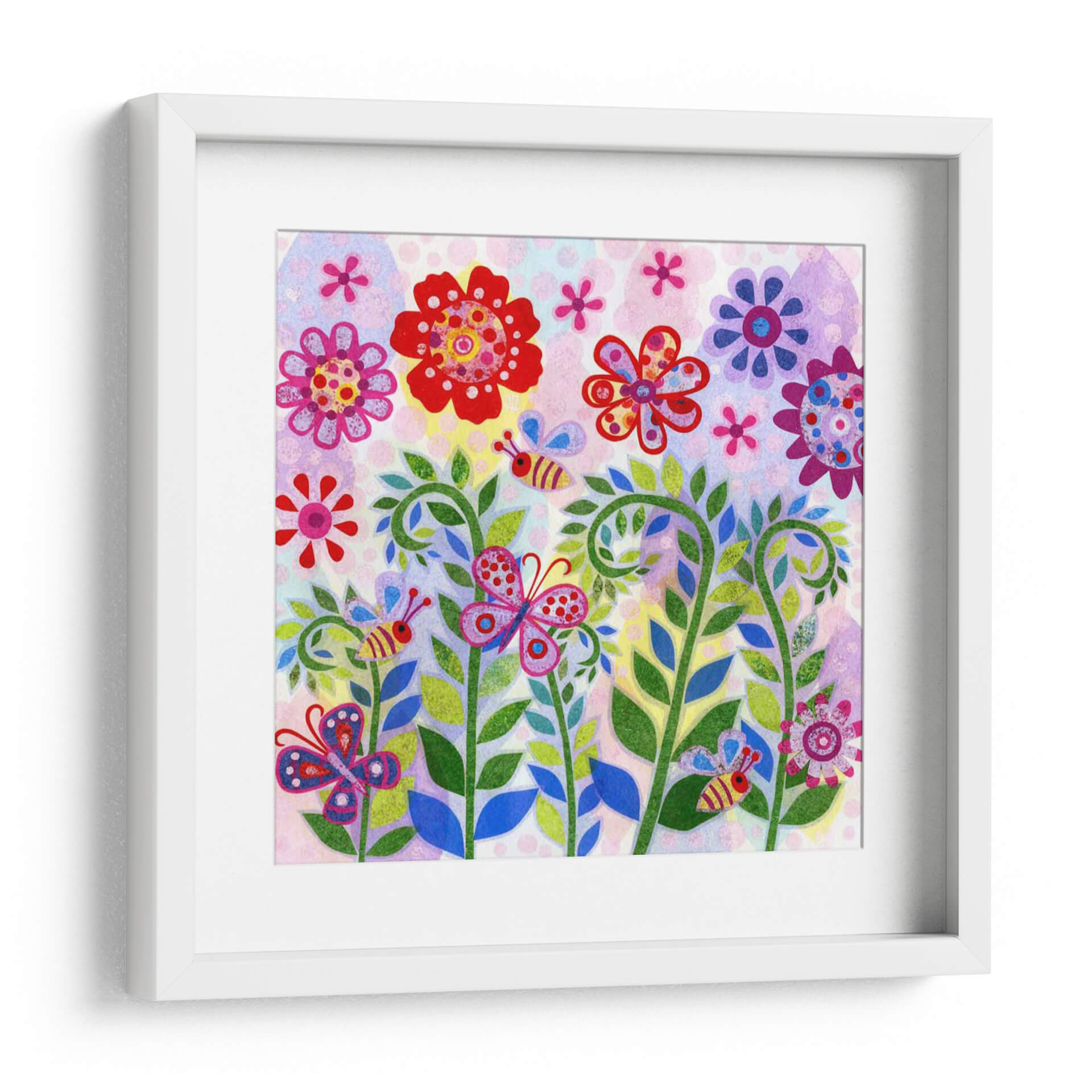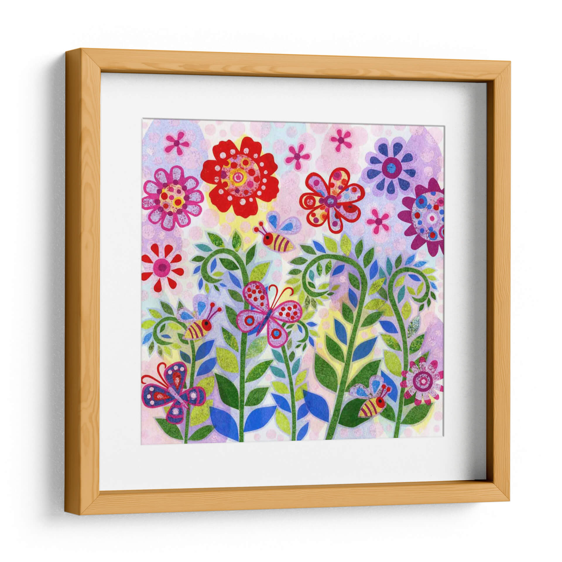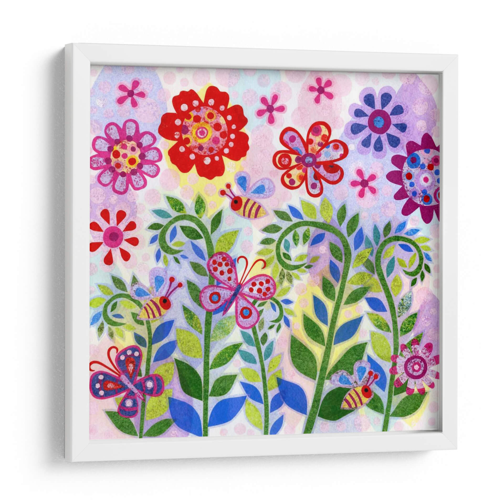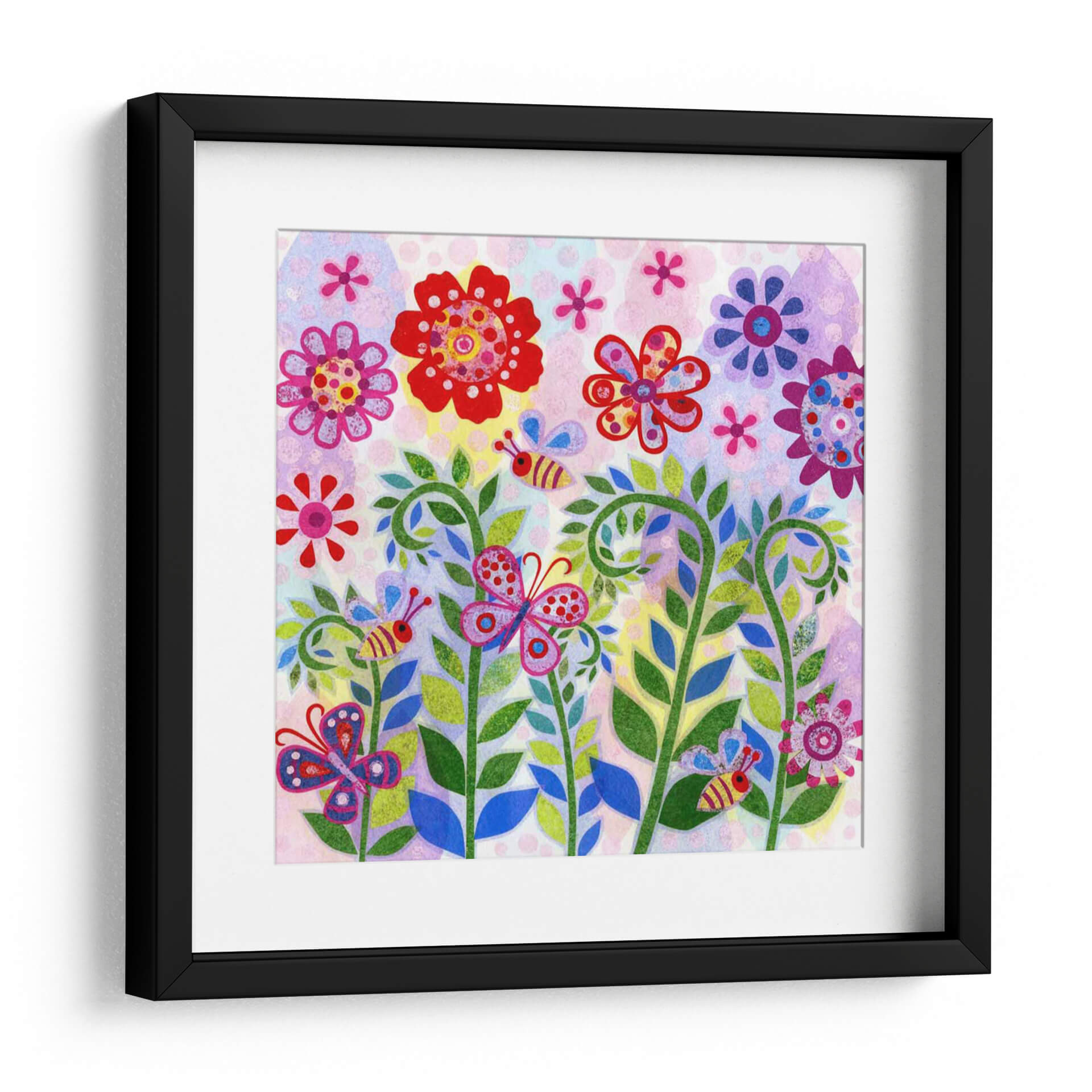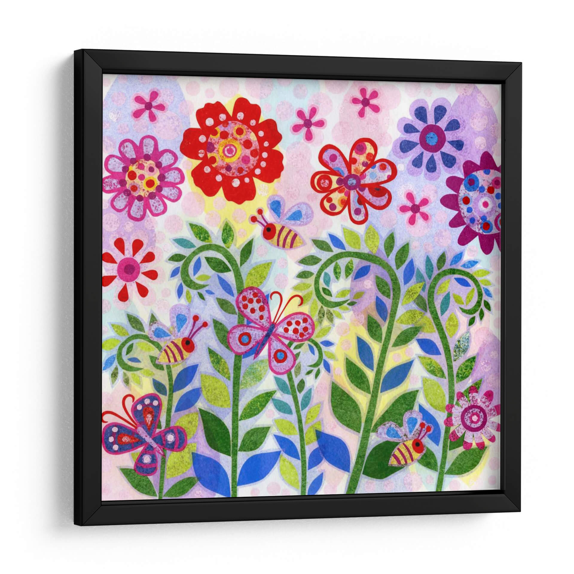Emb uevo en un viaje visual con 'Zumbido Alrededor', una obra de arte vibrante y juguetona del artista Kim Conway. Esta pieza cautiva con su explosión de colores alegres, dominada por rosas, rojos, azules y amarillos intensos, que crean una atmósfera de pura vitalidad y optimismo. Las delicadas representaciones de mariposas revoloteando entre flores estilizadas y abejas laboriosas evocan la belleza y la serenidad de un jardín en plena efervescencia. La composición, llena de curvas orgánicas y formas circulares repetidas, aporta un ritmo visual dinámico y armonioso que invita a la contemplación. Ideal para infundir alegría y color en cualquier espacio, desde una habitación infantil hasta una sala de estar moderna o una oficina que necesite un toque de energía creativa. Este cuadro decorativo abstracto es una celebración de la naturaleza y la vida, perfecto para quienes buscan añadir un elemento de fantasía y encanto a su decoración. Transforma tu hogar en un oasis de felicidad con esta pieza única que resuena con la energía positiva y la belleza del mundo natural.