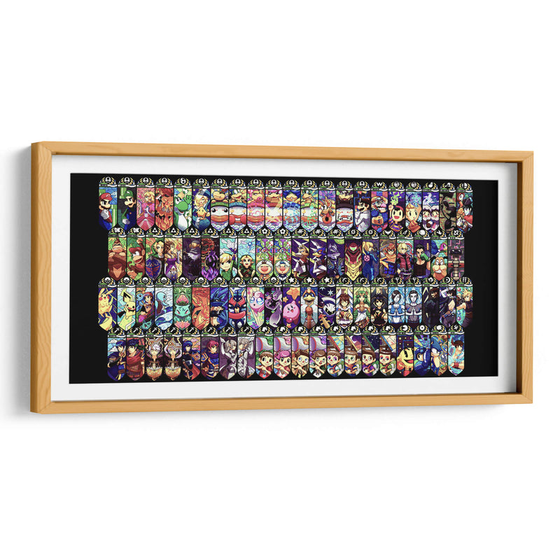Sumérgete en un universo vibrante y lleno de nostalgia con este impresionante cuadro decorativo. La obra, titulada 'Super Smash Bros Universe', es una celebración visual de icónicos personajes de videojuegos, presentados en un estilo que evoca la belleza de los vitrales. Cada panel individualmente detallado muestra una recopilación meticulosa de figuras reconocibles, dispuestas en una composición armoniosa que atrae la mirada y despierta el espíritu del juego. Los colores son intensos y variados, creando un mosaico dinámico que aporta energía y carácter a cualquier espacio. Este cuadro es perfecto para los amantes de los videojuegos, coleccionistas o cualquiera que busque añadir un toque de fantasía y color a su hogar u oficina. Imagina cómo esta pieza se convertiría en el punto focal de tu sala de estar, tu estudio o tu habitación, invitando a la conversación y recordando épicas batallas y momentos memorables. Su estilo único y la calidad de su representación lo convierten en una adición excepcional para un ambiente moderno y divertido. Este cuadro decorativo es más que una simple imagen; es una puerta de entrada a un mundo de aventuras y recuerdos que transformará tu decoración.