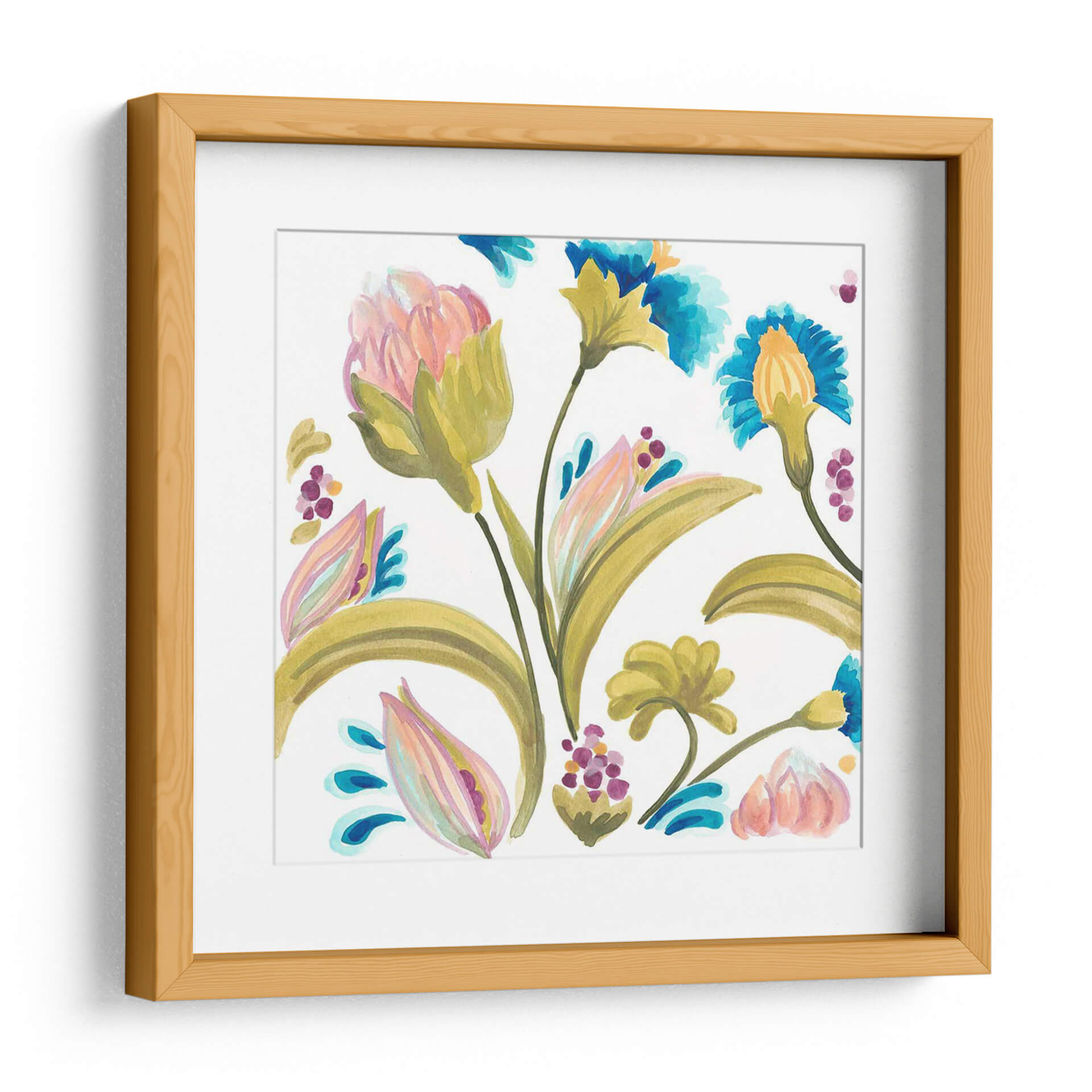Embellece tu hogar con el cuadro decorativo "Abbey Azulejos Florales I", una obra vibrante y llena de vida del artista June Erica Vess. Esta pieza captura la esencia de un jardín botánico estilizado, con flores que evocan la delicadeza de los azulejos tradicionales pero con un toque contemporáneo. La paleta de colores, dominada por verdes amarillentos, azules intensos, rosas suaves y toques de morado, crea una atmósfera alegre y refrescante. Las formas florales, pintadas con trazos sueltos y expresivos que recuerdan a la acuarela, añaden un aire de sofisticación y originalidad. La composición, que entrelaza diversas flores y hojas sobre un fondo blanco nítido, aporta luminosidad y amplitud a cualquier espacio. "Abbey Azulejos Florales I" es ideal para quienes buscan añadir un toque de color y naturaleza a salones, comedores o incluso oficinas, aportando una sensación de calma y optimismo. Este cuadro decorativo es una invitación a la belleza natural reinterpretada con un estilo artístico único, perfecto para coleccionistas de arte contemporáneo y amantes de la decoración floral que desean una pieza que destaque por su originalidad y su capacidad para transformar ambientes.
