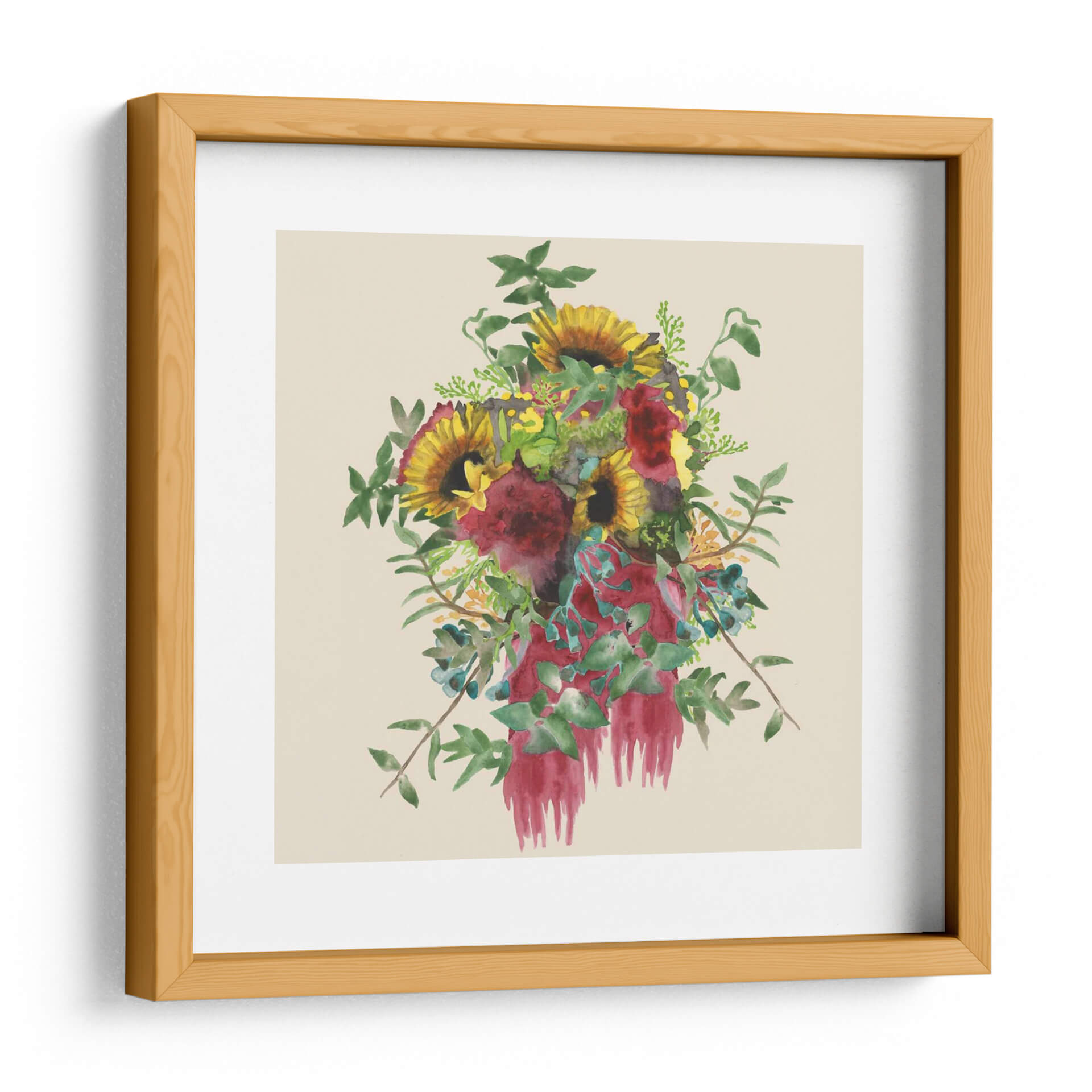 Sumérgete en la delicadeza y vitalidad de "Acuarela Floral Spray Iv", una obra de arte de Naomi McCavitt que captura la esencia de la primavera en su máximo esplendor. Esta pieza, con su técnica de acuarela fluida y pinceladas expresivas, presenta un vibrante arreglo floral dominado por girasoles radiantes y profundos tonos burdeos, complementados por el verde exuberante de hojas y ramitas. Los toques sutiles de azul y amarillo añaden profundidad y contraste, creando una composición armoniosa que irradia alegría y frescura. La suavidad de la acuarela, combinada con la audacia de los colores, evoca una sensación de calma y optimismo, perfecta para infundir vida y color en cualquier espacio. Ideal para salones, dormitorios o estudios, este cuadro decorativo es una invitación a contemplar la belleza efímera de la naturaleza. Su estilo contemporáneo y su atmósfera etérea lo convierten en una adición versátil y encantadora a la decoración del hogar, aportando un toque de sofisticación artística y serenidad natural. Descubre cómo esta acuarela puede transformar tu entorno, llenándolo de luz y una energía positiva que perdura.