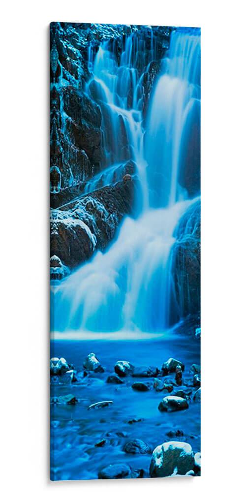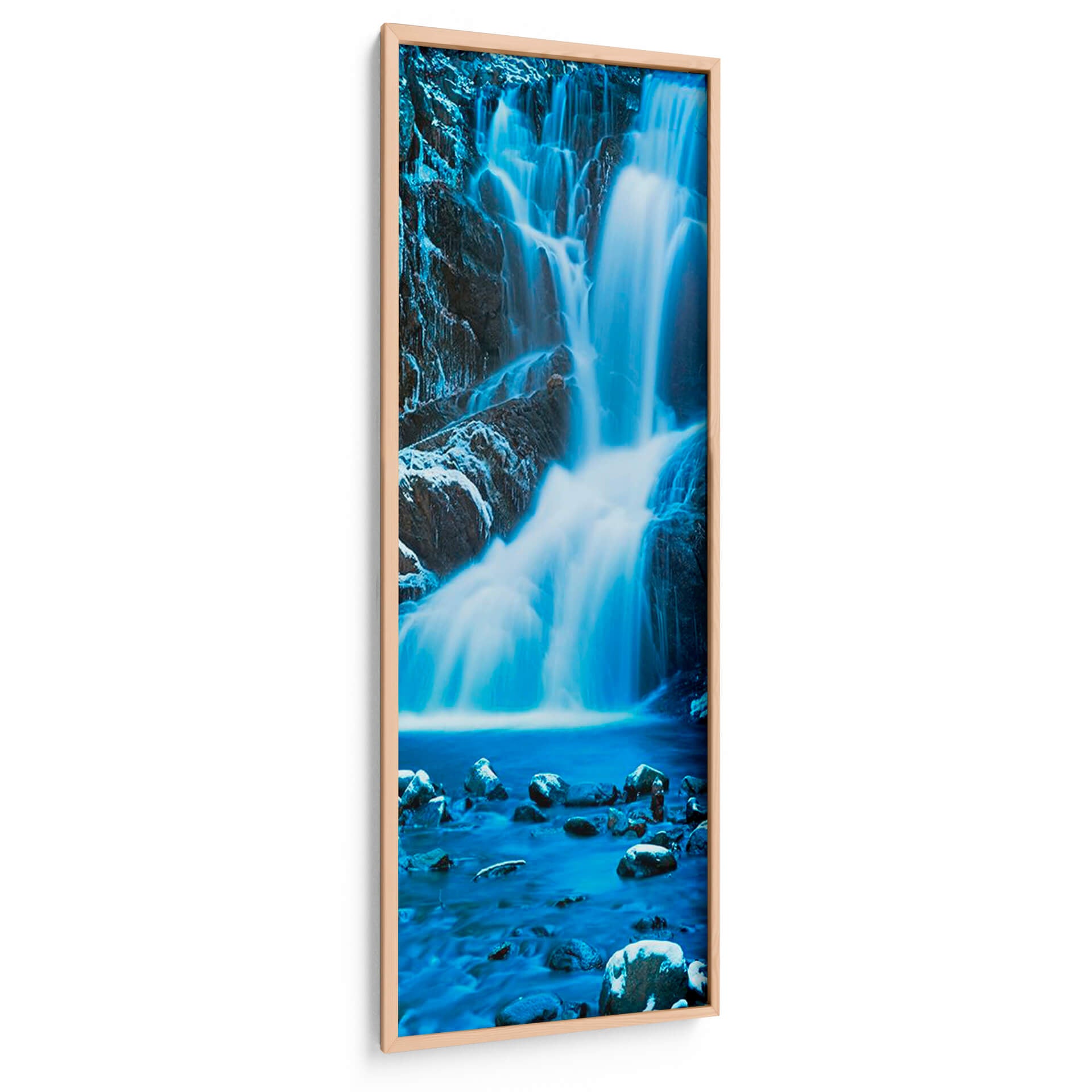 Sumérgete en la serenidad y la fuerza de la naturaleza con 'Agua Vertical III', una obra maestra de James McLoughlin que captura la majestuosidad de una cascada en pleno descenso. Este cuadro decorativo te transportará a un paisaje natural de ensueño, donde el agua cristalina fluye con una energía hipnótica sobre rocas oscuras y cubiertas de escarcha. La paleta de azules intensos, desde el turquesa vibrante del agua en movimiento hasta los tonos profundos de las sombras rocosas, crea una atmósfera de calma y frescura inigualable. La técnica fotográfica, que utiliza una larga exposición para suavizar el agua, le confiere un aire etéreo y casi irreal, invitando a la contemplación. Ideal para aquellos que buscan un punto focal impactante y relajante en su hogar u oficina, esta pieza evoca la pureza y el poder de los elementos. 'Agua Vertical III' es más que una simple decoración de pared; es una ventana a un oasis de tranquilidad, una invitación a pausar y conectar con la belleza indómita del mundo natural. Añade un toque de elegancia y serenidad a tu espacio con este impresionante cuadro decorativo que celebra la belleza efímera del agua en movimiento.