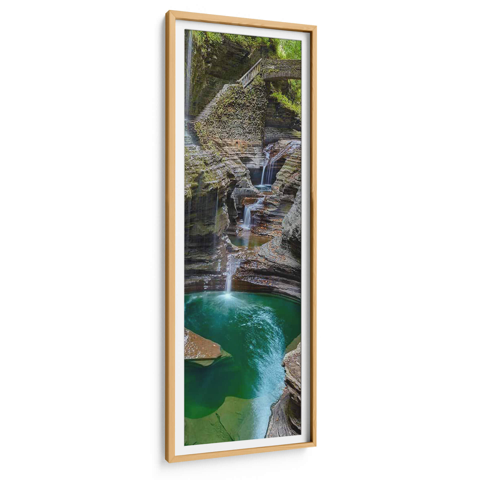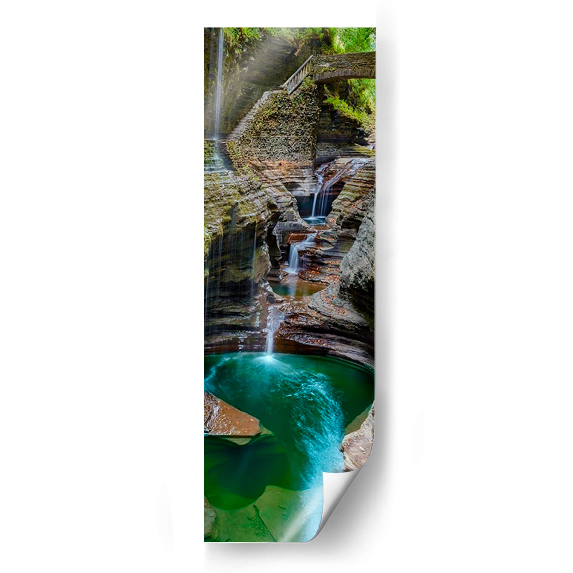 Sumérgete en la majestuosidad de 'Agua Vertical Ix', una obra de James McLoughlin que captura la serena belleza de un cañón esculpido por la naturaleza. Este cuadro decorativo te transporta a un remanso de paz, donde cascadas serpenteantes se deslizan por formaciones rocosas de tonos tierra y verdes intensos, desembocando en una poza de un vibrante color turquesa. La composición vertical y la técnica fotográfica resaltan la profundidad y la textura de la escena, invitando a la contemplación y a la conexión con el entorno natural. Los colores, que varían desde los ocres y marrones de las rocas hasta el verde esmeralda y el azul eléctrico del agua en movimiento, crean una paleta armoniosa y refrescante. Ideal para espacios que buscan transmitir calma y vitalidad, como salones, dormitorios o incluso oficinas que necesiten un toque de naturaleza y serenidad. 'Agua Vertical Ix' no es solo una pieza decorativa, sino una ventana a la tranquilidad y la fuerza del agua en su estado más puro, un recordatorio de la belleza efímera y poderosa de nuestros paisajes.