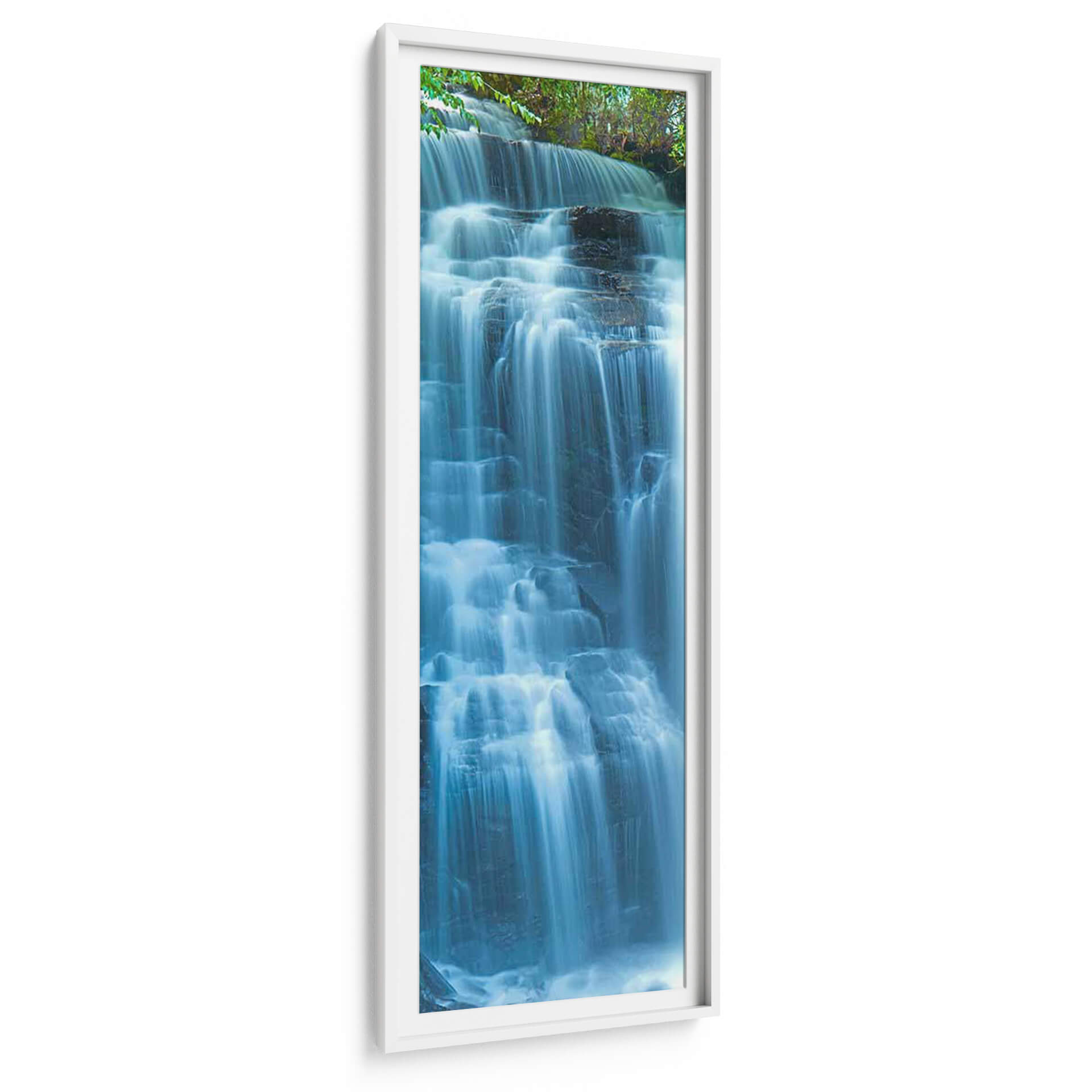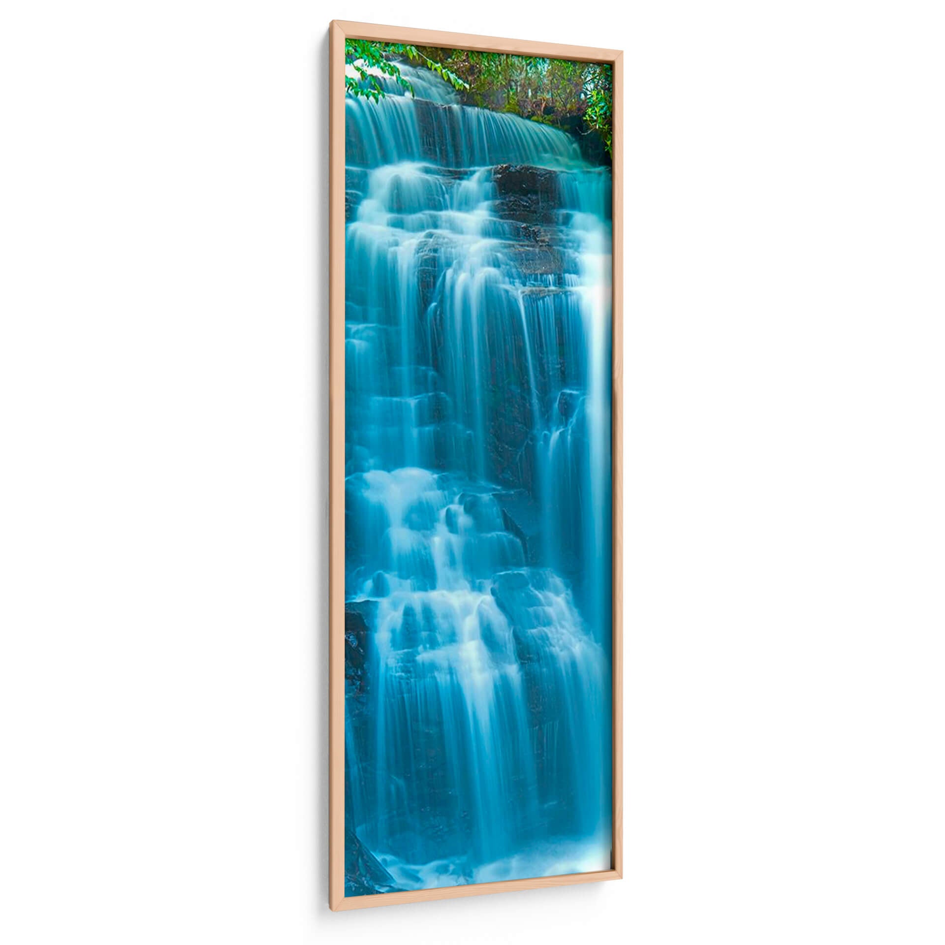 Sumérgete en la serena belleza de "Agua Vertical Vi" de James McLoughlin, una obra de arte que captura la fuerza y la calma de una cascada en movimiento. Los tonos vibrantes de azul, que van desde el turquesa brillante hasta el índigo profundo, se mezclan con las rocas oscuras y el verde exuberante de la vegetación circundante, creando una atmósfera de frescura y vitalidad. La técnica de larga exposición empleada por el artista difumina el agua en delicadas cortinas etéreas, aportando una sensación de fluidez y movimiento perpetuo. Este cuadro decorativo, con su composición vertical y su estética contemporánea, es ideal para añadir un toque de naturaleza y tranquilidad a cualquier espacio. Imagina esta pieza como un punto focal en tu sala de estar, un remanso de paz en tu dormitorio, o una fuente de inspiración en tu oficina. "Agua Vertical Vi" no es solo una imagen, es una invitación a la contemplación, un recordatorio de la majestuosidad del mundo natural y un elemento decorativo que aportará elegancia y serenidad a tu hogar. Es una elección perfecta para quienes buscan arte de pared que combine la belleza estética con una profunda conexión emocional con la naturaleza, transformando cualquier habitación en un oasis de paz y estilo. Descubre cómo este cuadro puede revitalizar tus espacios.