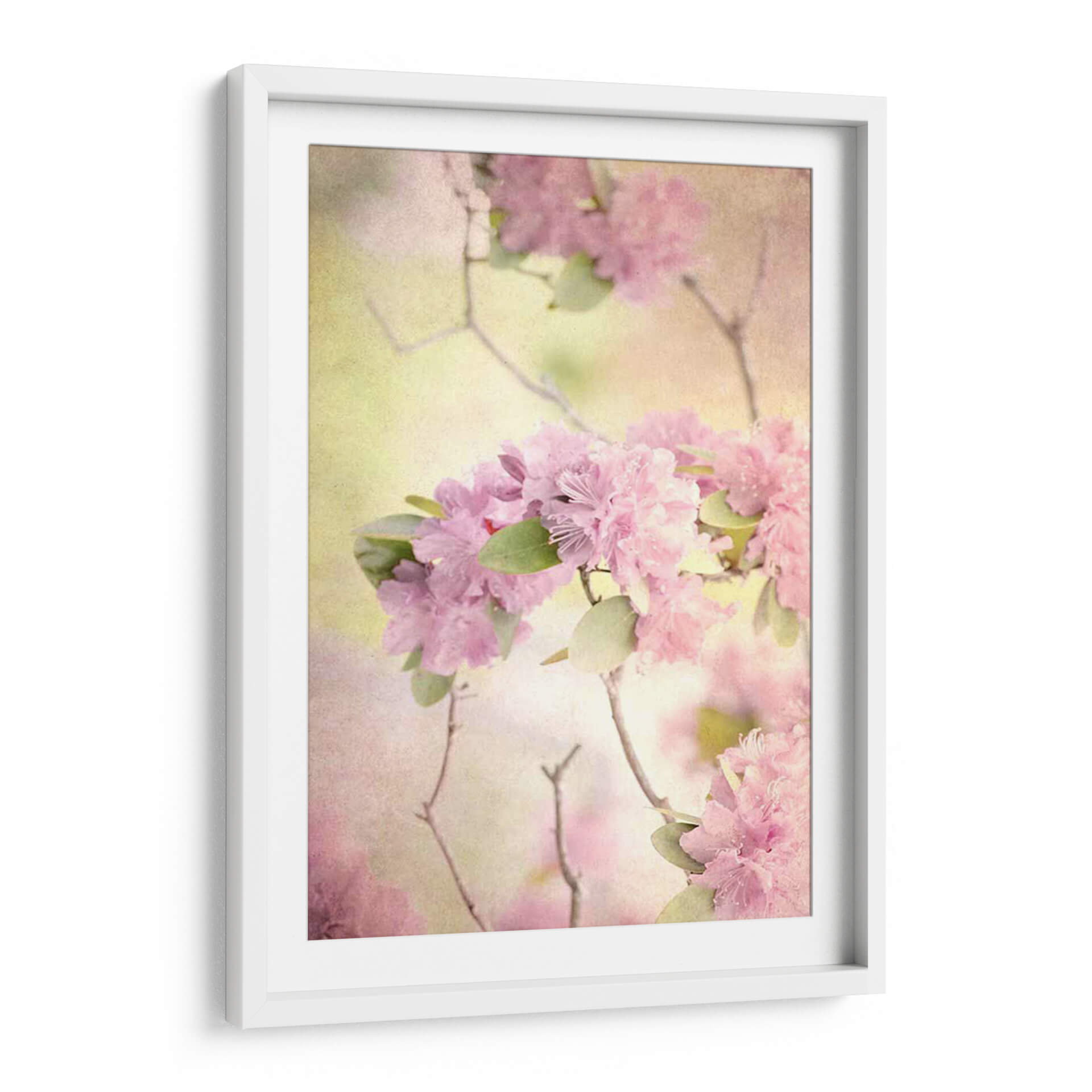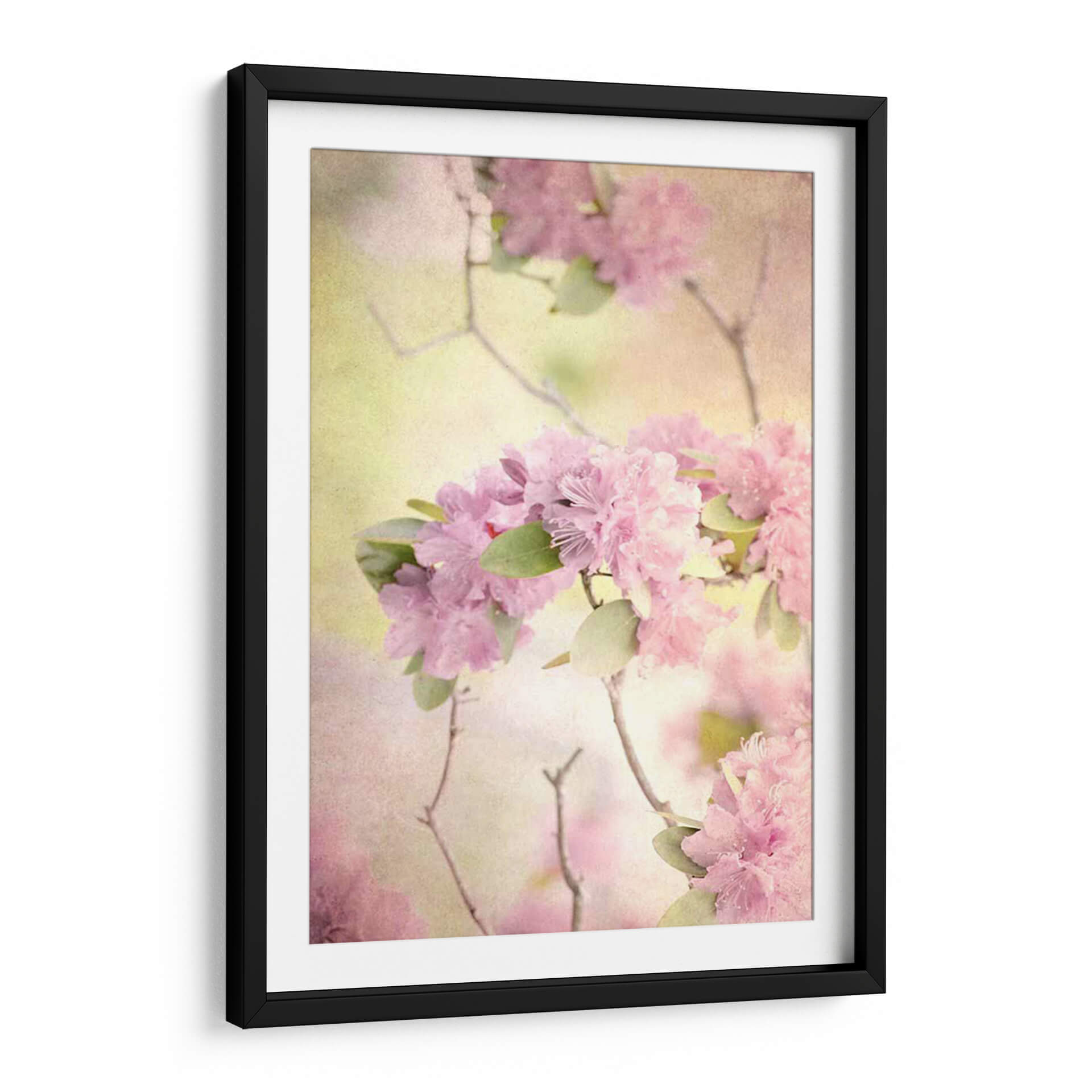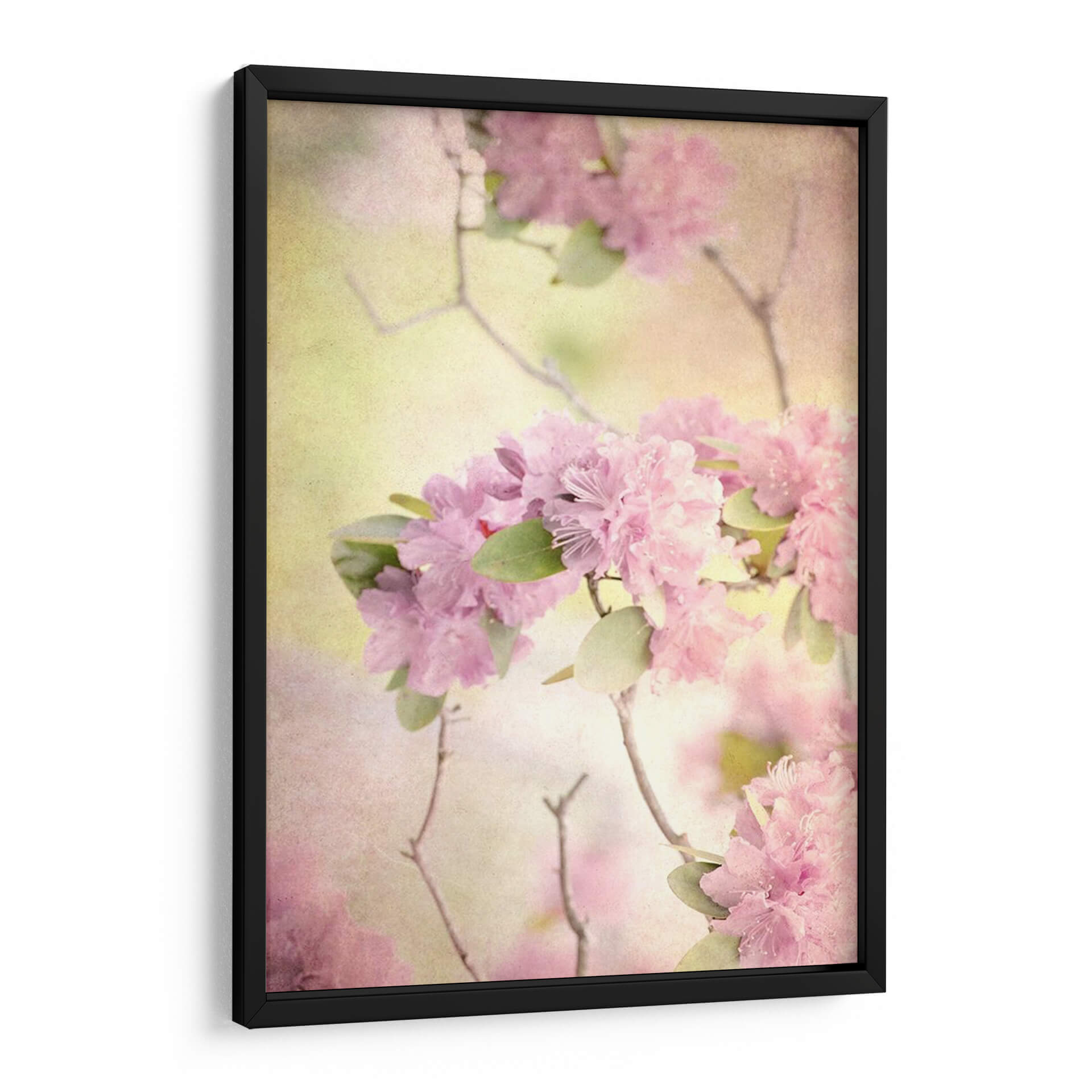 Sumérgete en la delicadeza y serenidad de "Alcanzando El Cielo I", una obra de arte cautivadora que captura la esencia efímera de las flores rosadas en plena floración. Judy Stalus nos transporta a un jardín etéreo donde la luz se filtra suavemente, bañando los pétalos en tonos pastel y creando una atmósfera de ensueño. La composición, centrada en exuberantes racimos de flores de un vibrante rosa, se complementa con sutiles hojas verdes y ramas delicadas que se entrelazan, añadiendo profundidad y movimiento a la pieza. La paleta de colores, dominada por suaves rosas, amarillos pálidos y toques de verde, evoca una sensación de paz, dulzura y renovación, perfecta para añadir un toque de calma a cualquier espacio. Este cuadro decorativo abstracto floral es ideal para crear un ambiente relajante en tu dormitorio, un rincón de meditación o para infundir serenidad en una sala de estar. Su estilo evocador y romántico lo convierte en una elección excepcional para quienes buscan un arte que inspire tranquilidad y belleza natural. Ideal para quienes buscan decoración de pared con flores, arte abstracto floral, cuadros para dormitorio, o piezas que transmitan calma y elegancia.