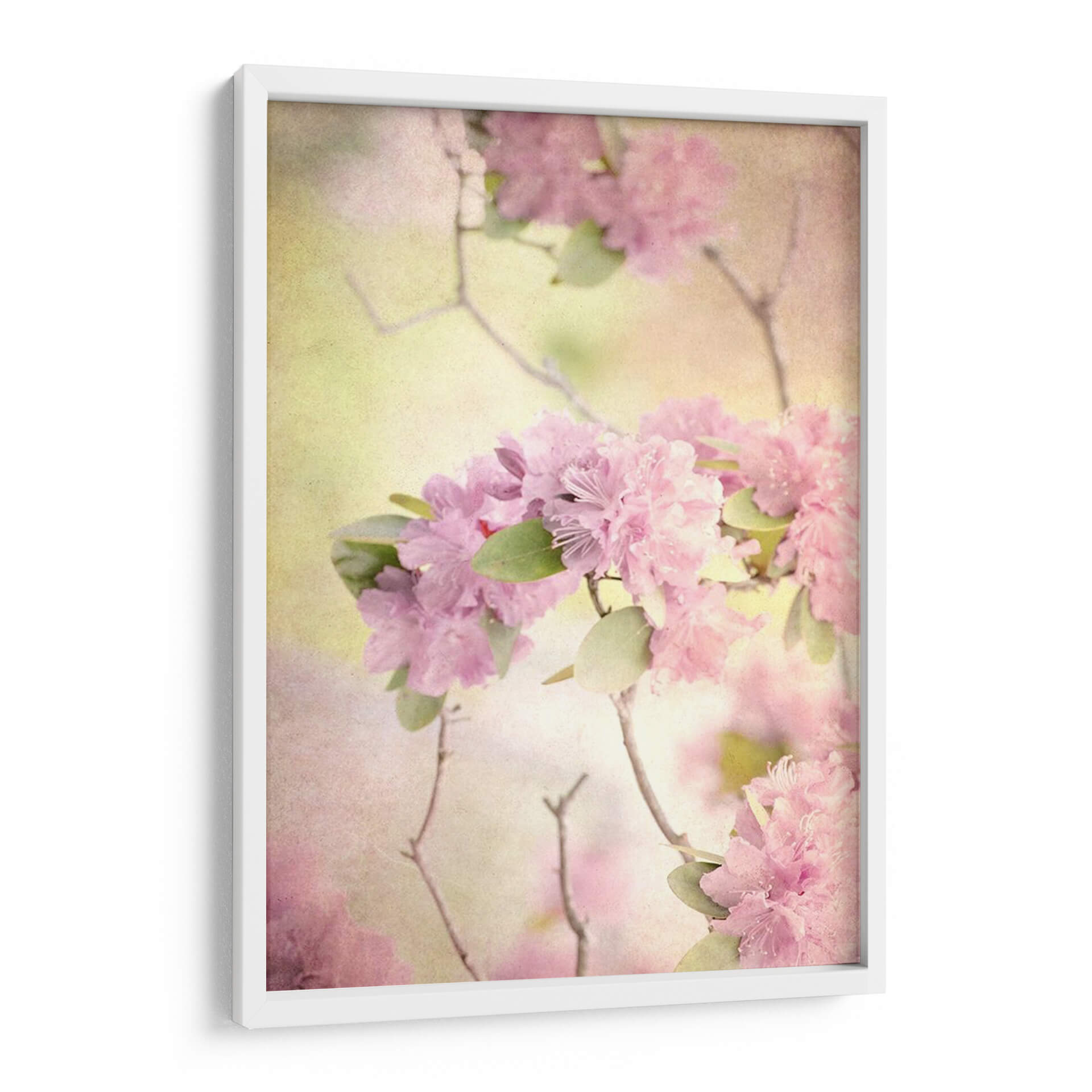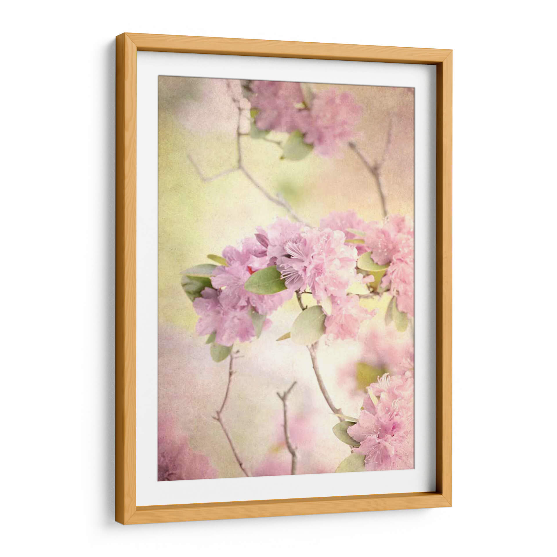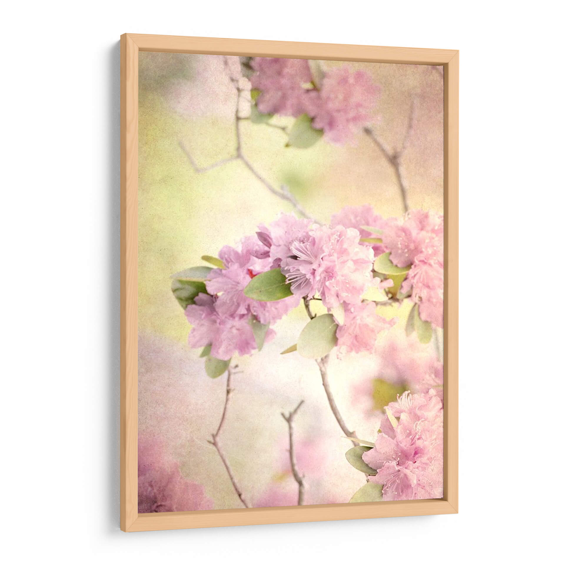 Sumérgete en la delicadeza y serenidad de "Alcanzando El Cielo I", una obra de arte cautivadora que captura la esencia efímera de las flores rosadas en plena floración. Judy Stalus nos transporta a un jardín etéreo donde la luz se filtra suavemente, bañando los pétalos en tonos pastel y creando una atmósfera de ensueño. La composición, centrada en exuberantes racimos de flores de un vibrante rosa, se complementa con sutiles hojas verdes y ramas delicadas que se entrelazan, añadiendo profundidad y movimiento a la pieza. La paleta de colores, dominada por suaves rosas, amarillos pálidos y toques de verde, evoca una sensación de paz, dulzura y renovación, perfecta para añadir un toque de calma a cualquier espacio. Este cuadro decorativo abstracto floral es ideal para crear un ambiente relajante en tu dormitorio, un rincón de meditación o para infundir serenidad en una sala de estar. Su estilo evocador y romántico lo convierte en una elección excepcional para quienes buscan un arte que inspire tranquilidad y belleza natural. Ideal para quienes buscan decoración de pared con flores, arte abstracto floral, cuadros para dormitorio, o piezas que transmitan calma y elegancia.