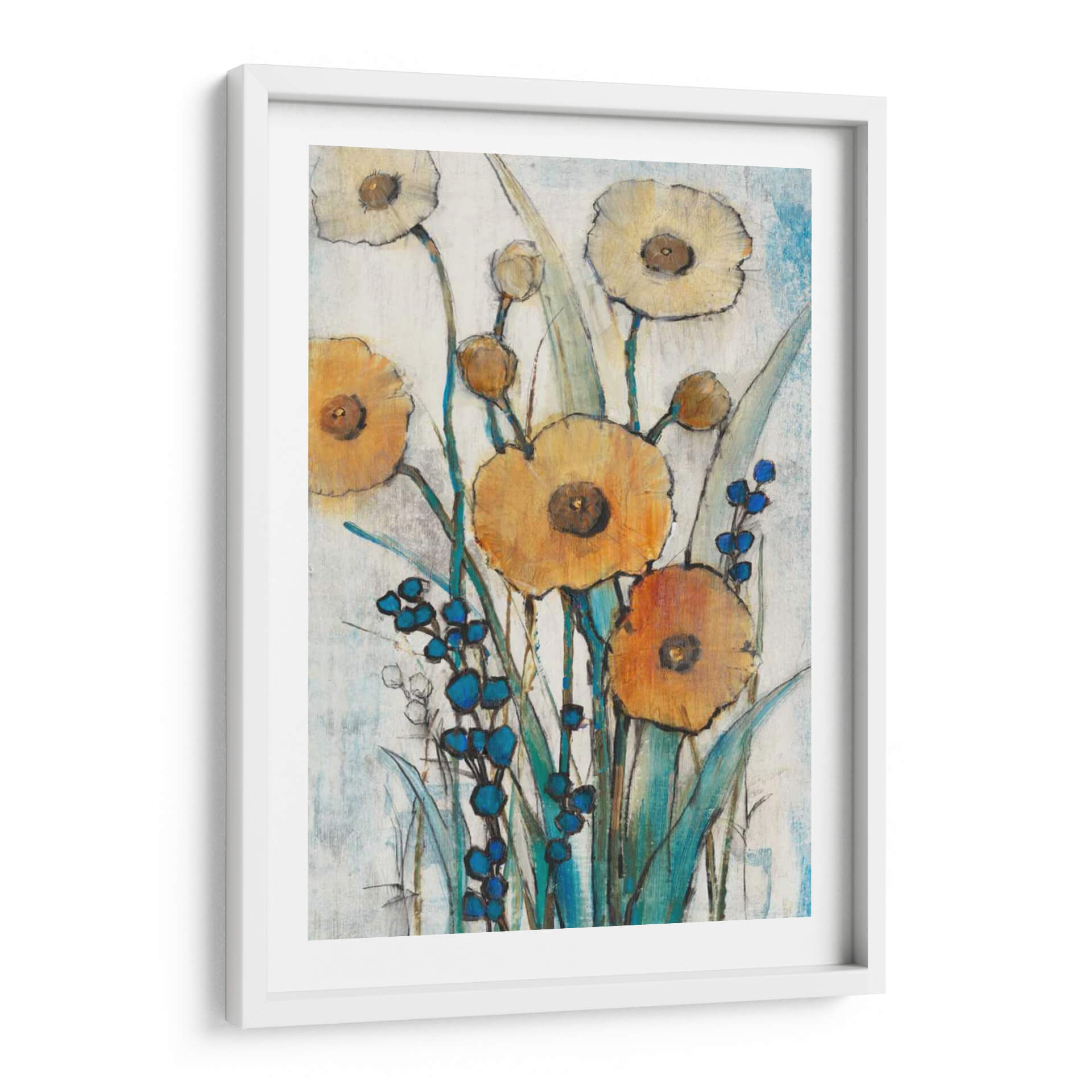Sumérgete en la vitalidad de la naturaleza con "Alegría De Primavera Yo", una obra de arte que captura la esencia de la estación en su máxima expresión. Este cuadro decorativo presenta un vibrante conjunto de flores amarillas y ocres, con centros oscuros y pétalos de textura rica, rodeadas por delicados brotes azules y follaje verde azulado. La técnica pictórica evoca un estilo contemporáneo con toques de expresionismo, donde las pinceladas visibles y las líneas de contorno negro aportan profundidad y carácter. El fondo texturizado en tonos blancos y grises claros con sutiles matices celestes crea un contraste que realza la vivacidad de las flores y bayas. "Alegría De Primavera Yo" irradia una atmósfera de optimismo y frescura, ideal para infundir energía positiva en cualquier espacio. Perfecta como pieza focal en una sala de estar moderna, un comedor luminoso o incluso un despacho que busque inspiración, esta obra es una celebración del renacimiento floral. Su paleta de colores cálidos y fríos equilibrados la convierte en una adición versátil y cautivadora para tu decoración.