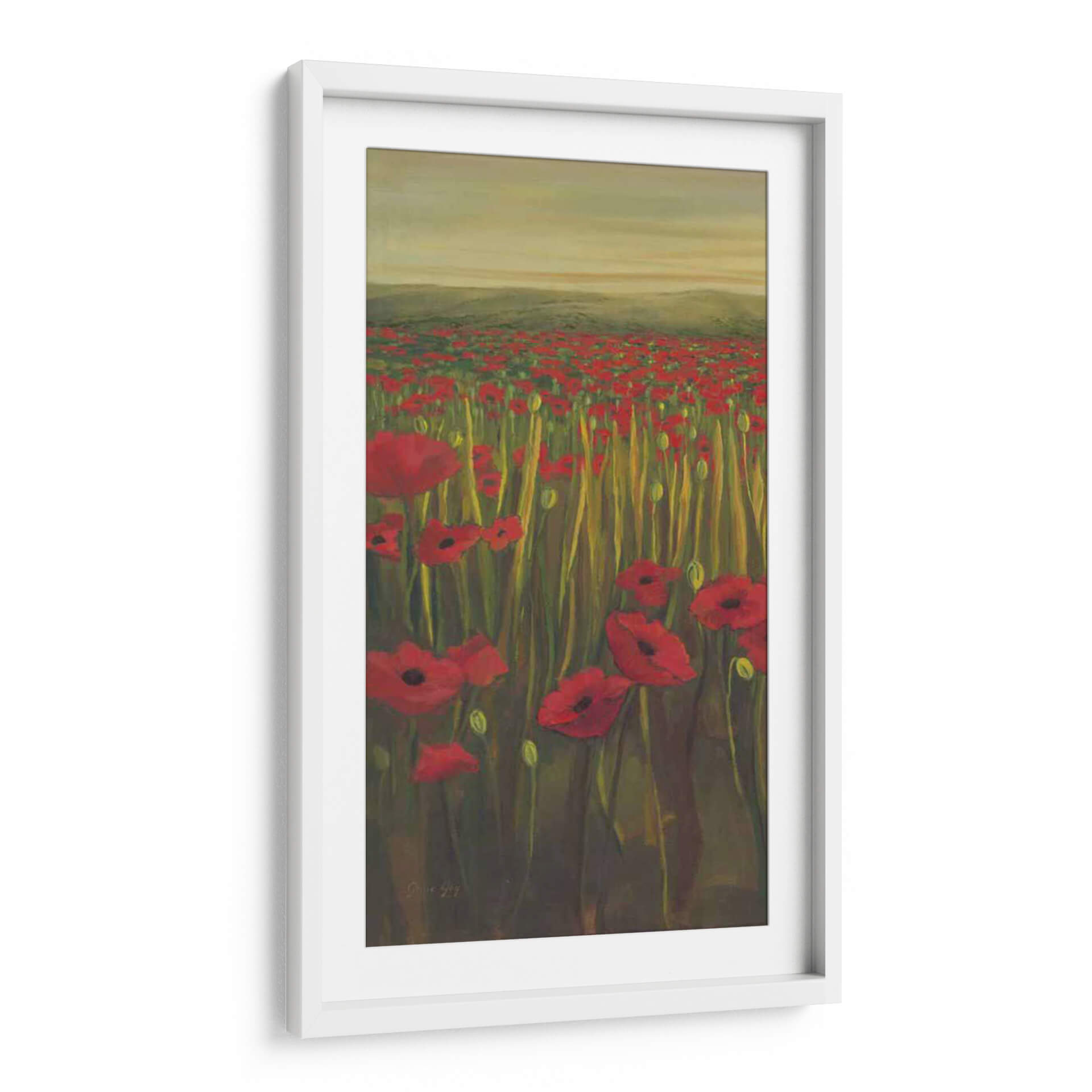 Sumérgete en la vibrante belleza de "Amapolas Rojas En El Campo I", una obra de arte cautivadora de Julie Joy que trae la vitalidad de la naturaleza a tu hogar. Este cuadro decorativo presenta un exuberante campo repleto de amapolas rojas intensas, cuyas siluetas audaces contrastan con los tallos verdes y amarillentos que se alzan majestuosamente. La paleta de colores, dominada por rojos profundos y verdes terrosos con un cielo suavemente atardecido al fondo, crea una atmósfera serena pero llena de energía. El estilo pictórico evoca una sensación impresionista, capturando la esencia fugaz de un prado florecido con pinceladas emotivas. La composición vertical dirige la mirada hacia la inmensidad del campo, invitando a la contemplación y la tranquilidad. Ideal para añadir un toque de color y vida a cualquier sala de estar, dormitorio o incluso una oficina que busque inspiración natural. "Amapolas Rojas En El Campo I" no es solo un cuadro, es una ventana a un paisaje que transmite alegría y serenidad, transformando cualquier espacio en un refugio visual.