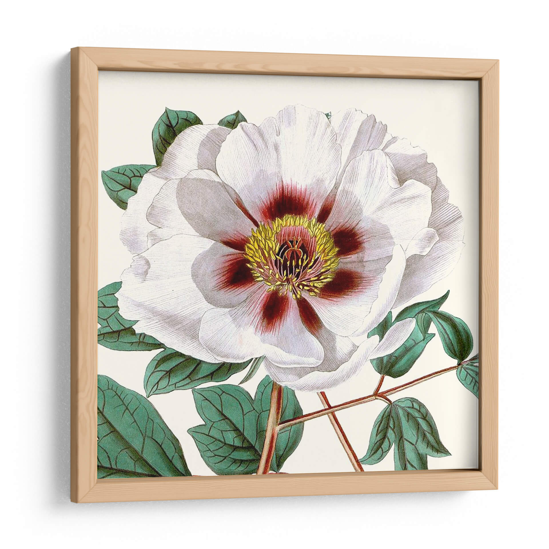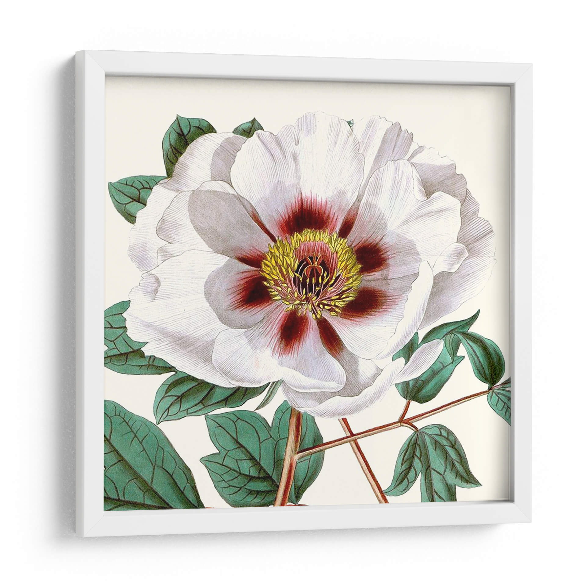 Sumérgete en la delicadeza y la belleza atemporal con nuestro cuadro decorativo 'Antiguo Botánico Cultivo II'. Esta obra, inspirada en ilustraciones botánicas clásicas, presenta una exquisita representación de una flor majestuosa en tonos blancos y cremas, con vibrantes acentos de color burdeos y amarillo en su centro. Las hojas verdes profundas y los tallos finamente detallados añaden un toque de realismo y profundidad a la composición. El estilo evoca una sensación de calma y elegancia, perfecta para infundir serenidad en cualquier espacio. Ideal para tu sala de estar, dormitorio, estudio u oficina, este cuadro decorativo floral es una pieza que celebra la naturaleza con sofisticación. Su paleta de colores versátil permite integrarlo fácilmente en diversas decoraciones, desde estilos clásicos hasta modernos. Cada pétalo y cada hoja están representados con un detalle meticuloso, invitando a la contemplación y añadiendo un punto focal artístico que realza la atmósfera de tu hogar. Descubre la armonía botánica y transforma tu entorno con este impresionante arte de pared.