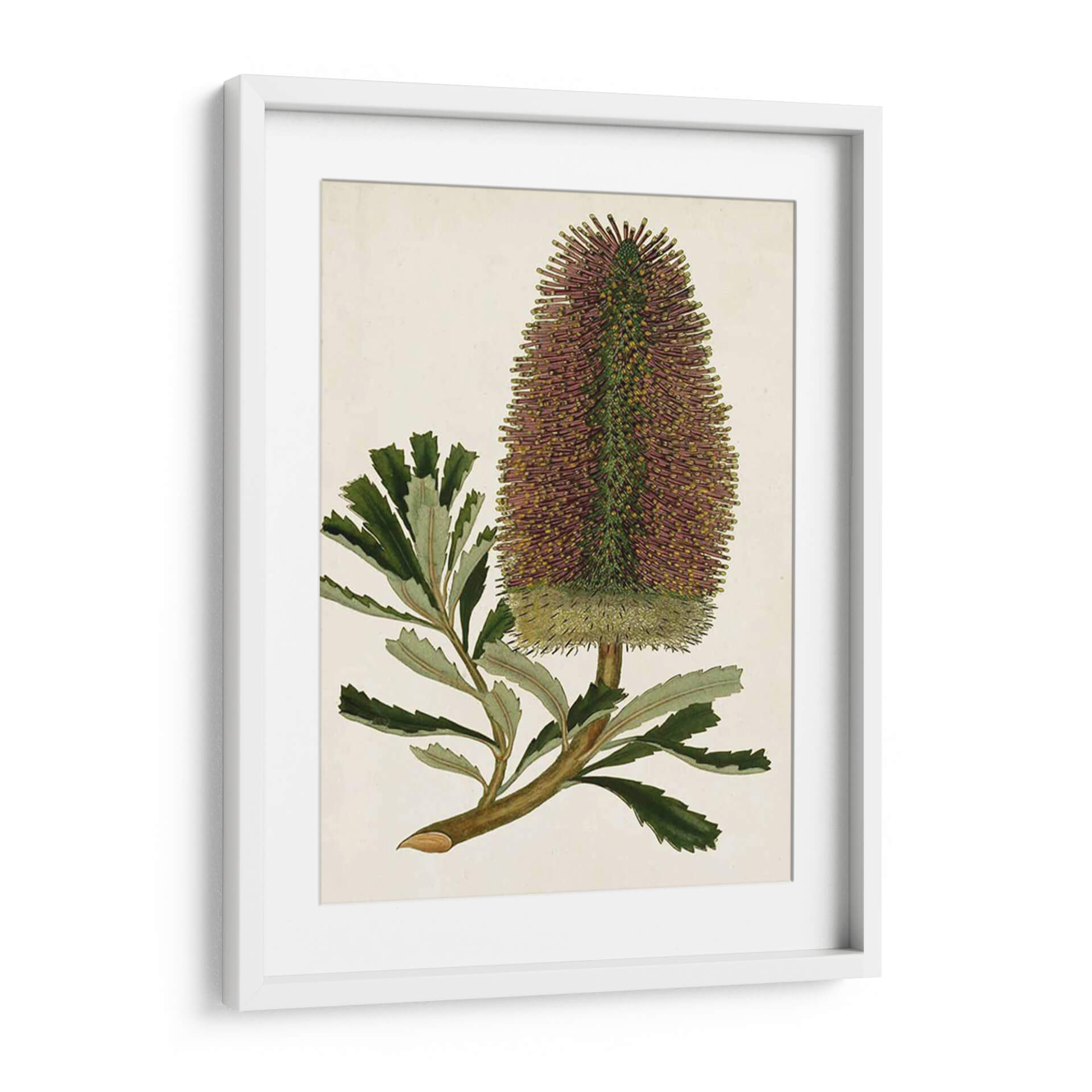 Sumérgete en la belleza botánica con este exquisito cuadro decorativo 'Antiguo Protea V'. Esta obra captura la magnificencia de una protea en un estilo que evoca las ilustraciones científicas clásicas, con un realismo detallado y una paleta de colores sobria pero cautivadora. Los tonos verdes profundos de las hojas contrastan armoniosamente con el vibrante púrpura y las sutiles notas amarillas del capullo floral, creando una pieza visualmente rica y equilibrada. La composición se centra en la majestuosa flor y su follaje, ofreciendo una perspectiva clara y elegante que se adapta a cualquier ambiente. Ideal para quienes aprecian la naturaleza, el arte botánico o buscan añadir un toque de sofisticación orgánica a su hogar u oficina. Este cuadro decorativo es perfecto para espacios que buscan un acento de color natural sin abrumar, aportando serenidad y un aire de conocimiento científico a la decoración. Transforma tu sala de estar, estudio o dormitorio con esta representación atemporal de la flora, una obra que inspira tranquilidad y admiración por los detalles del mundo natural, asegurando una presencia elegante y distintiva en tus paredes.