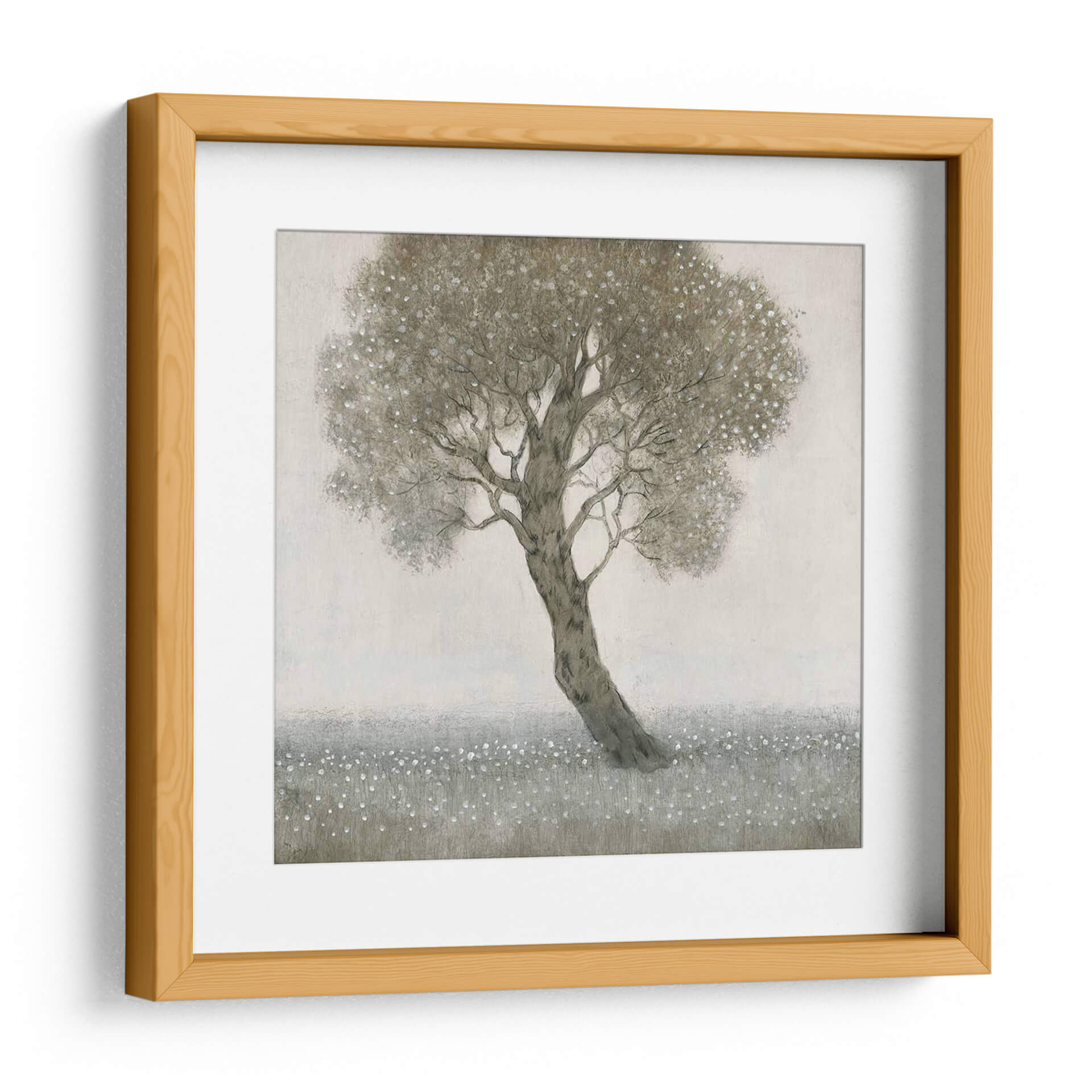 Sumérgete en la serenidad de la naturaleza con "Árbol De Flor Blanco", una obra de arte cautivadora del artista Tim OToole. Este cuadro decorativo presenta un árbol majestuoso, con un tronco robusto que se inclina suavemente, coronado por una copa exuberante salpicada de delicadas flores blancas. El fondo, de un tono neutro y difuminado, crea una atmósfera etérea que realza la belleza del árbol y el campo de pequeñas flores blancas que lo rodea. La paleta de colores, dominada por tonos tierra, grises y blancos sutiles, evoca una sensación de calma y tranquilidad, perfecta para transformar cualquier espacio en un oasis de paz. El estilo, con toques de realismo y una atmósfera impresionista, permite que la imaginación del espectador vuele. Ideal para añadir un toque de sofisticación y armonía a tu sala de estar, dormitorio u oficina. Este cuadro decorativo es una invitación a la contemplación y un recordatorio de la belleza simple y perdurable del mundo natural. Añade esta pieza única a tu colección y experimenta su poder relajante día tras día.