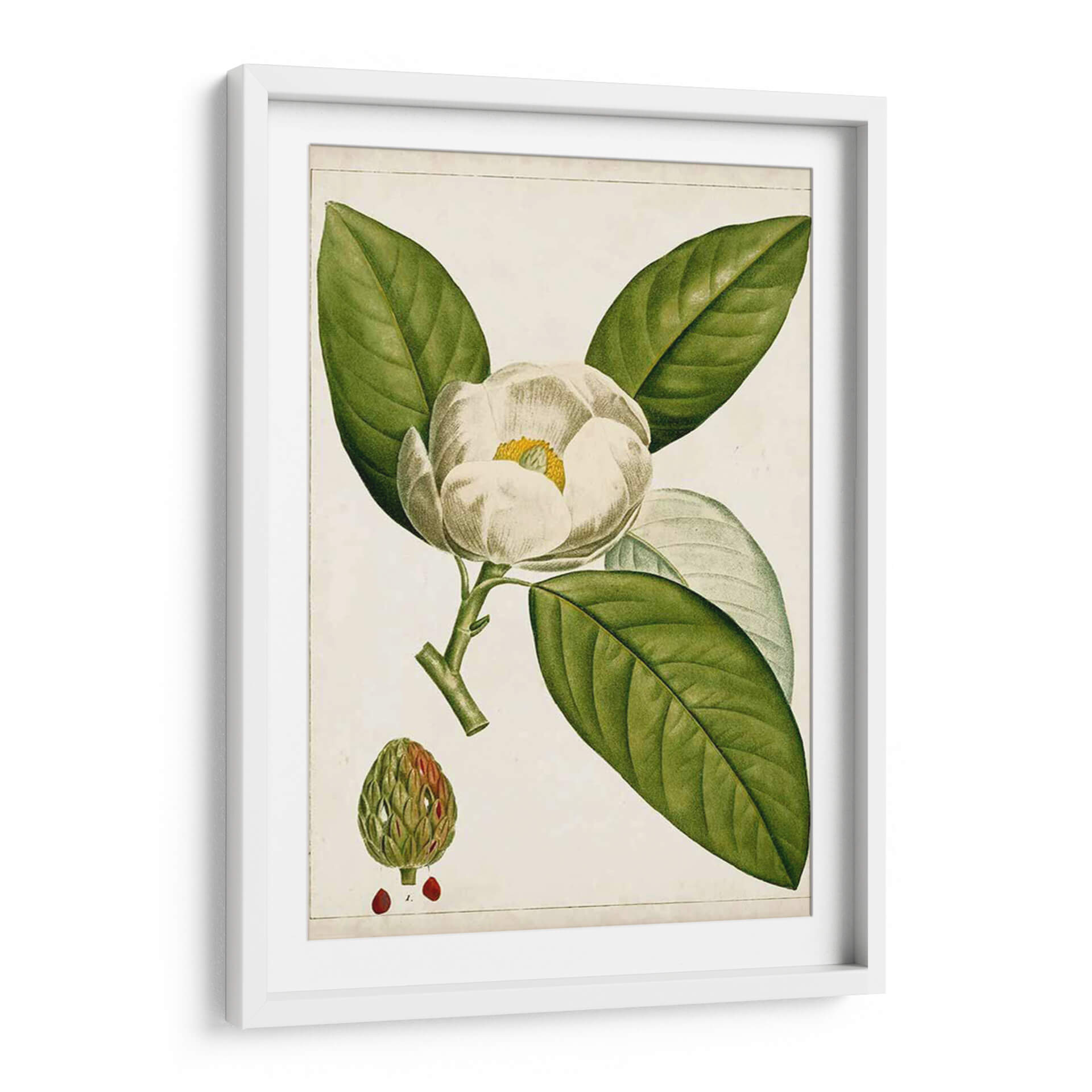 Añada un toque de naturaleza atemporal y elegancia botánica a su hogar con este exquisito cuadro decorativo "Árboles Florales Antiguos II". Esta obra de arte captura la delicadeza de una flor de magnolia en plena floración, junto a sus hojas verdes vibrantes y un capullo detallado. La paleta de colores, dominada por blancos cremosos, verdes profundos y sutiles toques de amarillo y rojo, evoca una sensación de calma y sofisticación. El estilo de ilustración botánica clásica, con sus líneas precisas y sombreado minucioso, aporta un aire de conocimiento científico y aprecio por la belleza natural. Este cuadro es perfecto para quienes buscan infundir serenidad y un estilo refinado en su sala de estar, dormitorio o estudio. Su diseño detallado y su atmósfera tranquila lo convierten en un punto focal cautivador que dialoga con la decoración clásica, rústica o incluso contemporánea, añadiendo una dimensión de historia natural y arte refinado a cualquier espacio. Transforme su ambiente con la belleza perdurable de la naturaleza representada con maestría.