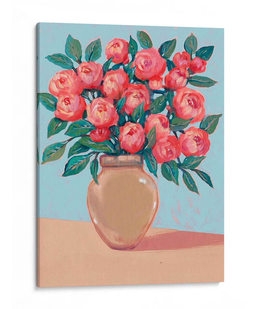 Transforma tu espacio con la vibrante belleza del cuadro decorativo "Arreglo I" de Tim O'Toole. Esta cautivadora obra de arte presenta un exuberante ramo de flores rosadas, capturadas con pinceladas expresivas que dan vida a cada pétalo y hoja. El contraste entre el cálido resplandor de las flores y el sereno fondo azul crea una atmósfera de alegría y frescura, ideal para infundir energía en cualquier habitación. La composición, centrada en un jarrón terroso, evoca una sensación de naturaleza domestica y armonía. Su estilo, que combina la figuración con toques de abstracción, permite que la obra sea versátil, encajando perfectamente tanto en ambientes modernos como en decoraciones más clásicas. "Arreglo I" es más que una simple imagen; es una invitación a la contemplación, un toque de color y vida que invita a la serenidad y al optimismo. Ideal para salones, comedores o incluso un estudio, este cuadro decorativo aportará un punto focal encantador y una dosis de elegancia floral a tu hogar. Descubre la expresividad y el encanto de esta pieza única.