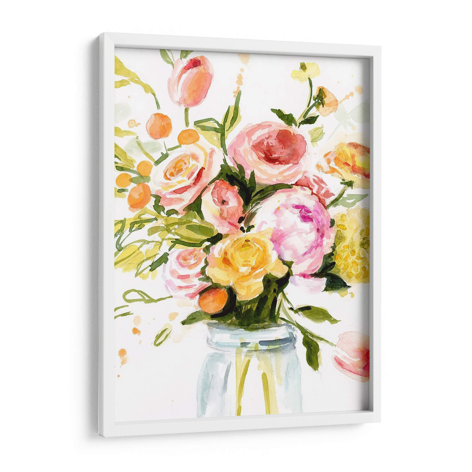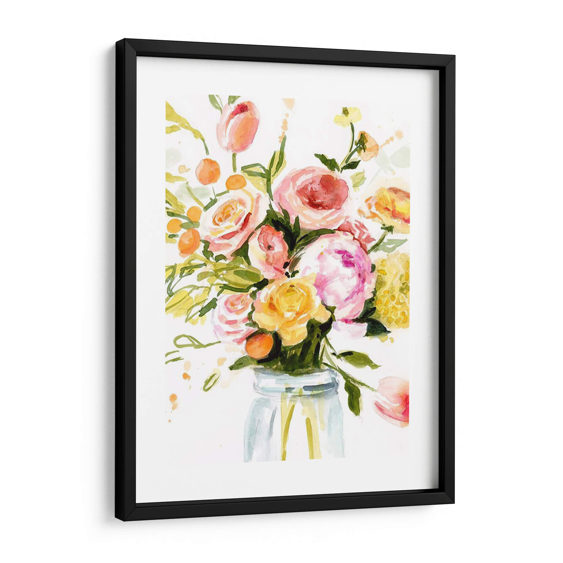 Inunda tu espacio con la frescura y vitalidad de "Arreglo Suelto I", una exquisita obra de arte de Victoria Borges. Esta pieza captura la delicadeza de un ramo de flores en plena floración, presentado en un jarrón de cristal con un estilo de acuarela suelto y expresivo. Los colores vibrantes, que van desde rosas empolvados y corales cálidos hasta amarillos soleados y toques de verde exuberante, crean una atmósfera alegre y optimista. La técnica de acuarela evoca una sensación de ligereza y movimiento, con pinceladas fluidas y salpicaduras que añaden dinamismo y carácter a la composición. Este cuadro decorativo es perfecto para añadir un toque de color y elegancia natural a cualquier habitación, desde una sala de estar moderna hasta un dormitorio acogedor o una oficina inspiradora. "Arreglo Suelto I" es más que una simple imagen; es una invitación a la belleza efímera de la naturaleza, capturada con sensibilidad artística. Ideal para quienes aprecian el arte floral contemporáneo y buscan una pieza que transmita serenidad y alegría. Descubre cómo este cuadro puede transformar tu hogar en un oasis de estilo y color.