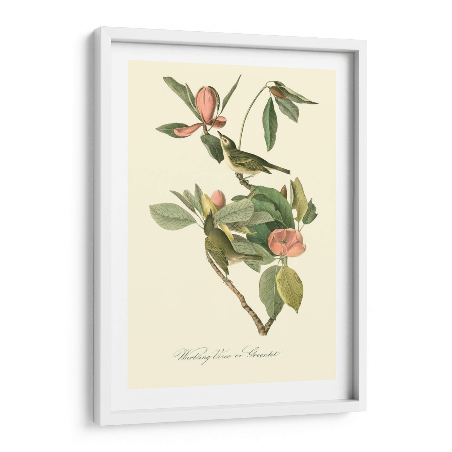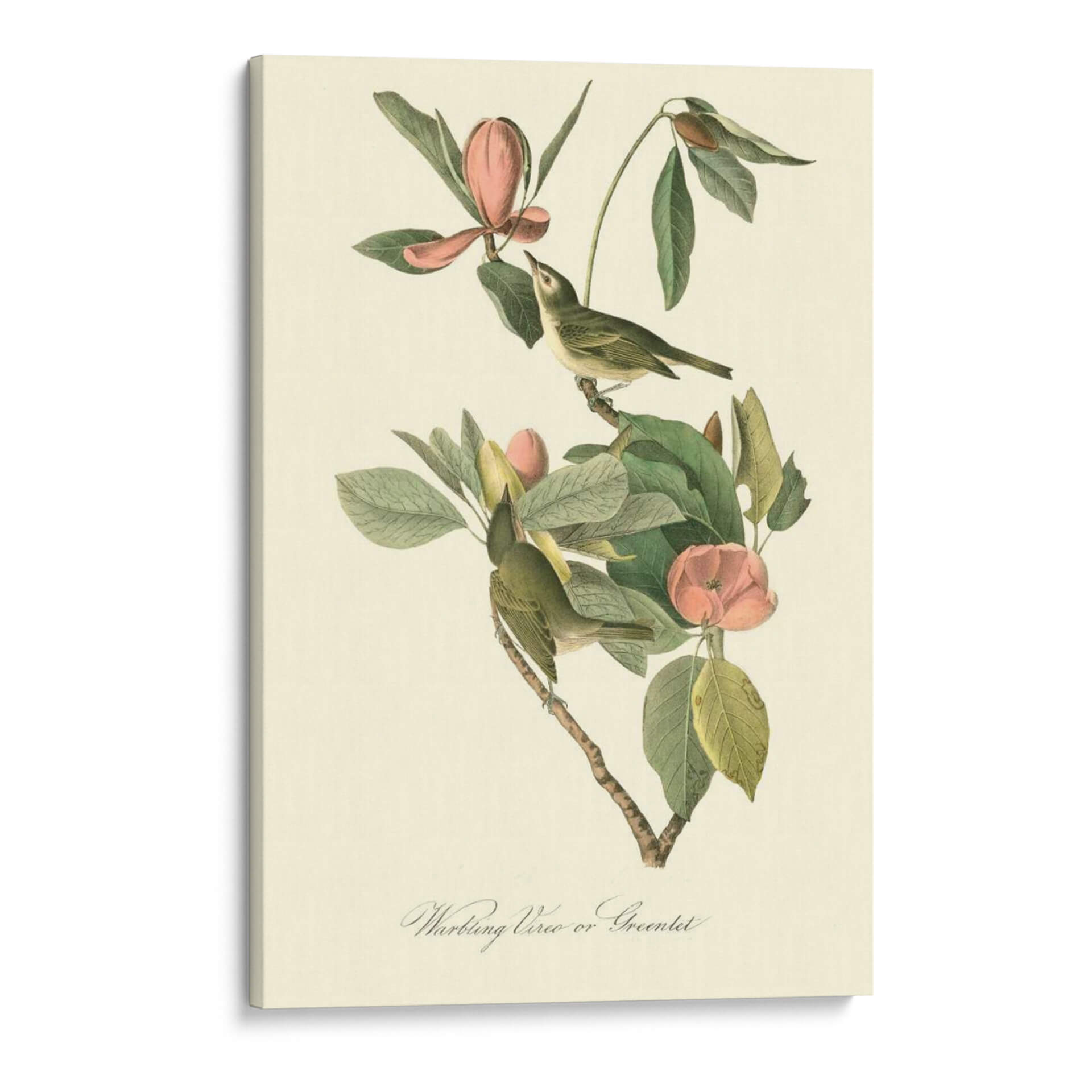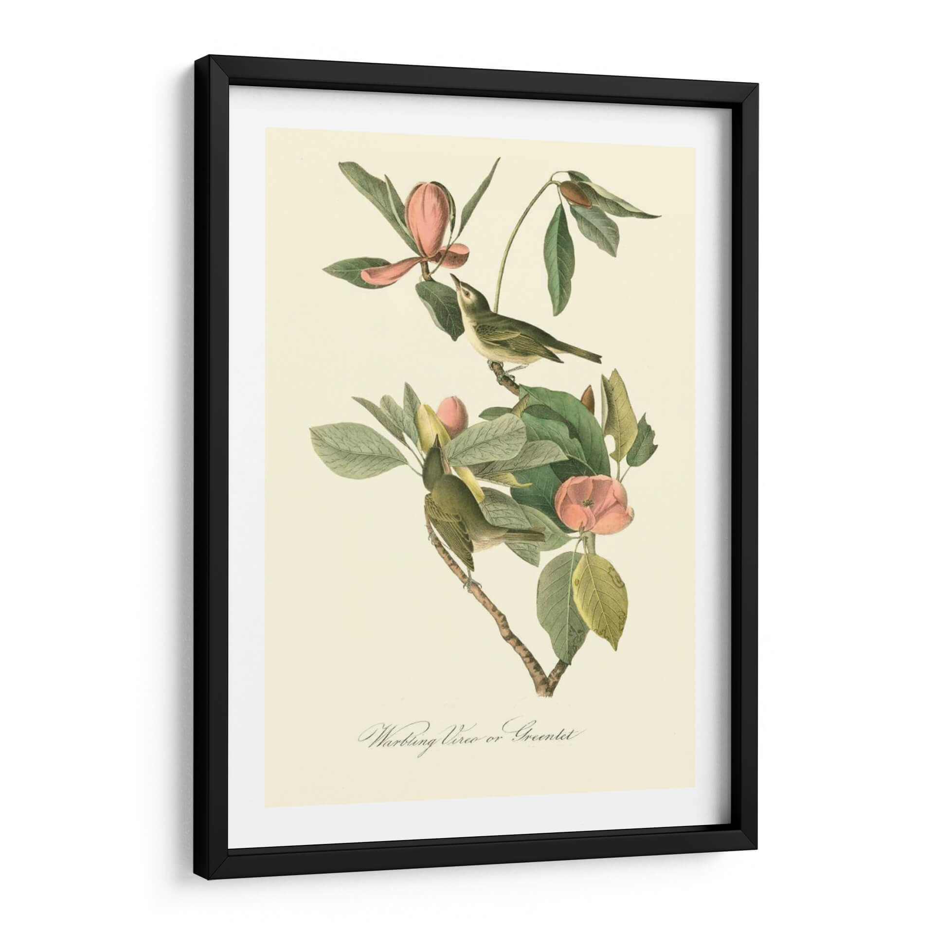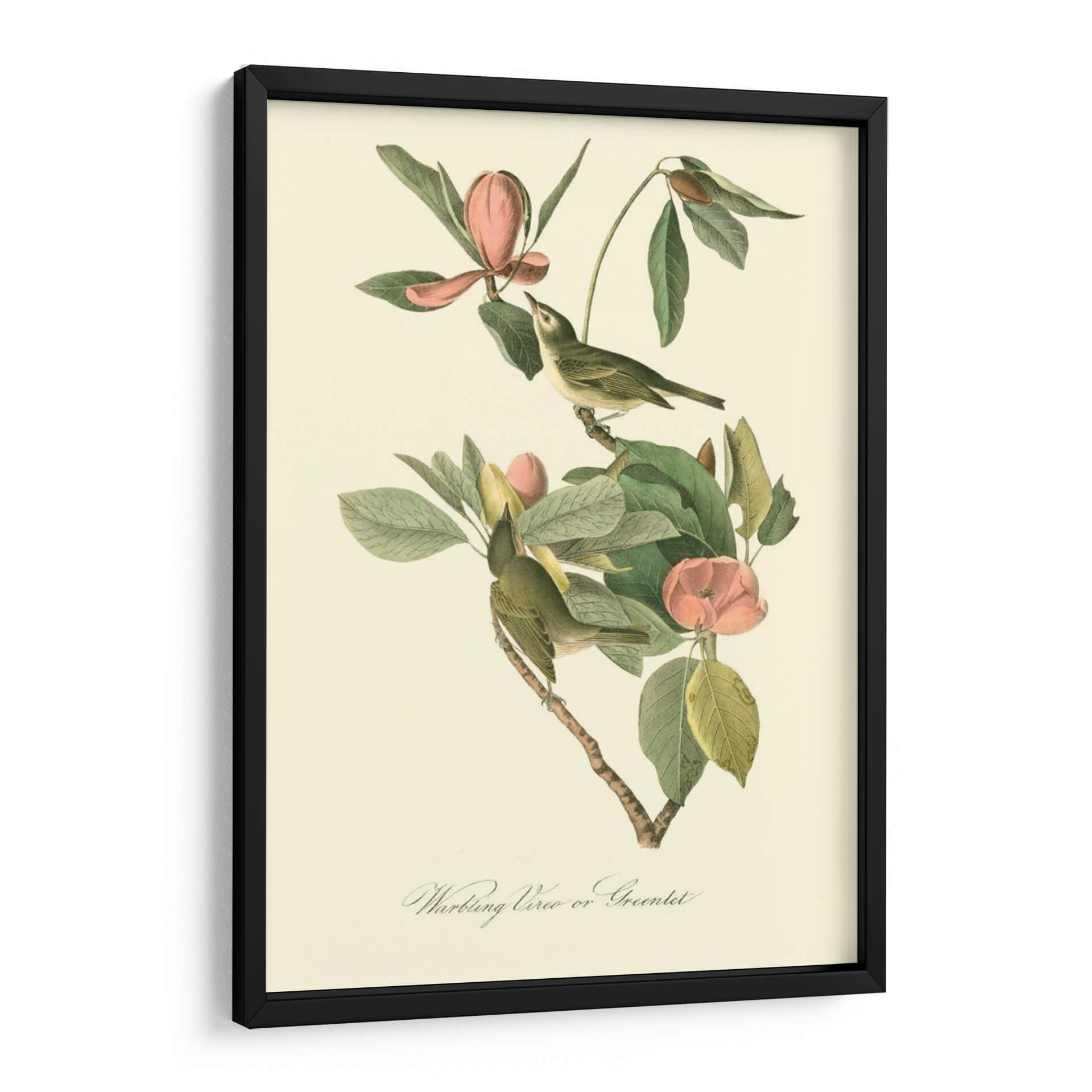 Embellece tu hogar u oficina con "Audubons Vireo", una obra de arte exquisita que captura la delicadeza de la naturaleza. Este cuadro decorativo presenta dos pequeños pájaros posados en una rama floreciente, detallados con la precisión y el realismo característicos de John James Audubon. La paleta de colores, dominada por verdes suaves, rosas tenues y un fondo crema, crea una atmósfera de serenidad y elegancia atemporal. La composición, centrada en la interacción entre las aves y la flora, invita a la contemplación y aporta un toque de vitalidad orgánica a cualquier espacio. Ideal para salones, dormitorios o estudios que busquen una conexión sutil con el mundo natural, esta pieza es un testimonio de la belleza intrínseca de las aves y la botánica. Añade un toque de sofisticación clásica a tu decoración interior con este impresionante cuadro, perfecto para amantes de la naturaleza y el arte por igual. Su estilo ilustrativo y detallado lo convierte en un punto focal encantador, capaz de complementar tanto decoraciones tradicionales como contemporáneas, aportando un aire de frescura y tranquilidad a tu ambiente.