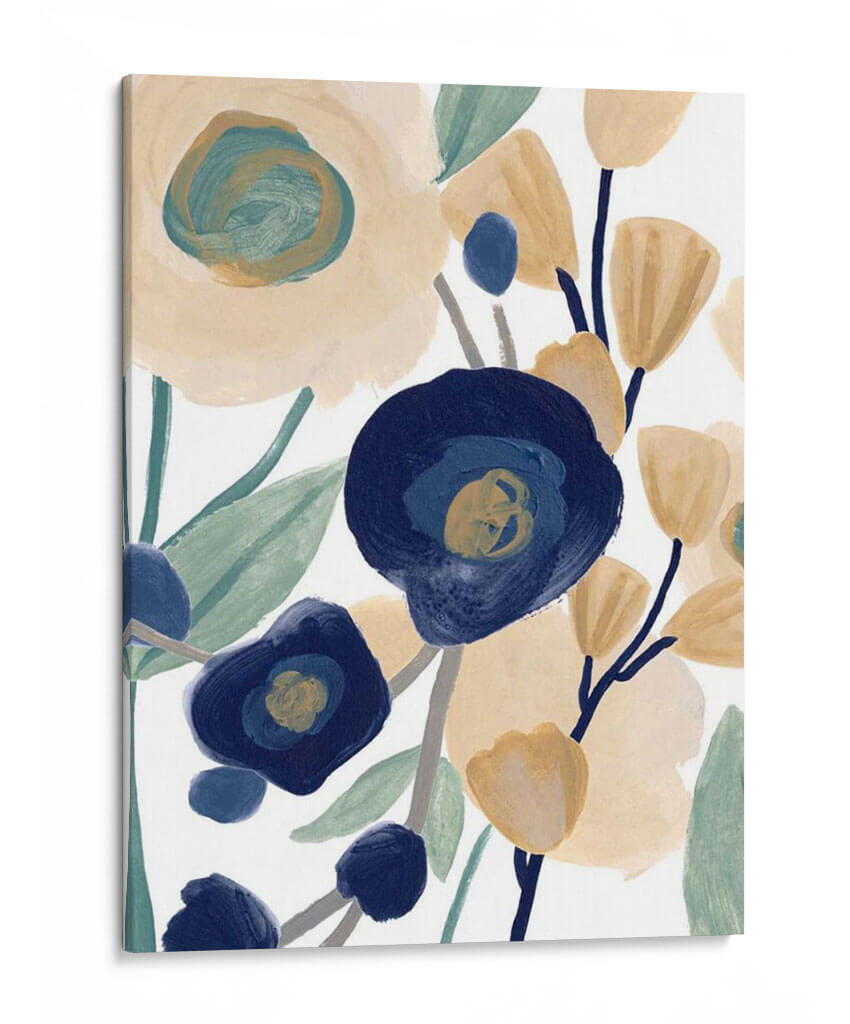 Sumérgete en la delicadeza y el encanto de "Azul Poppy Cascade II", una obra de arte que captura la esencia de las flores en plena floración con un toque contemporáneo. Las pinceladas audaces y gestuales dan vida a capullos de amapola en tonos profundos de azul marino, contrastando elegantemente con suaves matices de crema y ocres cálidos, salpicados por hojas en tonos verde azulado. La composición, que parece desbordar el lienzo, crea una sensación de movimiento y vitalidad, invitando a la contemplación de la belleza efímera de la naturaleza. Esta pieza evoca una atmósfera de serenidad pero con una energía sutil, perfecta para añadir un punto de interés visual y un toque de color sofisticado a cualquier espacio. Ideal para salones modernos, dormitorios acogedores o estudios creativos, este cuadro decorativo es una invitación a la calma y a la apreciación del arte floral abstracto. Su estilo versátil permite que se integre armoniosamente en diversas decoraciones, desde la bohemia hasta la minimalista, aportando un aire de frescura y elegancia atemporal.