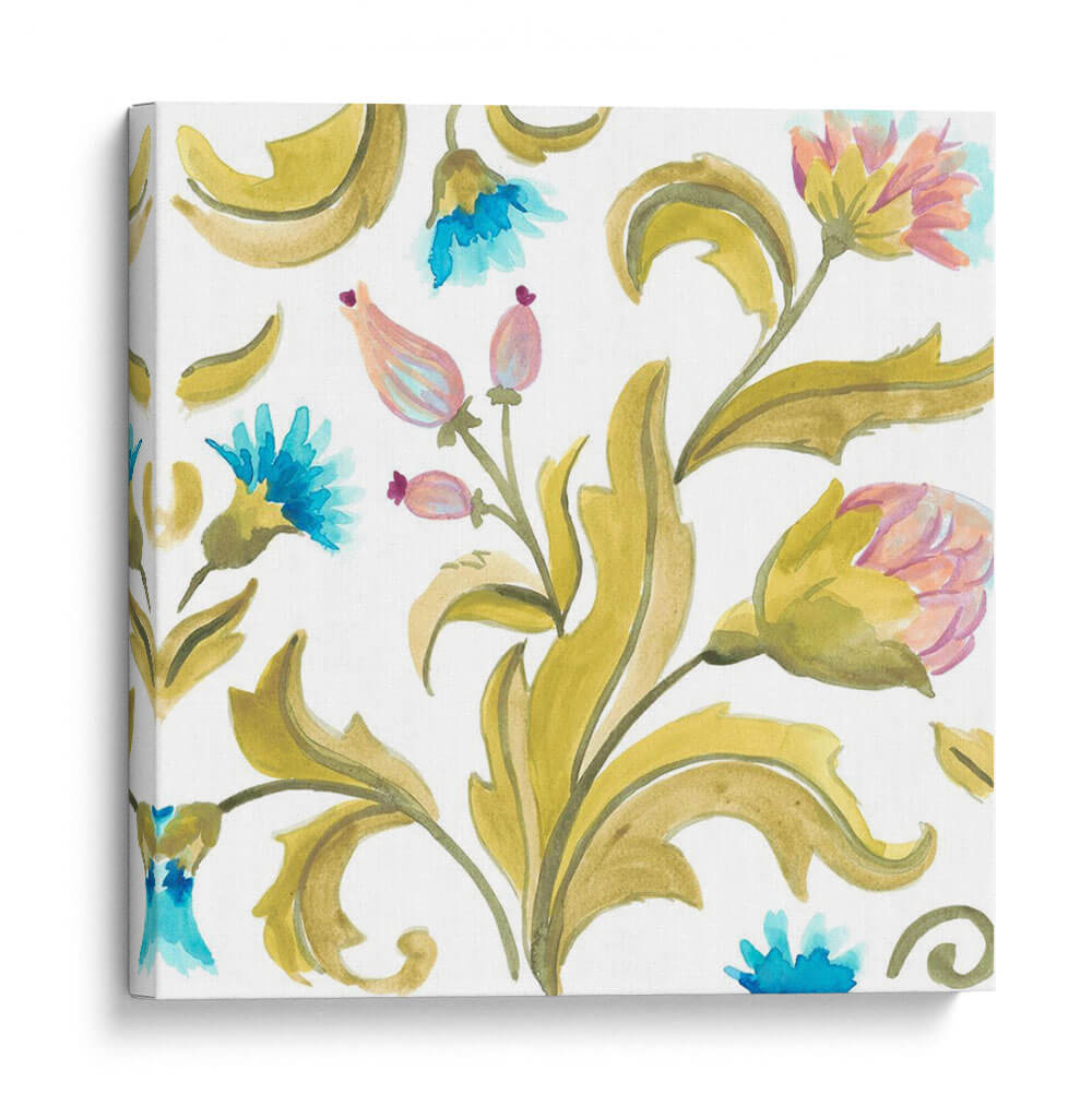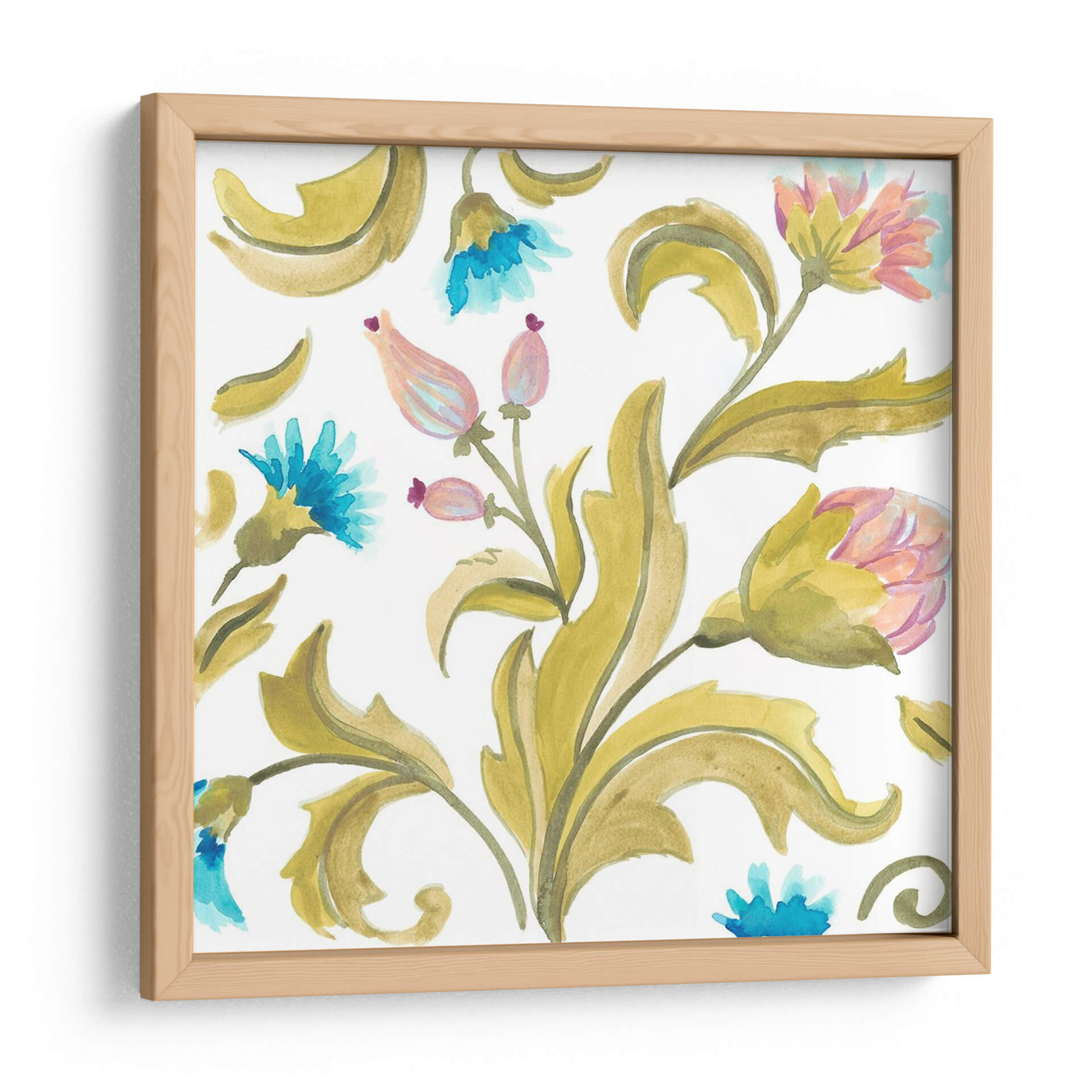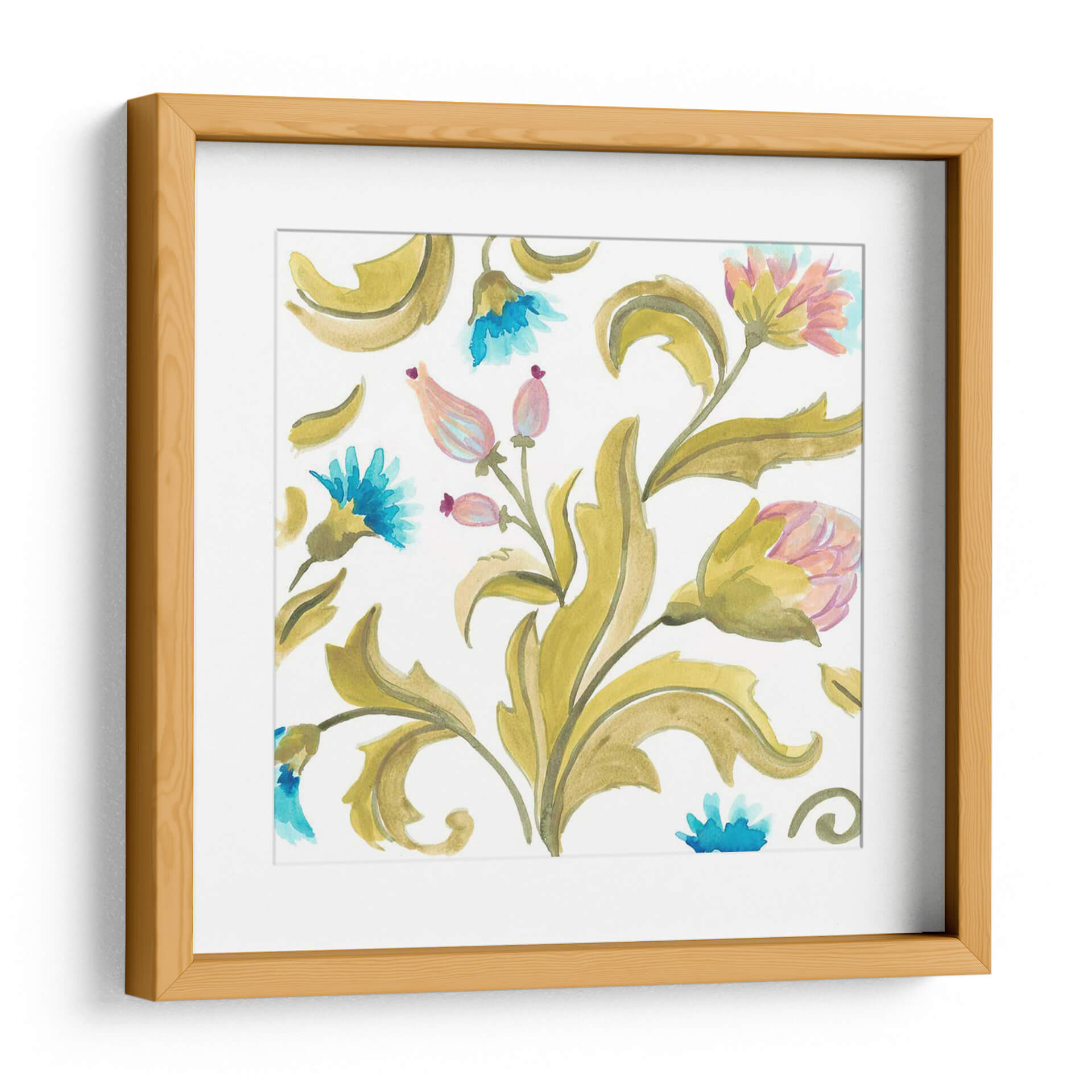 Embellece tu espacio con el cuadro decorativo "Azulejos Florales De La Abadía Ix", una obra que evoca la delicadeza de la naturaleza y la elegancia de los diseños clásicos. Esta pieza, creada por la talentosa artista June Erica Vess, presenta un patrón floral intrincado con un estilo que recuerda a los azulejos antiguos, pero con la frescura de la acuarela contemporánea. Los tonos verde oliva y dorados de las hojas se entrelazan graciosamente con pinceladas de azul vibrante y rosa empolvado en los capullos y flores, creando una paleta de colores armoniosa y sofisticada. La composición, con sus curvas orgánicas y la distribución simétrica de los elementos florales sobre un fondo blanco limpio, aporta una sensación de orden y serenidad. Ideal para quienes buscan añadir un toque de encanto botánico y un aire de refinamiento a su hogar u oficina, este cuadro decorativo es perfecto para salas de estar, dormitorios o incluso estudios, infundiendo calma y belleza en cualquier ambiente. Su diseño atemporal lo convierte en una adición valiosa para coleccionistas de arte y amantes de la decoración que aprecian la fusión de lo histórico y lo moderno.