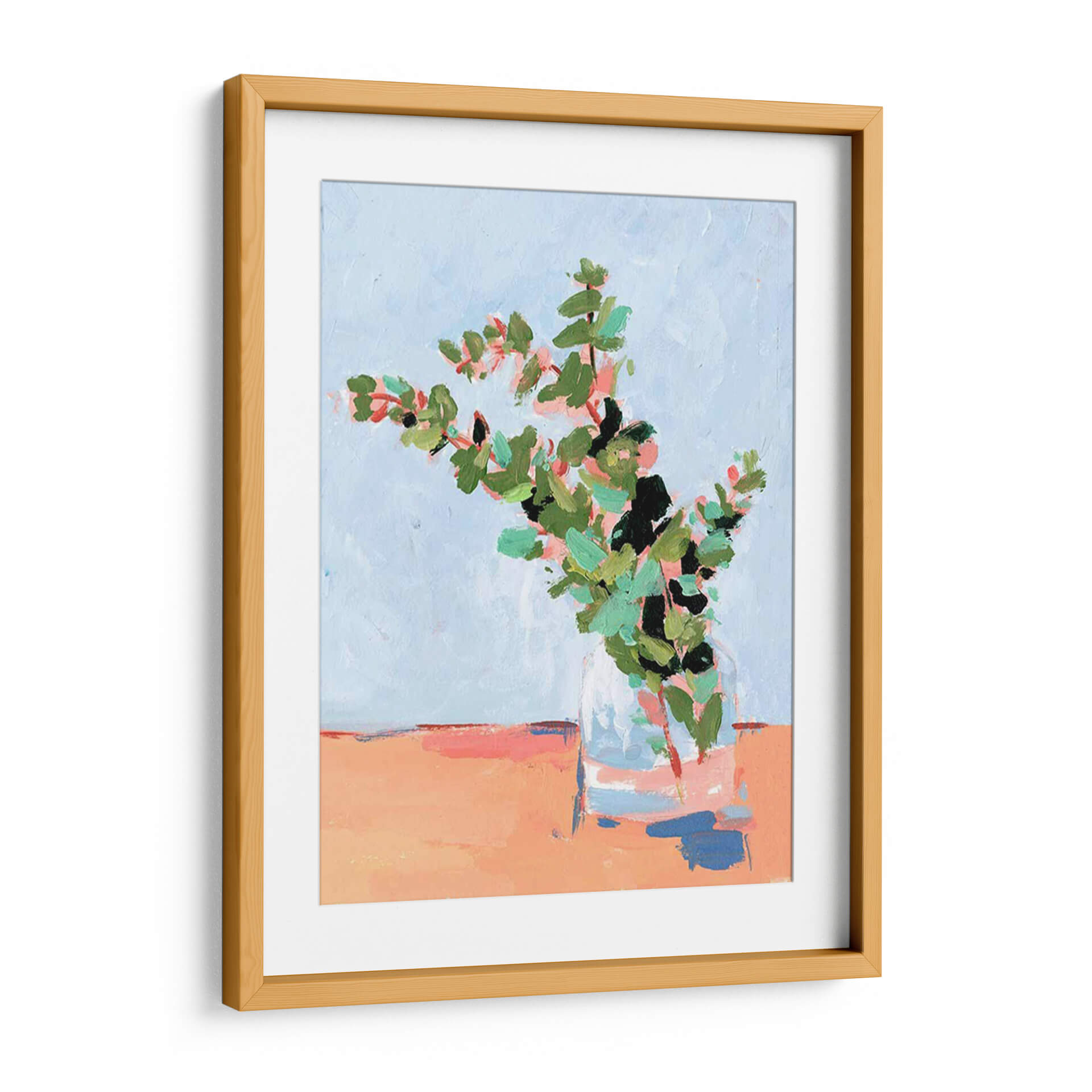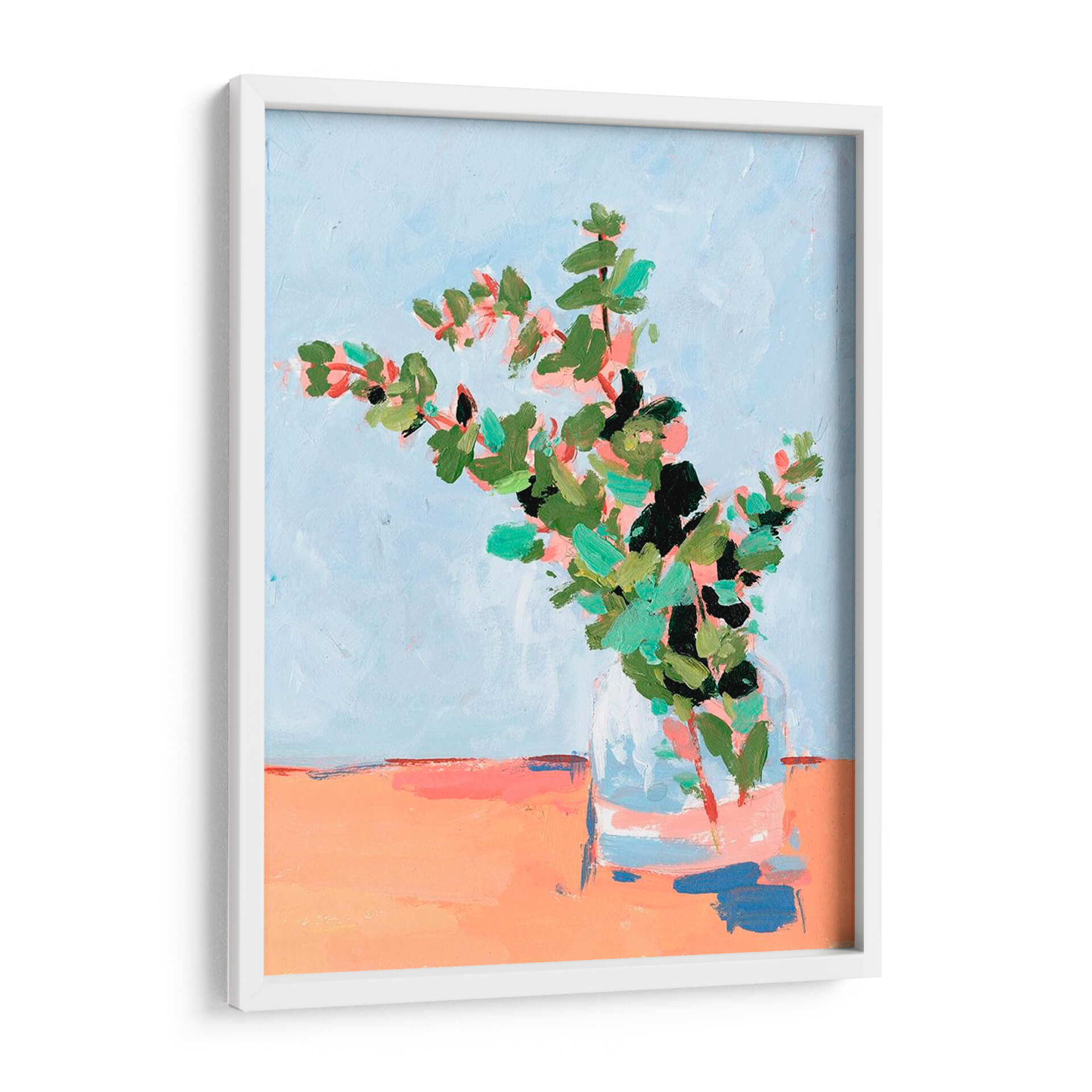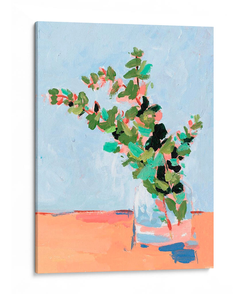 Sumérgete en la frescura y vitalidad de "Baby Blue Eucalyptus I", una cautivadora obra de arte de Melissa Wang que trae la serenidad de la naturaleza al interior. Este cuadro decorativo presenta un vibrante ramo de eucalipto, representado con pinceladas audaces y expresivas que capturan la textura y el movimiento de las hojas verdes y los sutiles toques rosados. El fondo, de un sereno azul cielo, contrasta maravillosamente con la superficie anaranjada y cálida sobre la que reposa un jarrón transparente, cuyas líneas fluidas y toques de color añaden una dimensión moderna a la composición. El estilo pictórico de Wang evoca una sensación de arte contemporáneo con un toque impresionista, invitando a la contemplación y la calma. Es una pieza perfecta para añadir un acento de color y vida a cualquier espacio, ideal para salas de estar, dormitorios o estudios que busquen una atmósfera relajante y estéticamente agradable. Este cuadro decorativo no solo embellece tu pared, sino que también infunde una sensación de tranquilidad y conexión con la naturaleza, convirtiéndose en un punto focal inspirador para tu hogar u oficina. Descubre la belleza de la simplicidad y la elegancia natural.