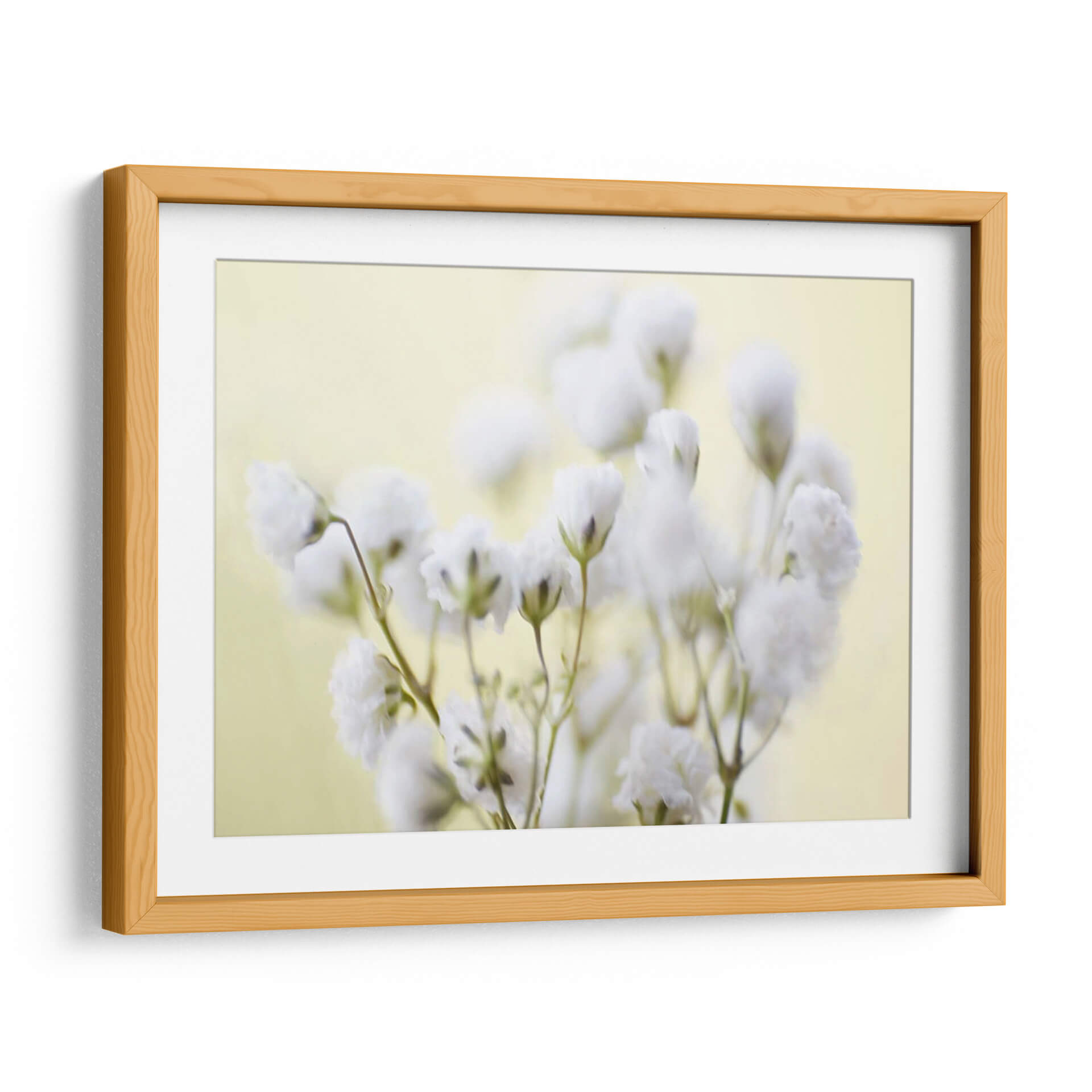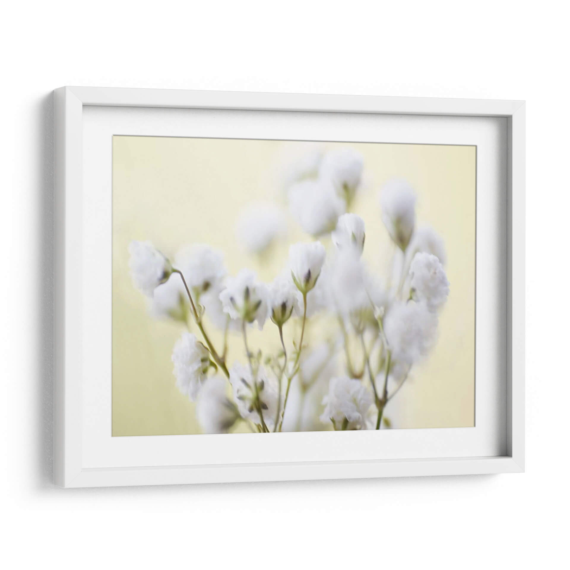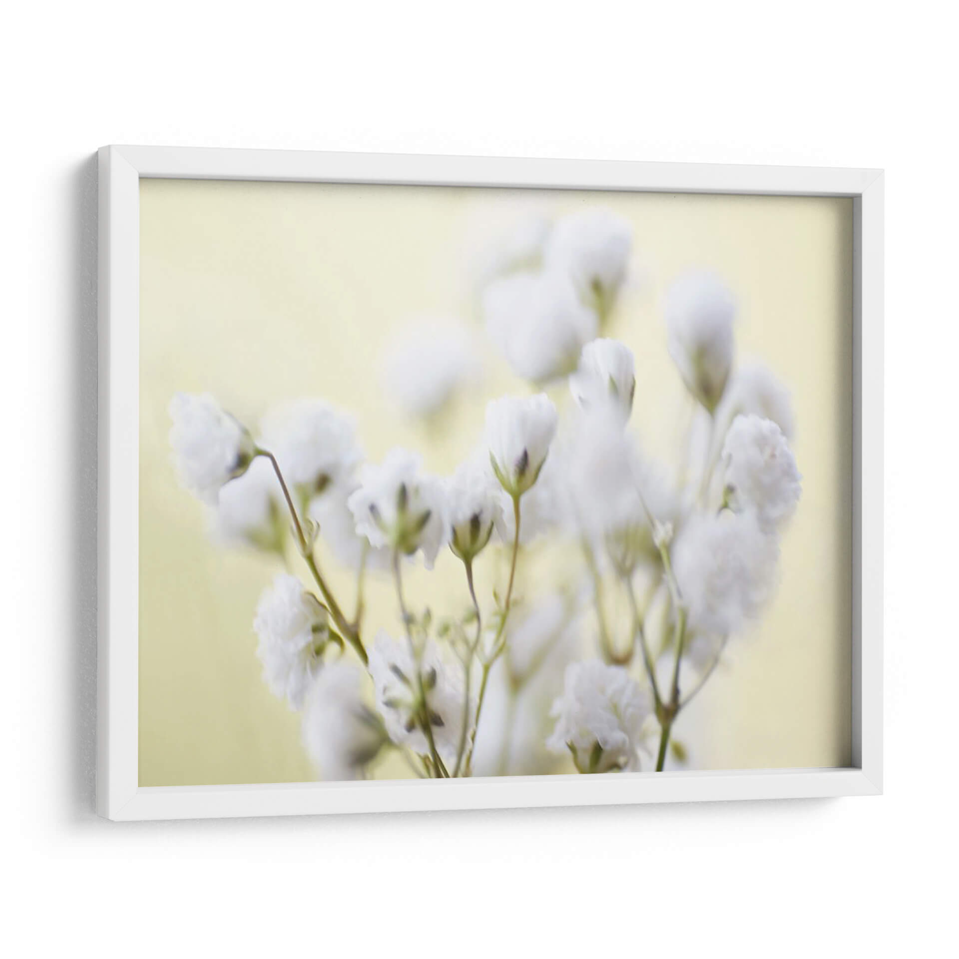 Sumérgete en la delicadeza y la serenidad con este cautivador cuadro decorativo, "Babys Breath Study Iv" de James McLoughlin. La obra presenta un primer plano etéreo de flores de "gypsophila" (o aliento de bebé), capturadas con un enfoque suave y soñador que evoca una sensación de calma y pureza. La paleta de colores se centra en tonos pastel suaves, con un fondo de un amarillo pálido y cremoso que realza la blancura delicada de los pequeños ramilletes florales. Las texturas sutiles y la iluminación difusa crean una atmósfera íntima y contemplativa, perfecta para añadir un toque de elegancia natural a cualquier espacio. Este cuadro decorativo es ideal para dormitorios, salas de estar tranquilas, o incluso espacios de meditación, donde su presencia serena puede transformar el ambiente. El estilo fotográfico, con un toque de abstracción, permite que la pieza hable por sí misma, invitando a la reflexión y al aprecio por la belleza efímera de la naturaleza. Integra esta obra maestra en tu hogar y deja que su delicadeza floral llene tus días de paz y armonía.