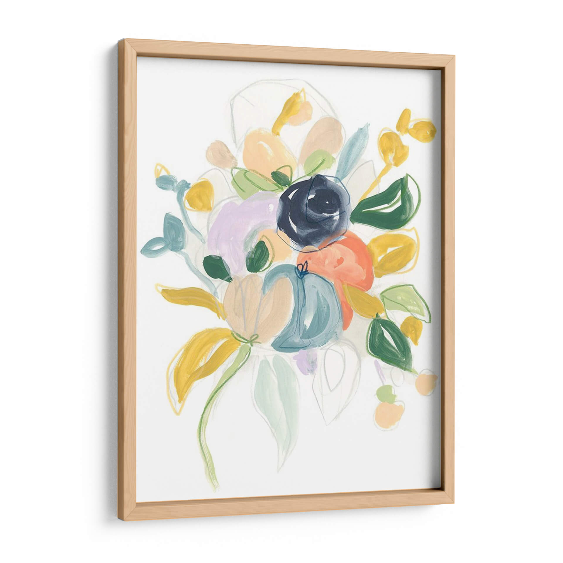 Aporta un toque de frescura y elegancia moderna a tu hogar con "Bijoux Bouquet I", una obra de arte contemporánea que celebra la belleza de la naturaleza a través de pinceladas audaces y una paleta de colores vibrante. Este cuadro decorativo captura la esencia de un ramo de flores en pleno esplendor, con tonos que van desde el profundo azul marino y el coral cálido hasta suaves pasteles de lavanda y melocotón, acentuados con toques de amarillo brillante y verde exuberante. La técnica de June Erica Vess combina trazos sueltos y expresivos con líneas de contorno delicadas, creando una composición dinámica que equilibra la abstracción con el reconocimiento de formas florales. La atmósfera general es alegre y optimista, perfecta para infundir vitalidad a cualquier espacio. Imagina este lienzo como el punto focal de tu sala de estar, aportando un aire de sofisticación artística, o como un elemento inspirador en tu oficina o dormitorio. "Bijoux Bouquet I" es más que una simple decoración; es una invitación a la contemplación de la belleza efímera y la expresión artística audaz, ideal para quienes buscan arte moderno que hable de estilo y personalidad.
