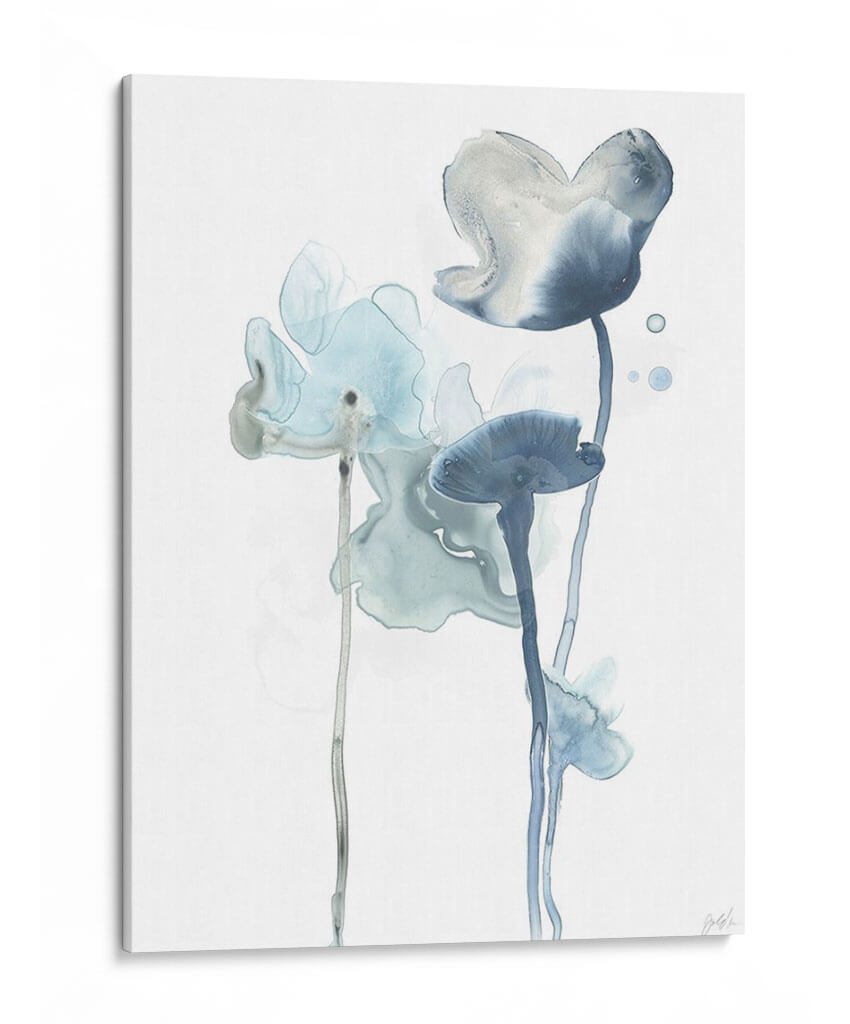 Sumérgete en la delicada belleza de "Blossoms De Medianoche Iii", una obra de arte contemporáneo que evoca la serenidad de la naturaleza al amanecer. Creada por la talentosa June Erica Vess, esta pieza presenta un cautivador despliegue de formas florales abstractas, pintadas con una técnica que recuerda a la acuarela, permitiendo que los colores se difuminen y entrelacen con gracia sobre un fondo de lienzo blanco puro. La paleta de colores, dominada por suaves tonos azules, índigo y toques de gris pálido, crea una atmósfera de calma y contemplación, ideal para espacios que buscan un refugio de tranquilidad. Las delicadas líneas que sostienen las flores y las sutiles salpicaduras de color añaden un toque de espontaneidad y dinamismo, equilibrando la suavidad de las formas. Este cuadro decorativo es perfecto para infundir un aire de sofisticación etérea en tu dormitorio, sala de estar o estudio. Su estilo minimalista y etéreo lo convierte en un complemento versátil para una variedad de decoraciones interiores, desde las más modernas hasta las más tradicionales, aportando un toque de elegancia natural y una invitación a la pausa reflexiva. Añade esta pieza única a tu colección y transforma tu hogar en un oasis de paz.
